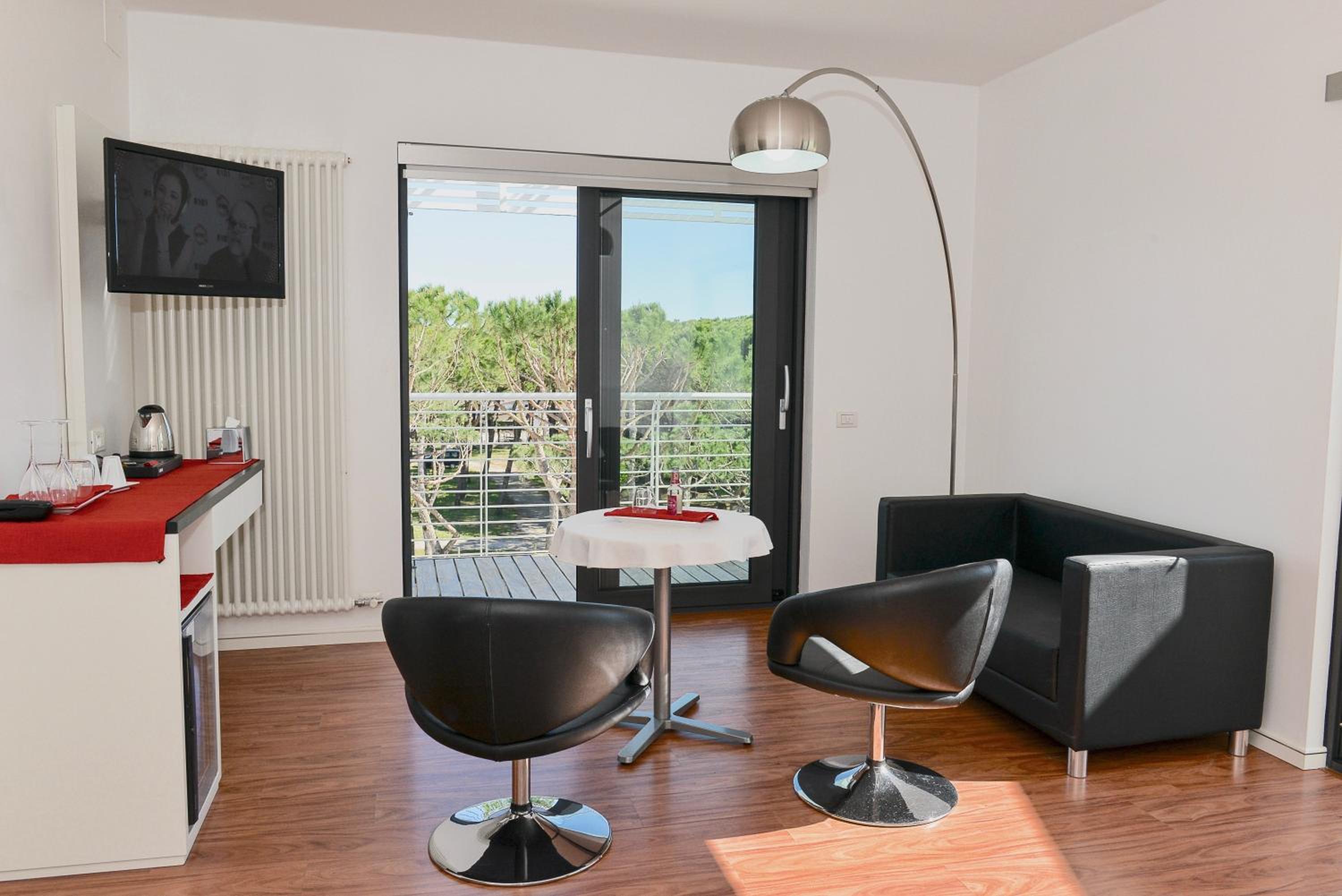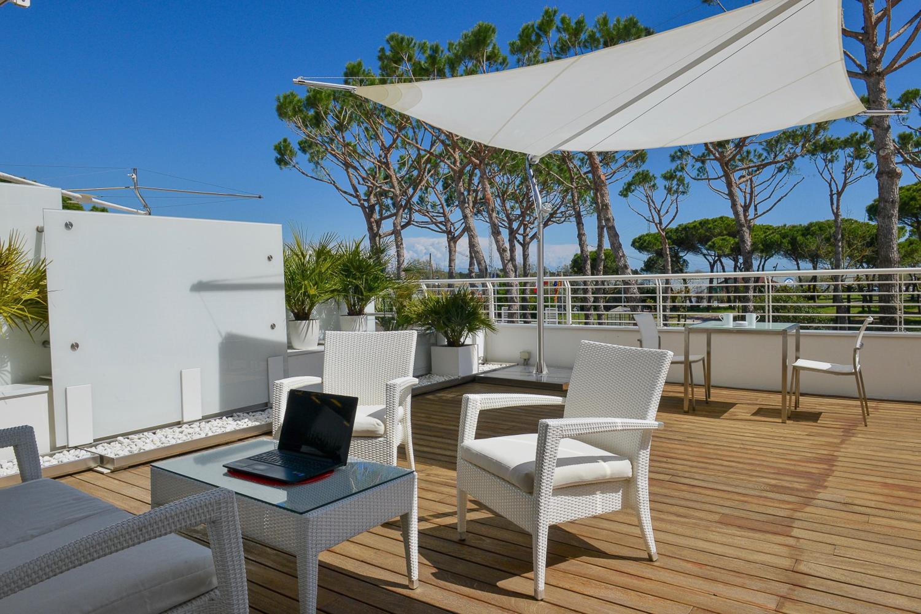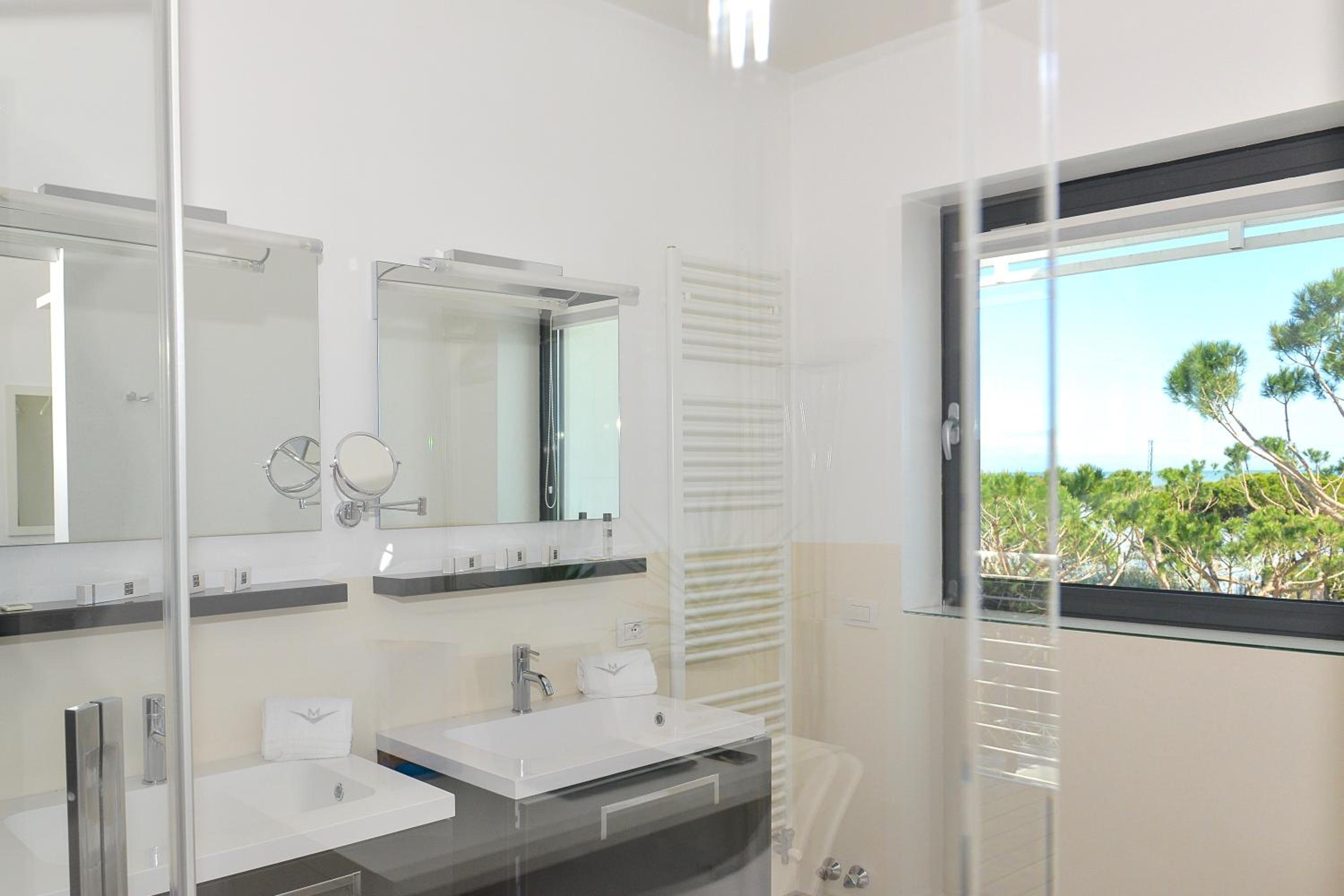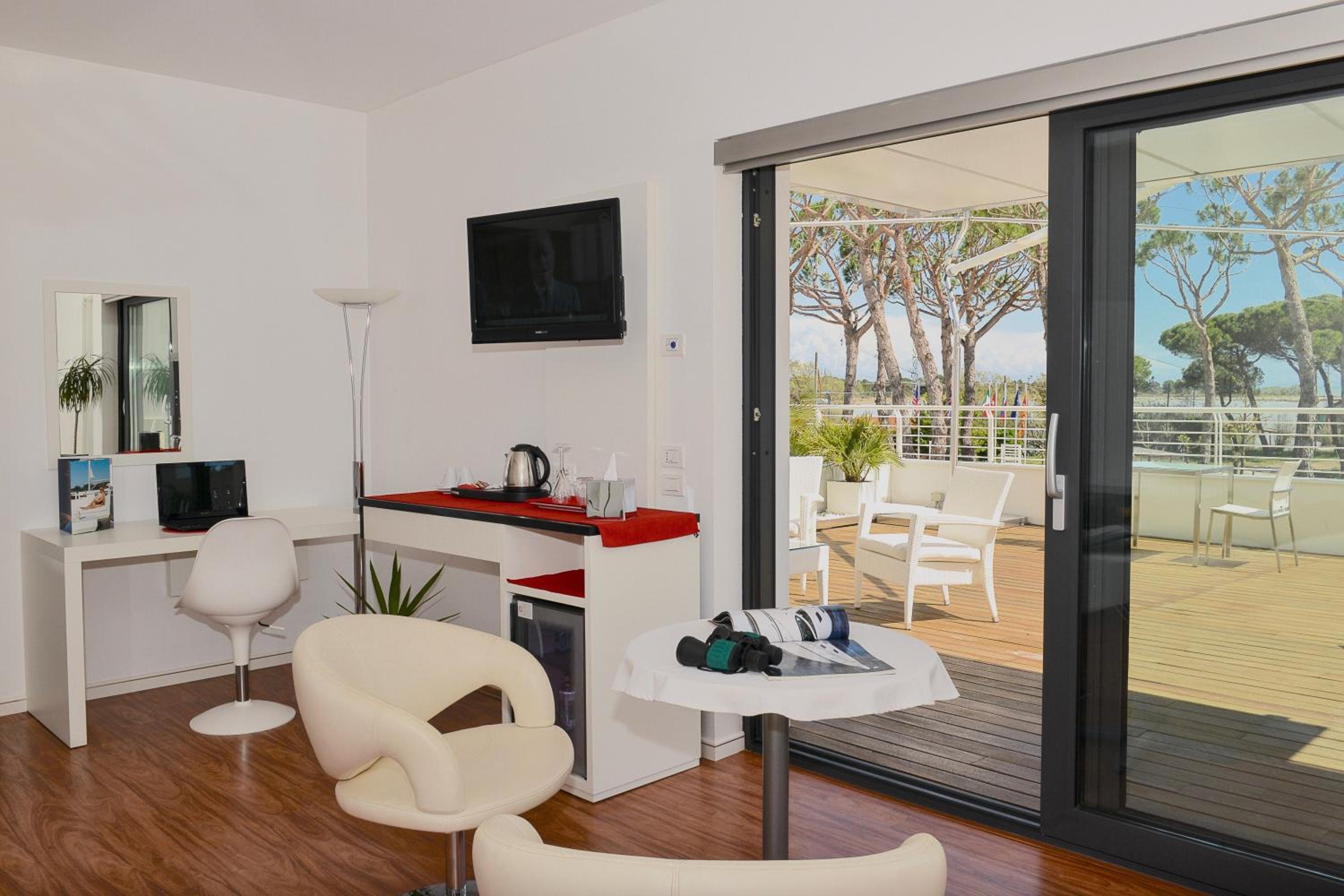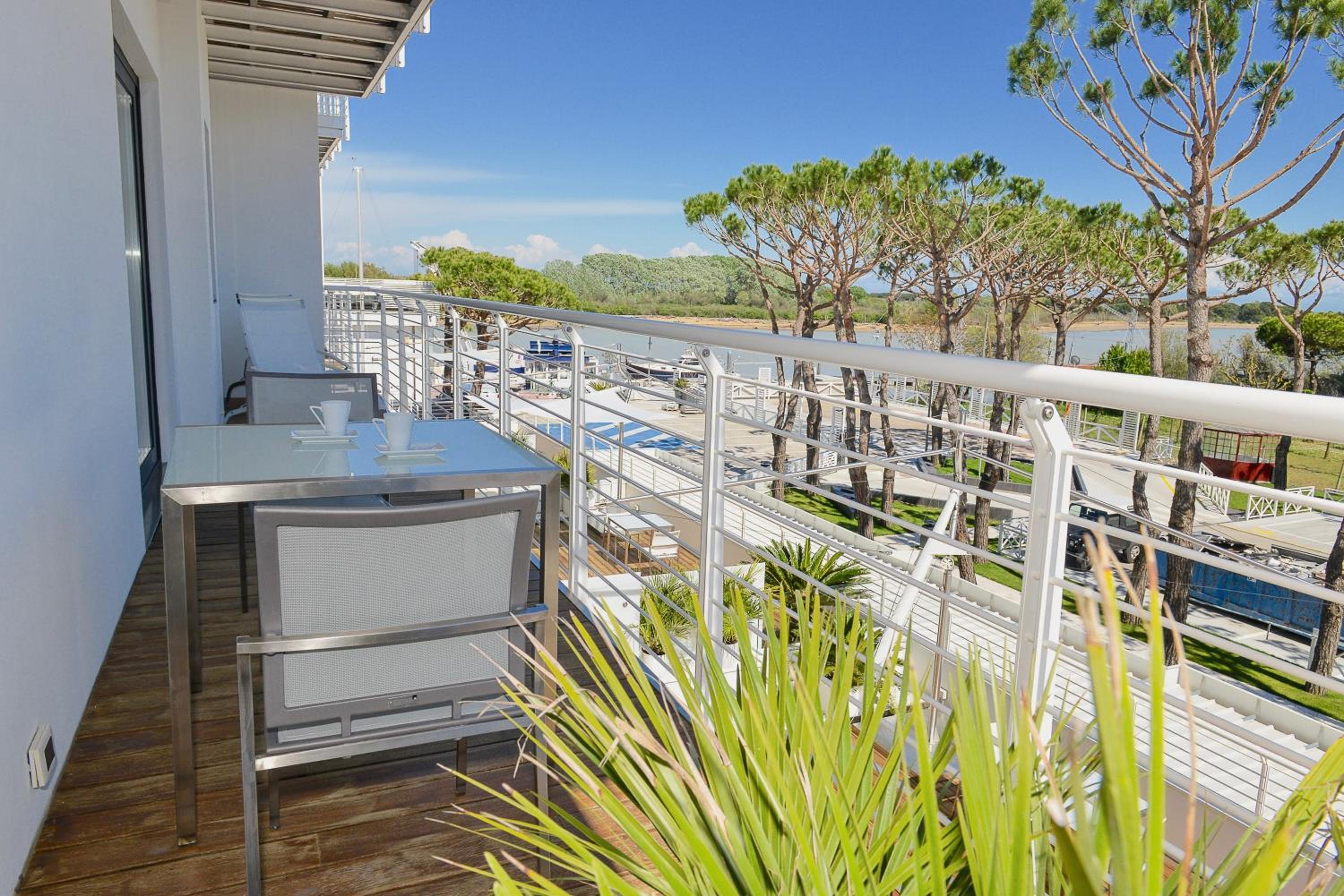La suite è molto spaziosa, luminosa e arredata con grande gusto! Letto fantastico con materasso molto confortevole. Colazione eccellente servita in stanza. Splendida vista sulla pineta e darsena, ampio balcone e terrazza. La posizione è eccellente: tranquilla e ideale chi cerca pace e tranquillità. Ampio parcheggio