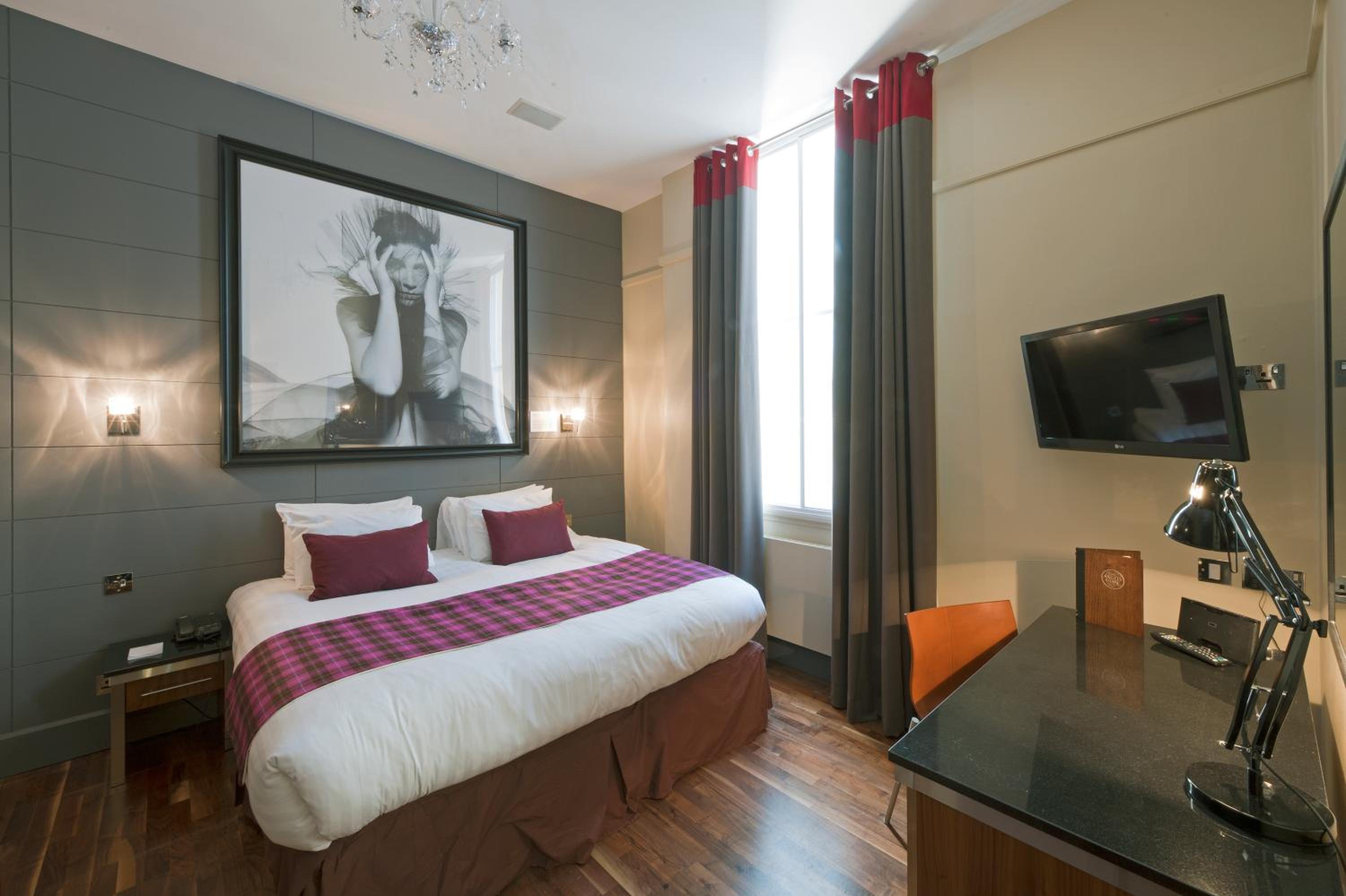Experience the charm of Edinburgh's West End at Angels' Share Hotel, where each boutique bedroom is uniquely decorated in contemporary style, dedicated to famous Scots like Sean Connery and Ewan McGregor. Enjoy luxury amenities including flat-screen TVs, premium sheets, and designer bathrooms with complimentary toiletries.