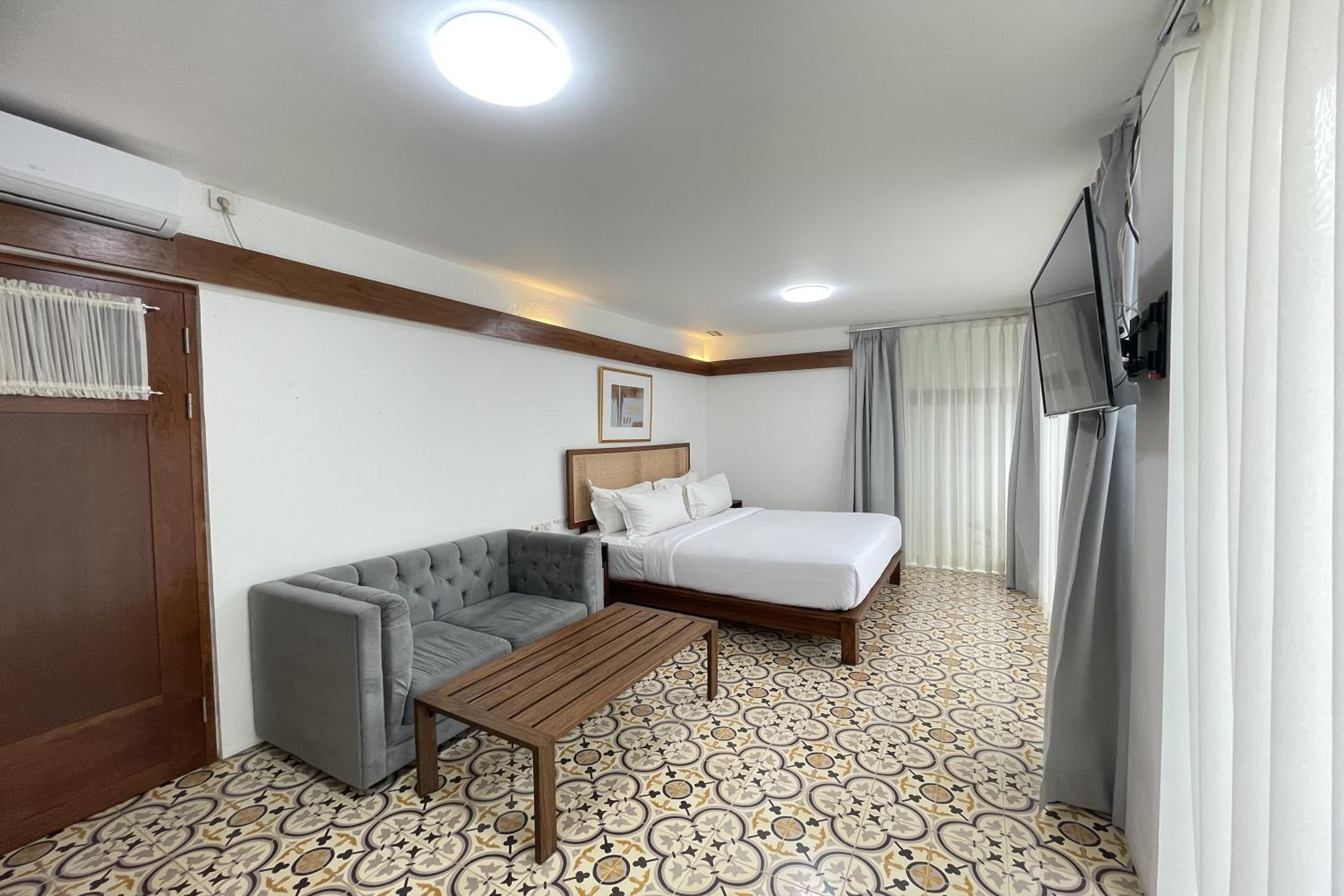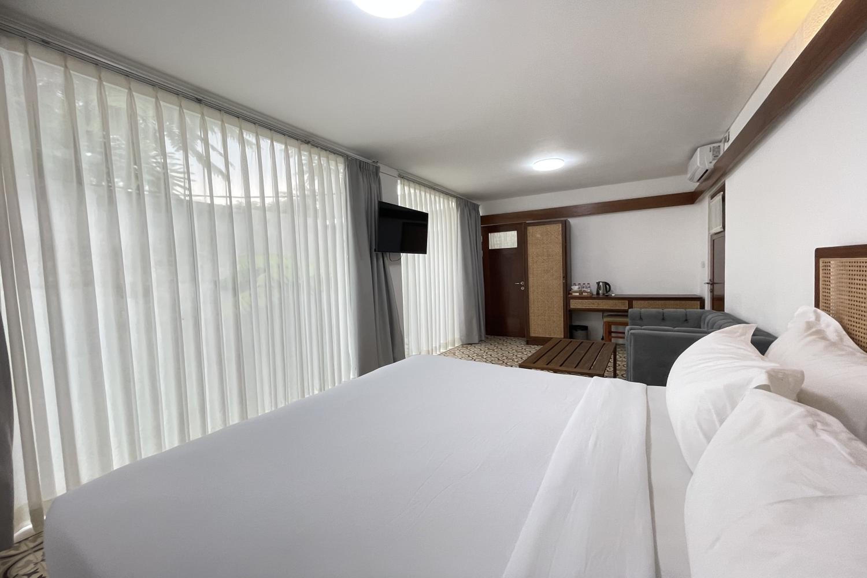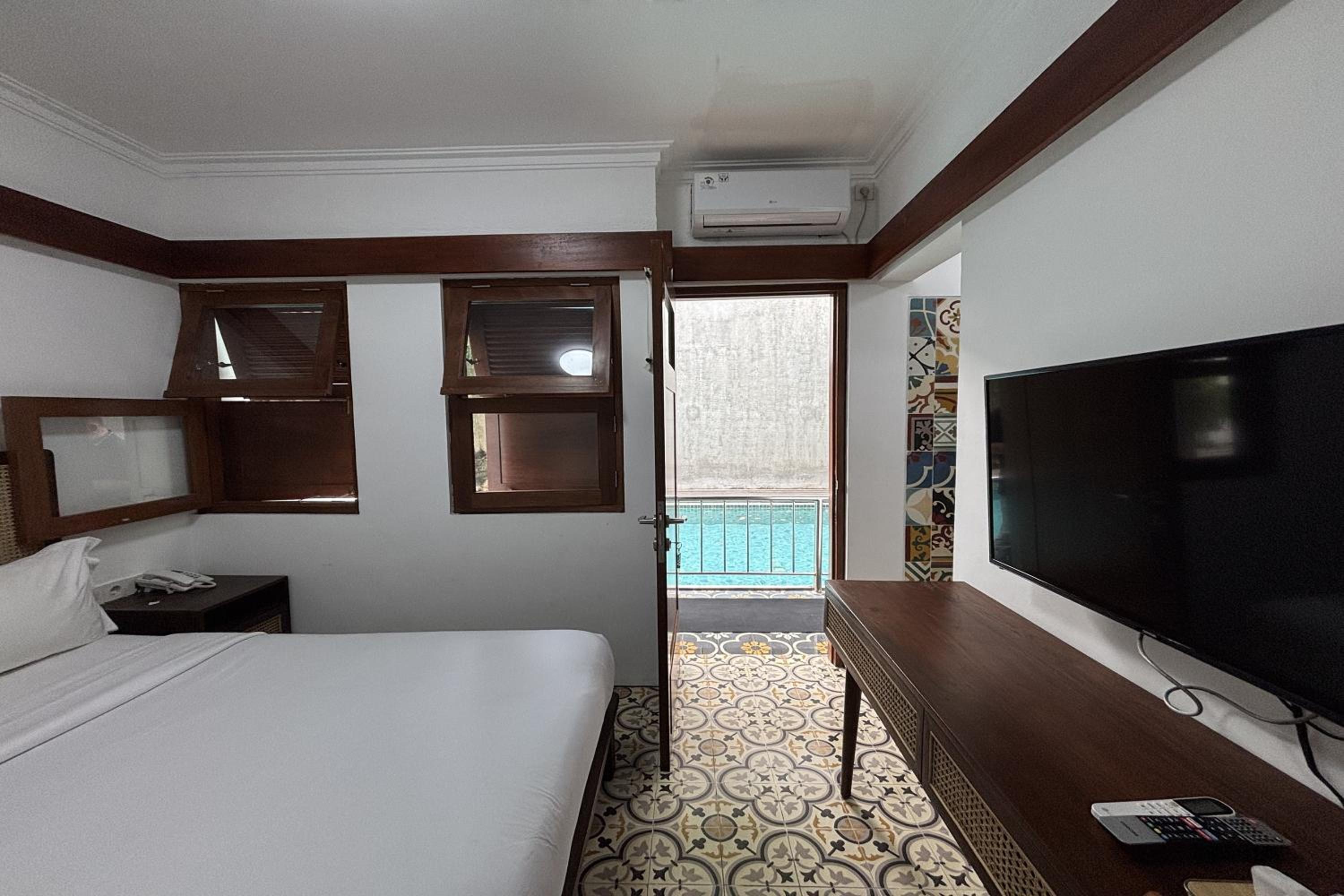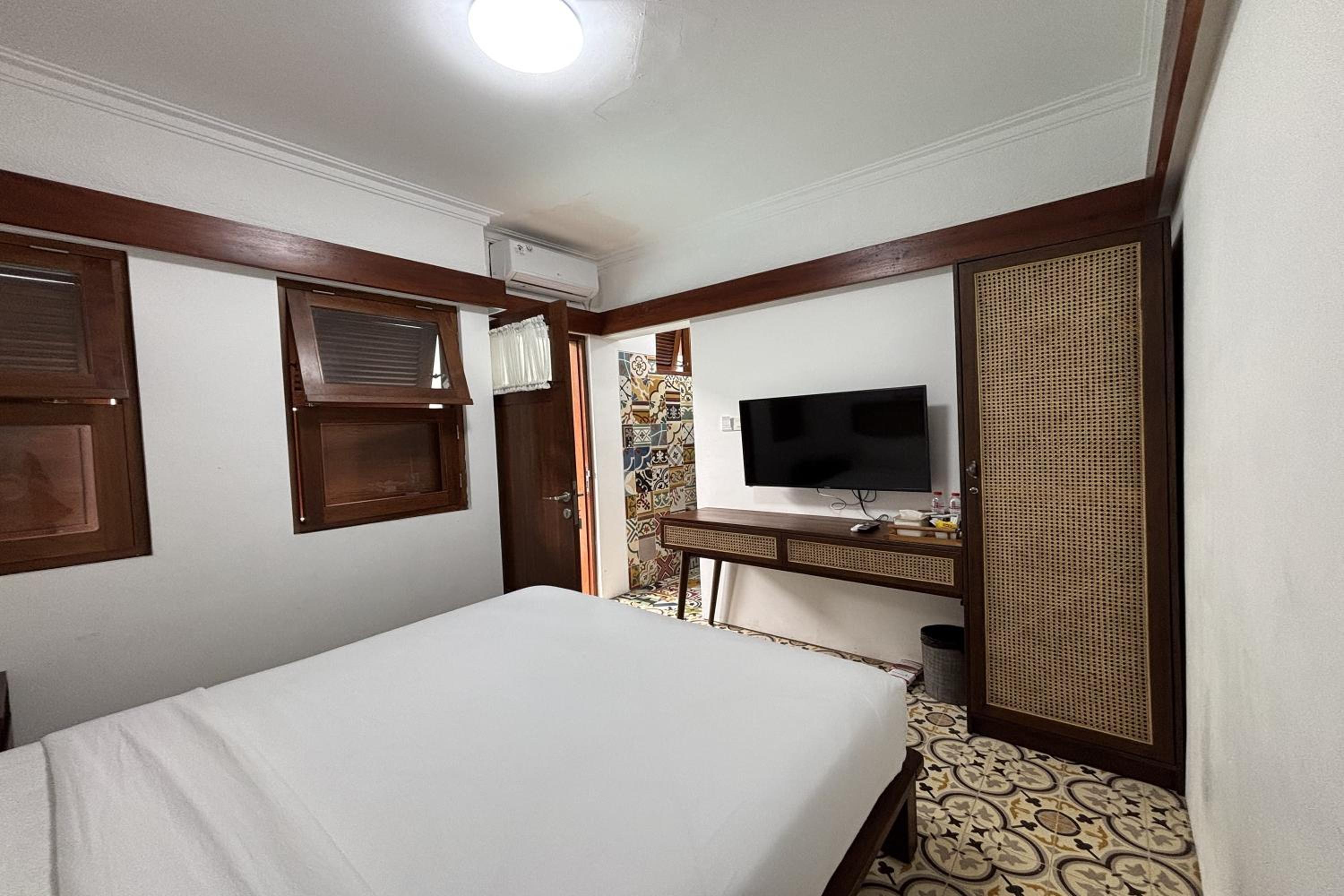 Relax in air-conditioned rooms featuring a flat-screen TV, private bathroom, and cozy bed.