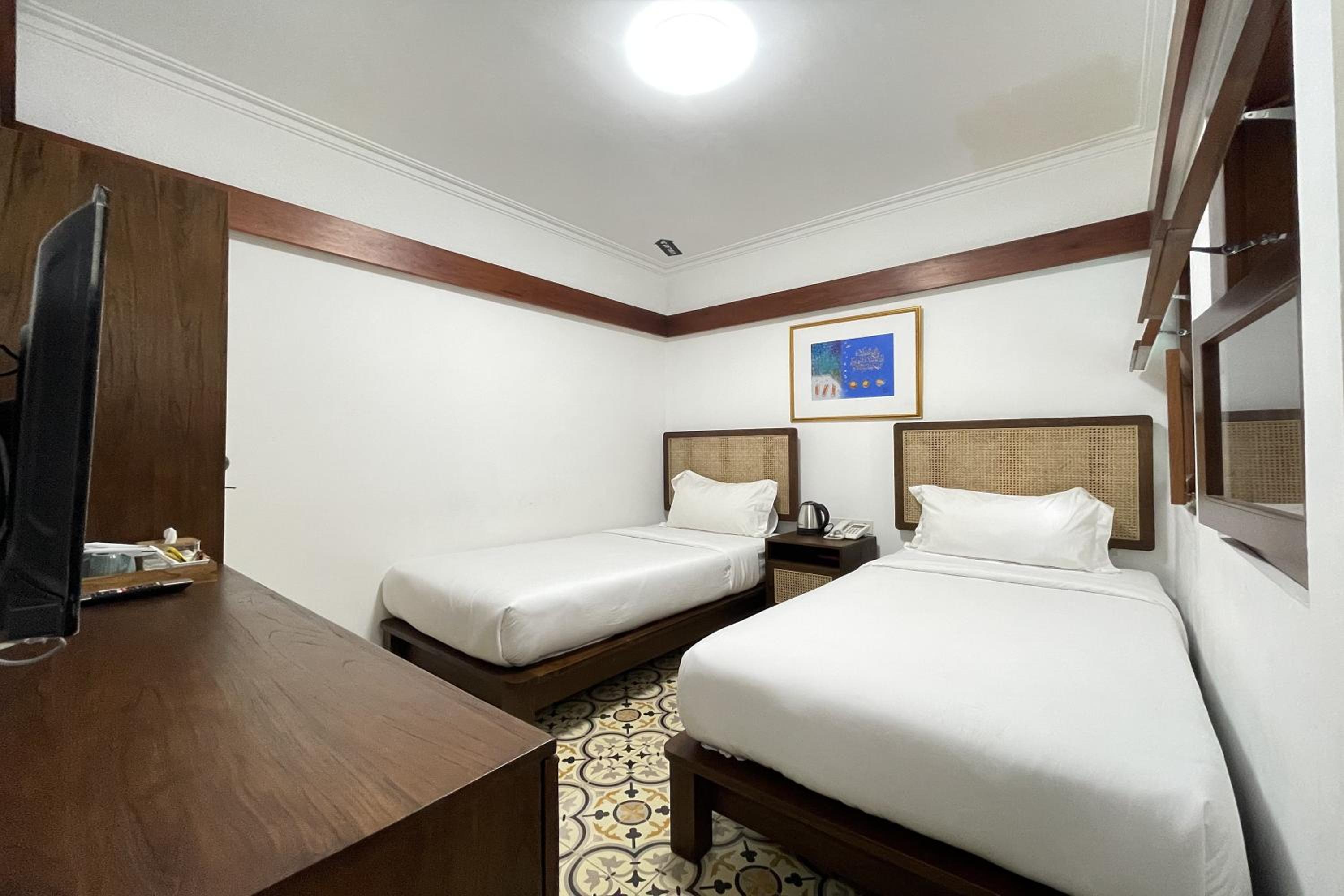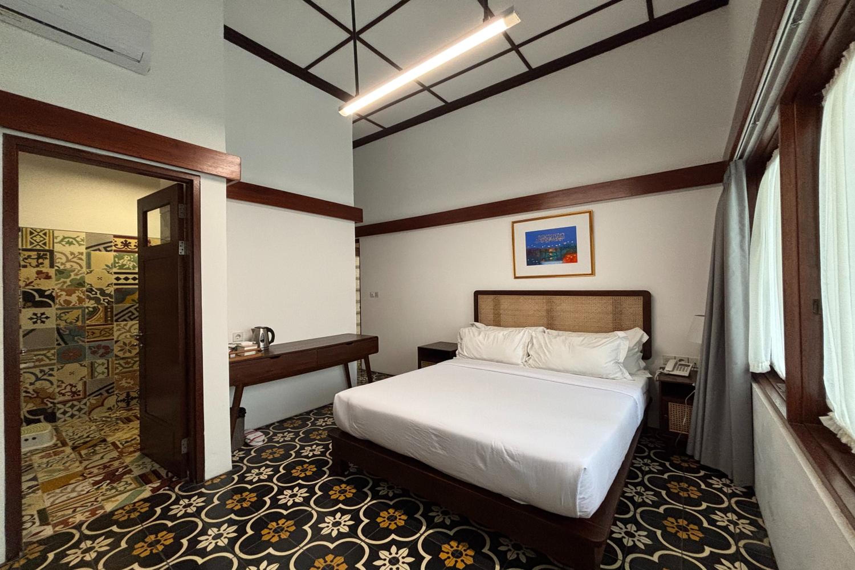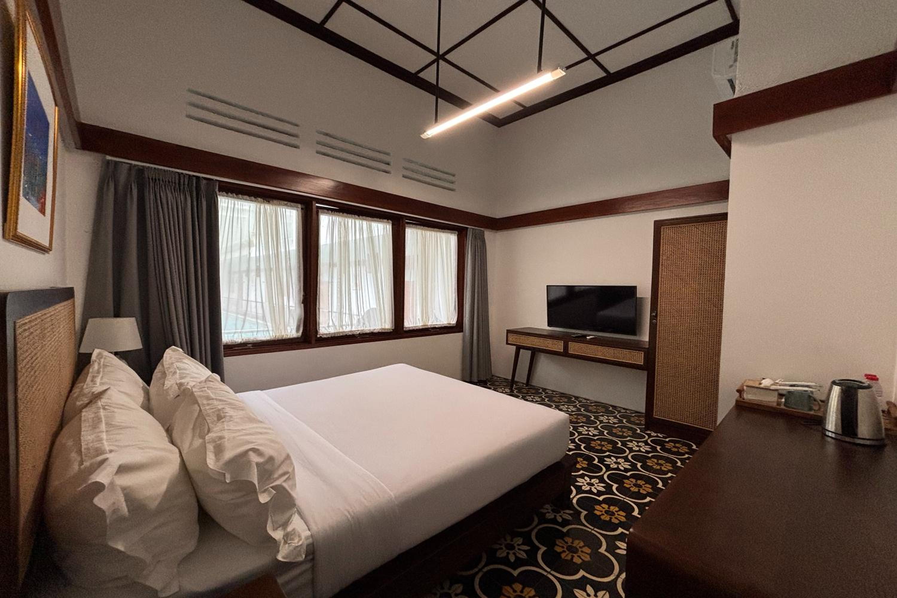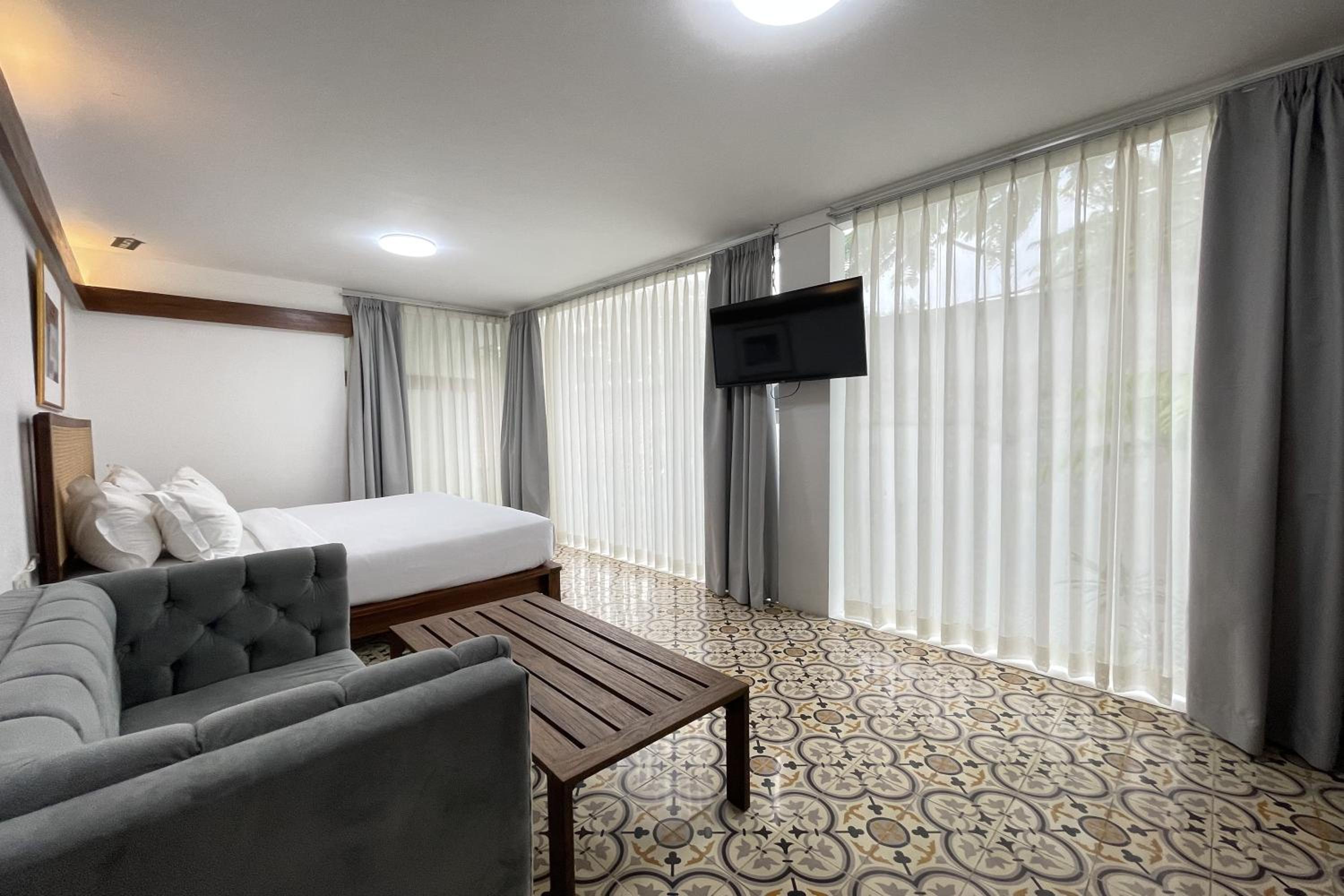 Relax in air-conditioned rooms featuring a flat-screen TV, private bathroom, and cozy bed.