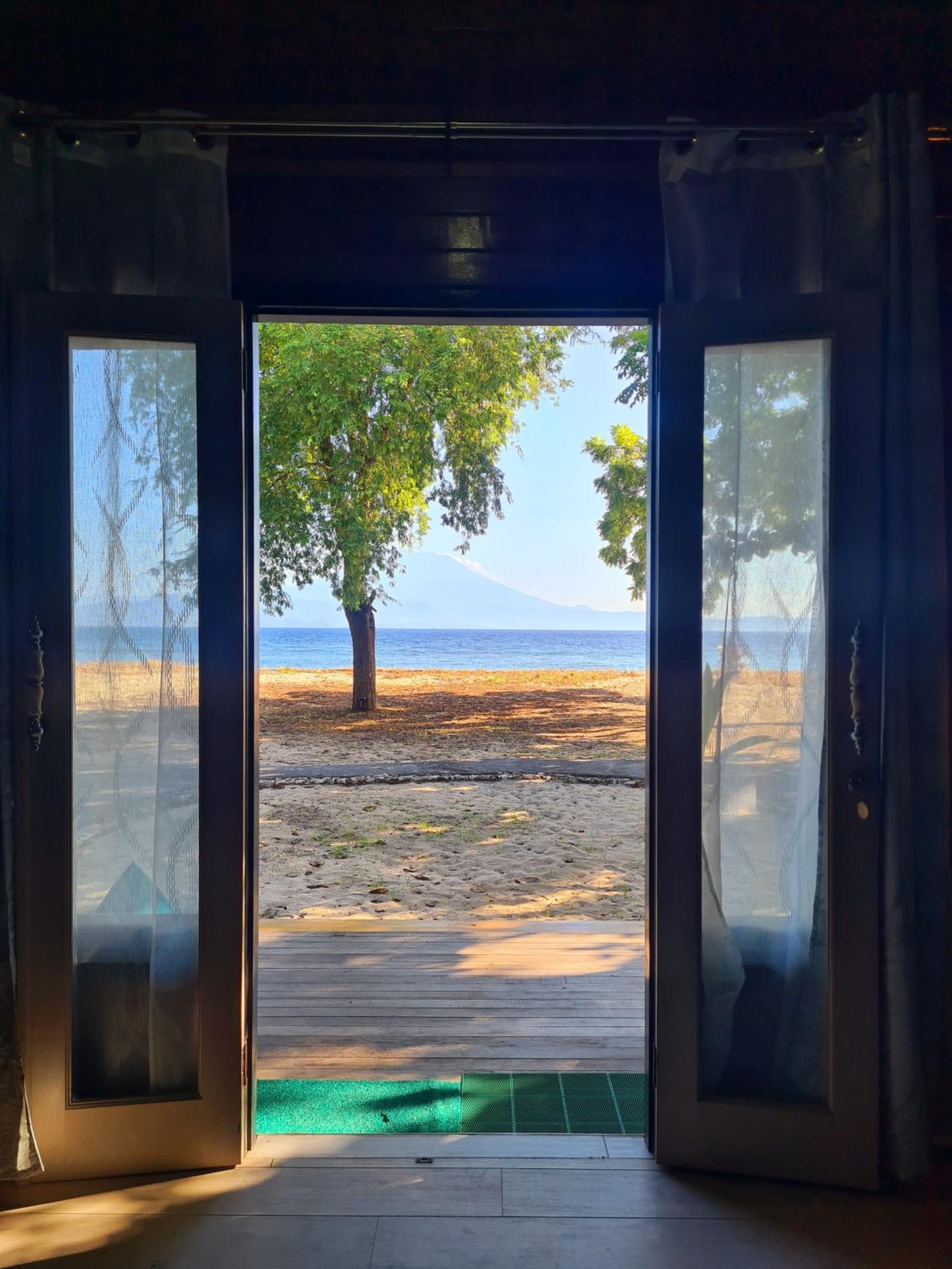 Habitación a pie de playa literal , sales en la arena , vistas muy bonitas , muy cerca del puerto , del mercado nocturno de comida. Dueño muy amable. Muy bien como base para visitar la isla. Desayuno básico , pero bueno, huevos , tostadas, zumo de naranja natural , el dueño te ofrece varias opciones . Una de las habitaciones tiene piscina privada exterior