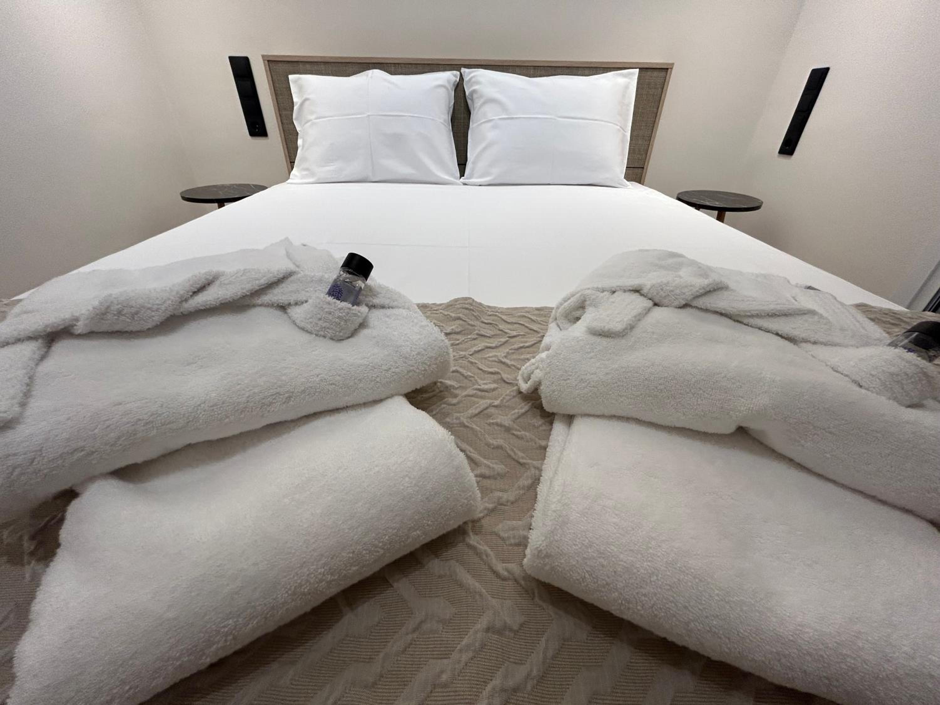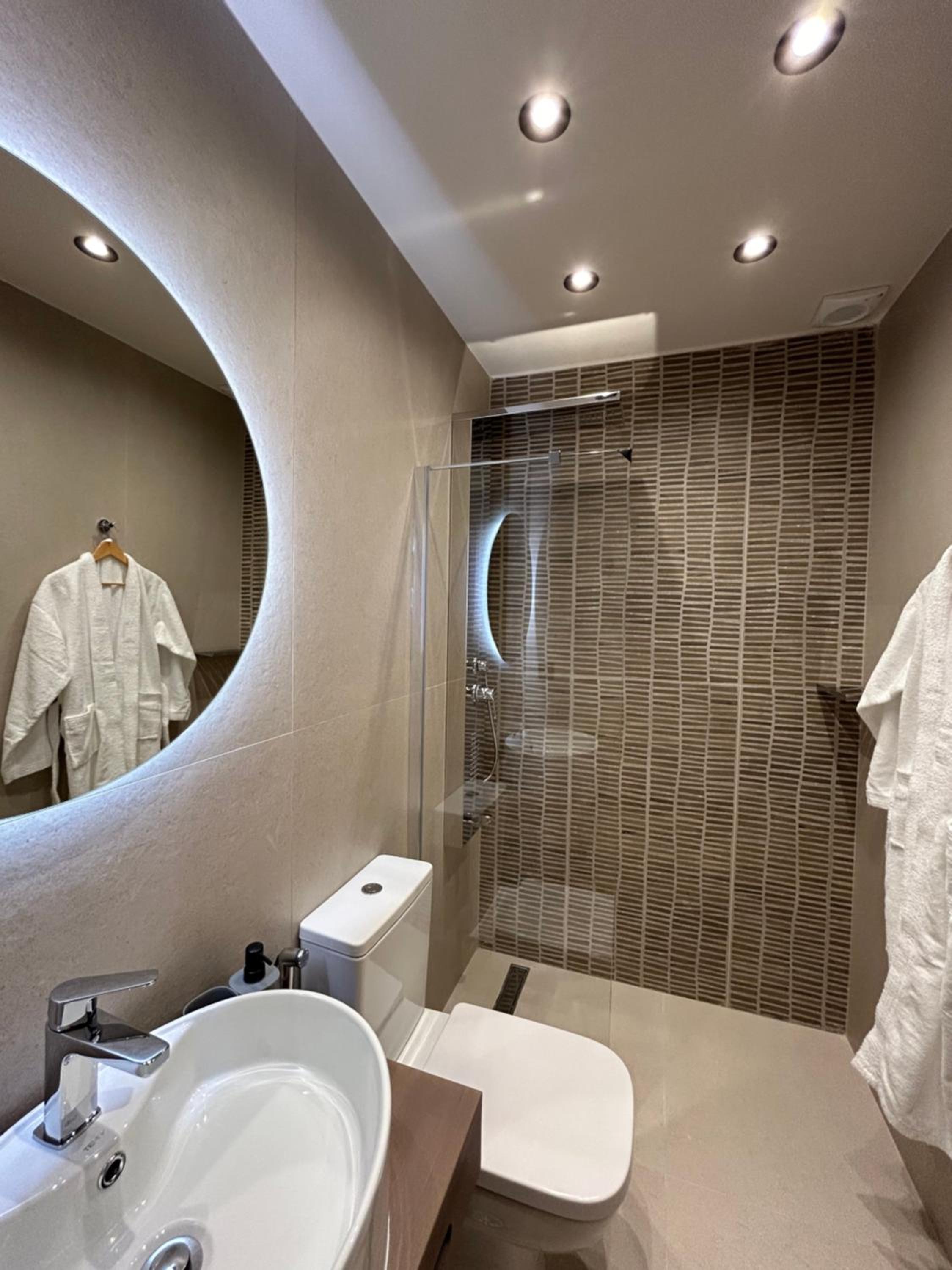Indulge in luxury with air-conditioned rooms, fully equipped kitchens, and modern bathrooms featuring walk-in showers and plush bathrobes.