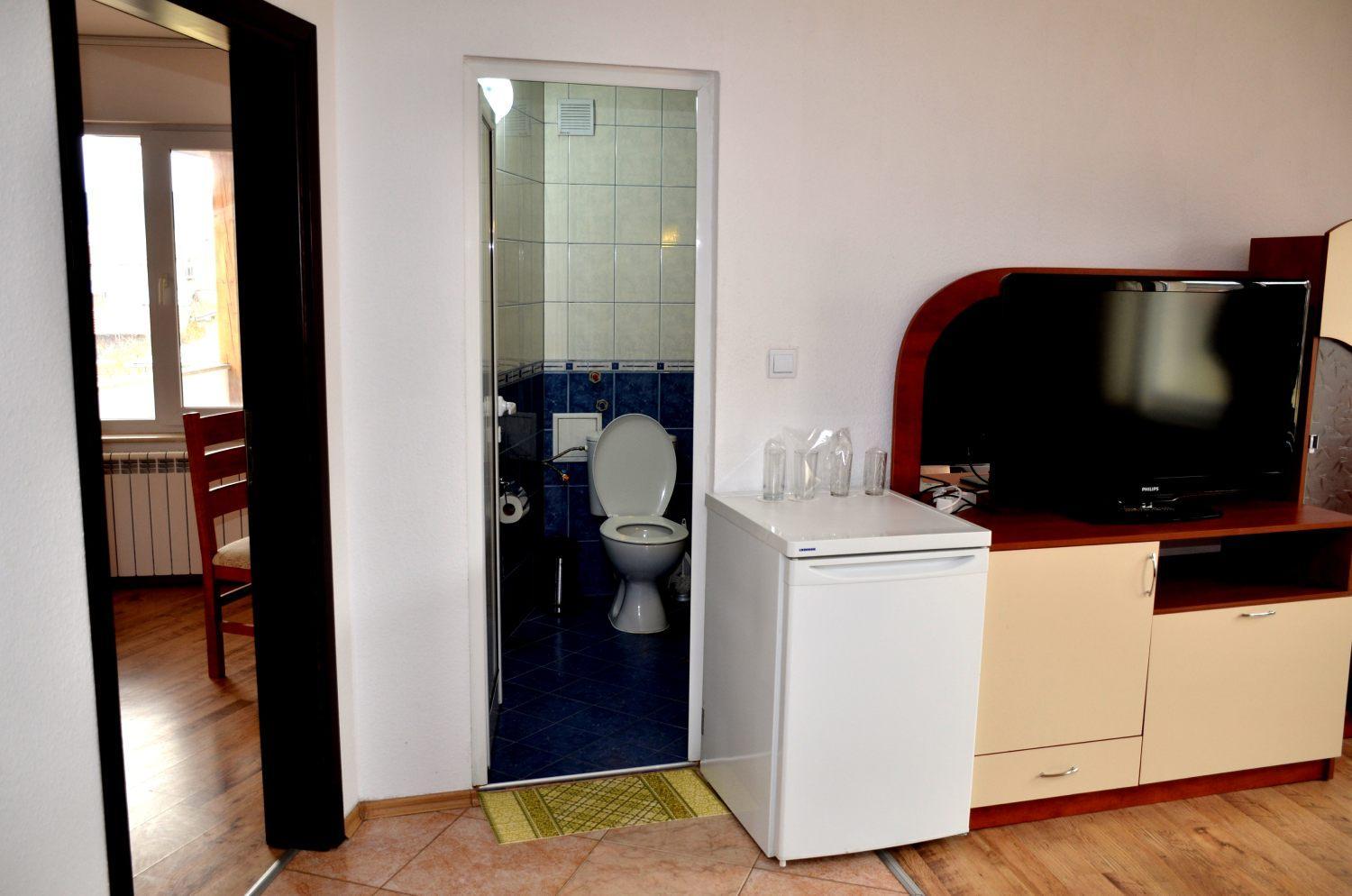 המקלחת בתוך השירותים, צפופה מאוד, הניקוז לא עבד טוב.
