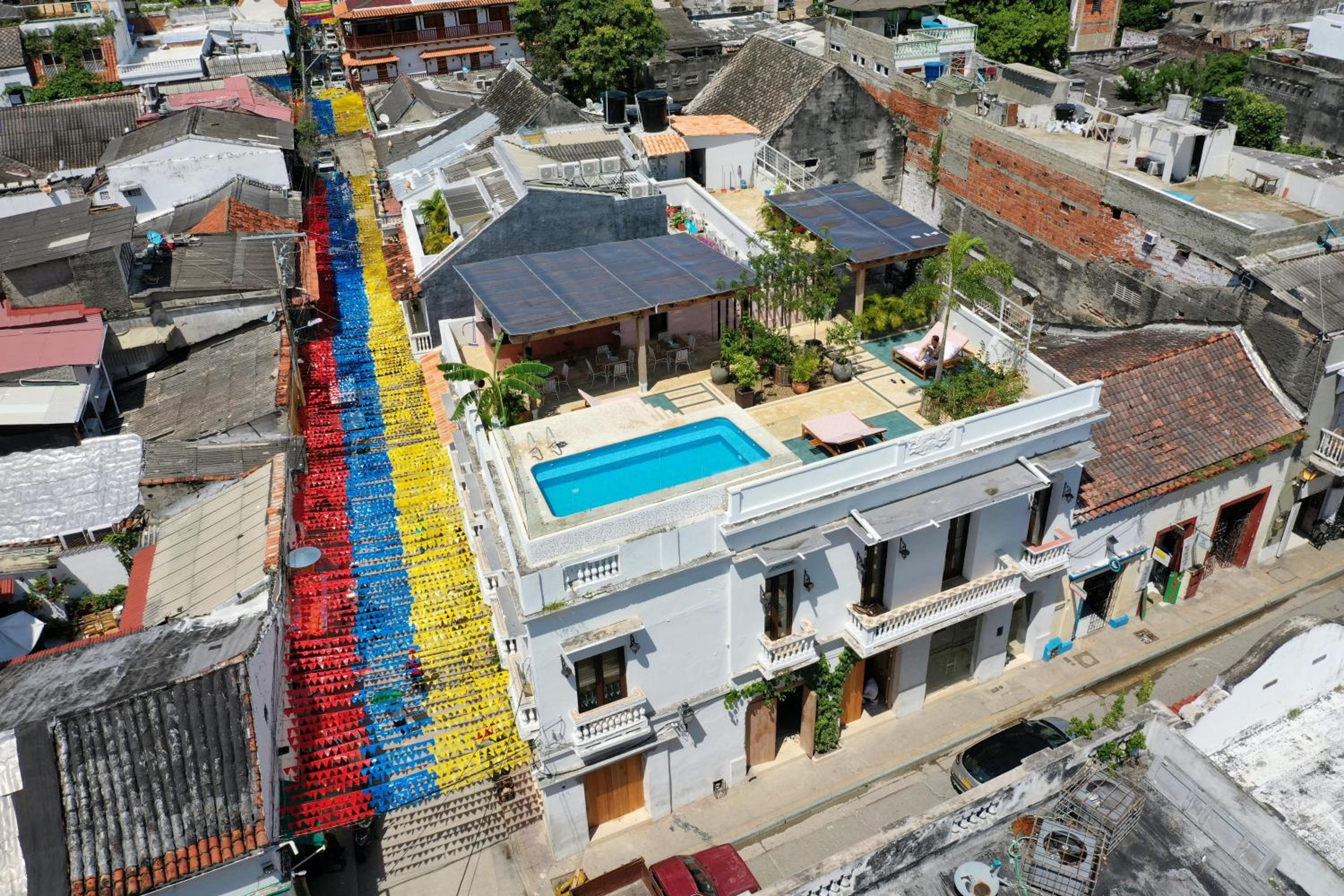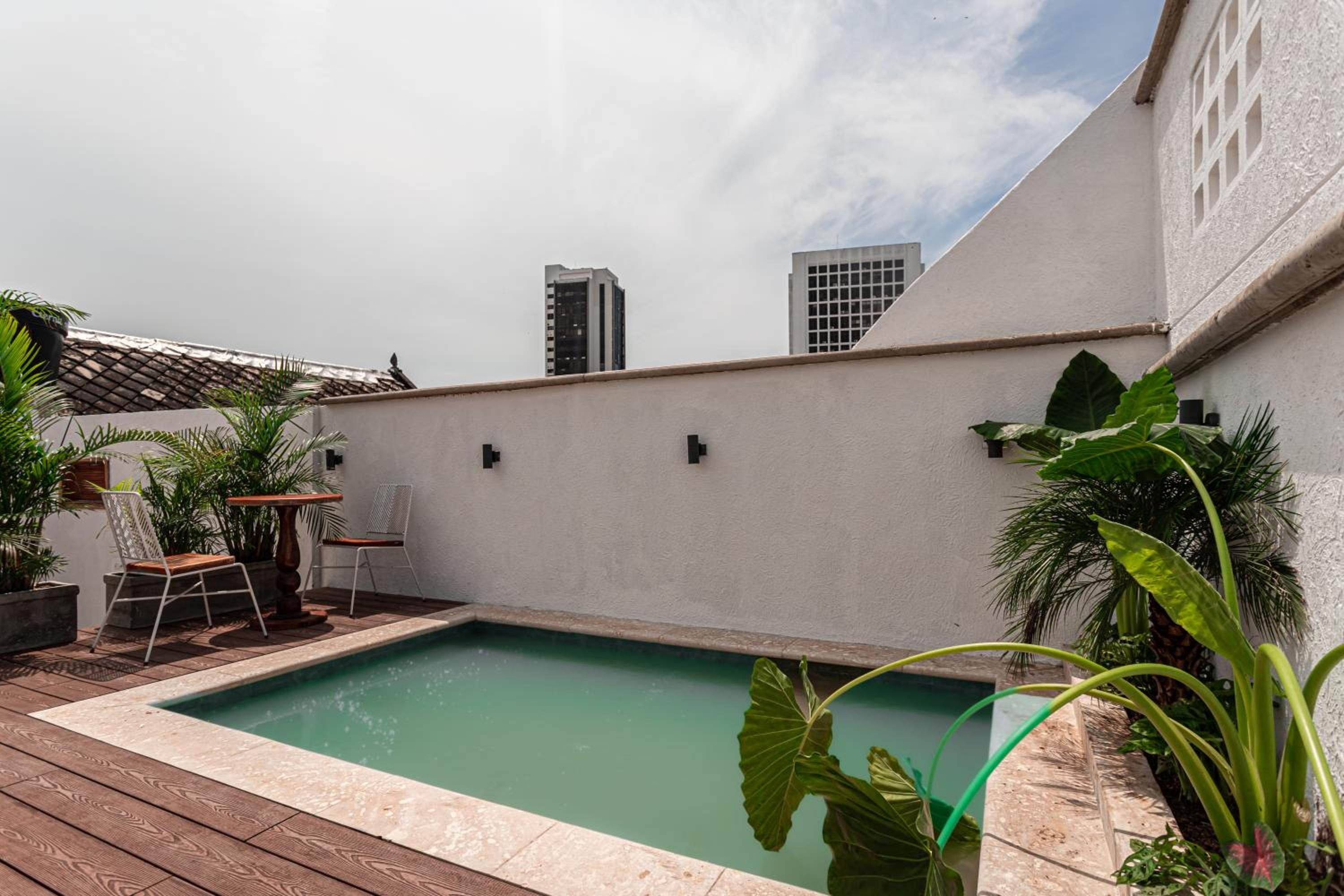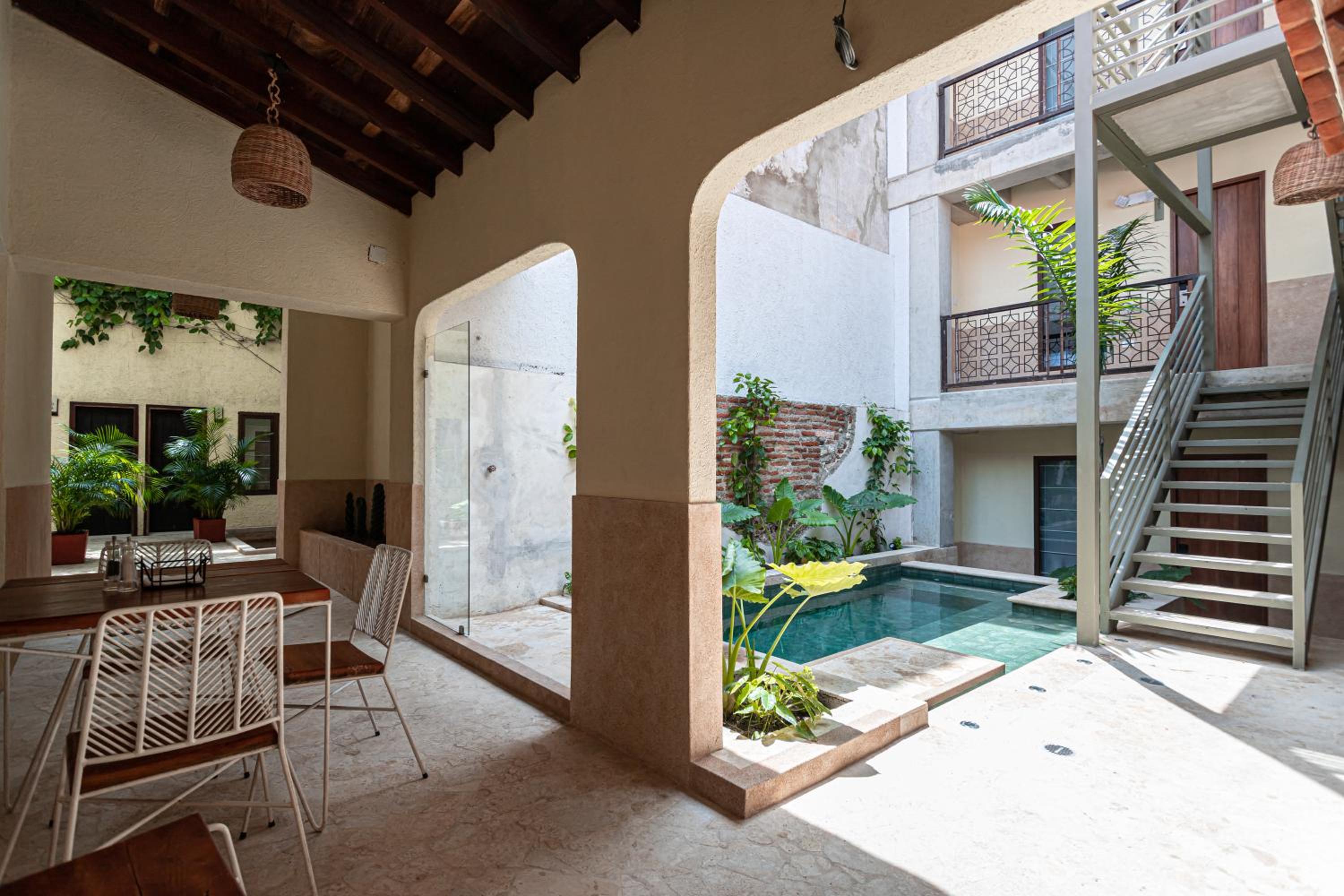 La ubicación estratégica en el barrio Getsemaní, la infraestructura del hotel es muy bonita, tiene una pequeña piscina en el primer piso para usar en el día si quieres huir sol radiante de Cartagena y tiene una piscina en la azotea con una vista muy precaria pero agradable para observar el atardecer caribeño acompañado de una buena charla, lo sorprendente son las habitaciones, en mi caso personal, me asignaron una habitación grande espaciosa con una baño muy confortable, me gustó muchísimo la decoración y el ambiente del hotel.