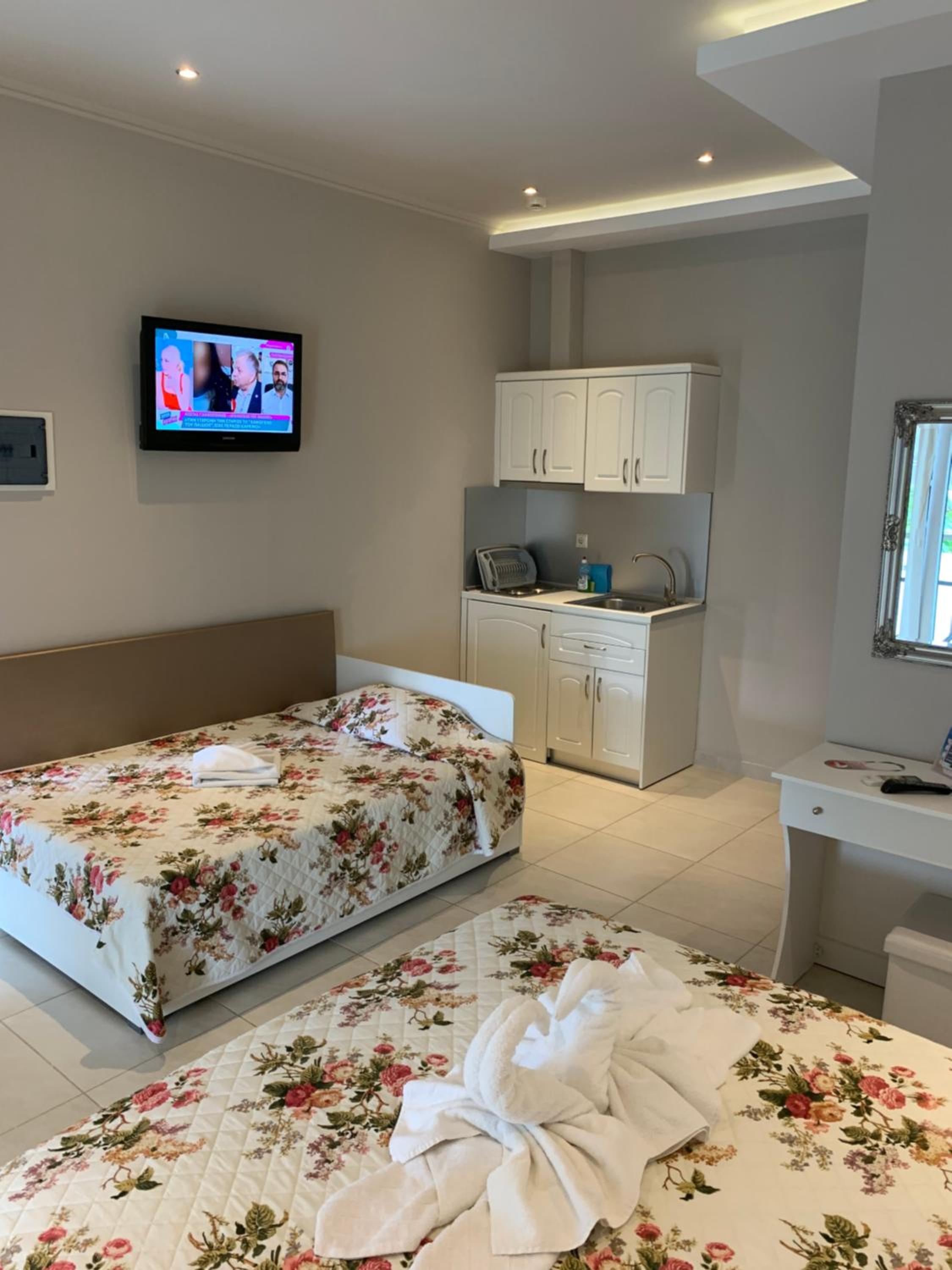 Tesisin konumu harikaydı. Merkeze ve restoranlara yürüme mesafesindeydi. Odamızın büyüklüğü çok yeterliydi. Havlular, çarşaflar ve oda gayet temizdi. Babis (tesisin sahibi) harika bir insan. Çok sıcakkanlı, yardımsever ve ilgiliydi. Her şey harikaydı.