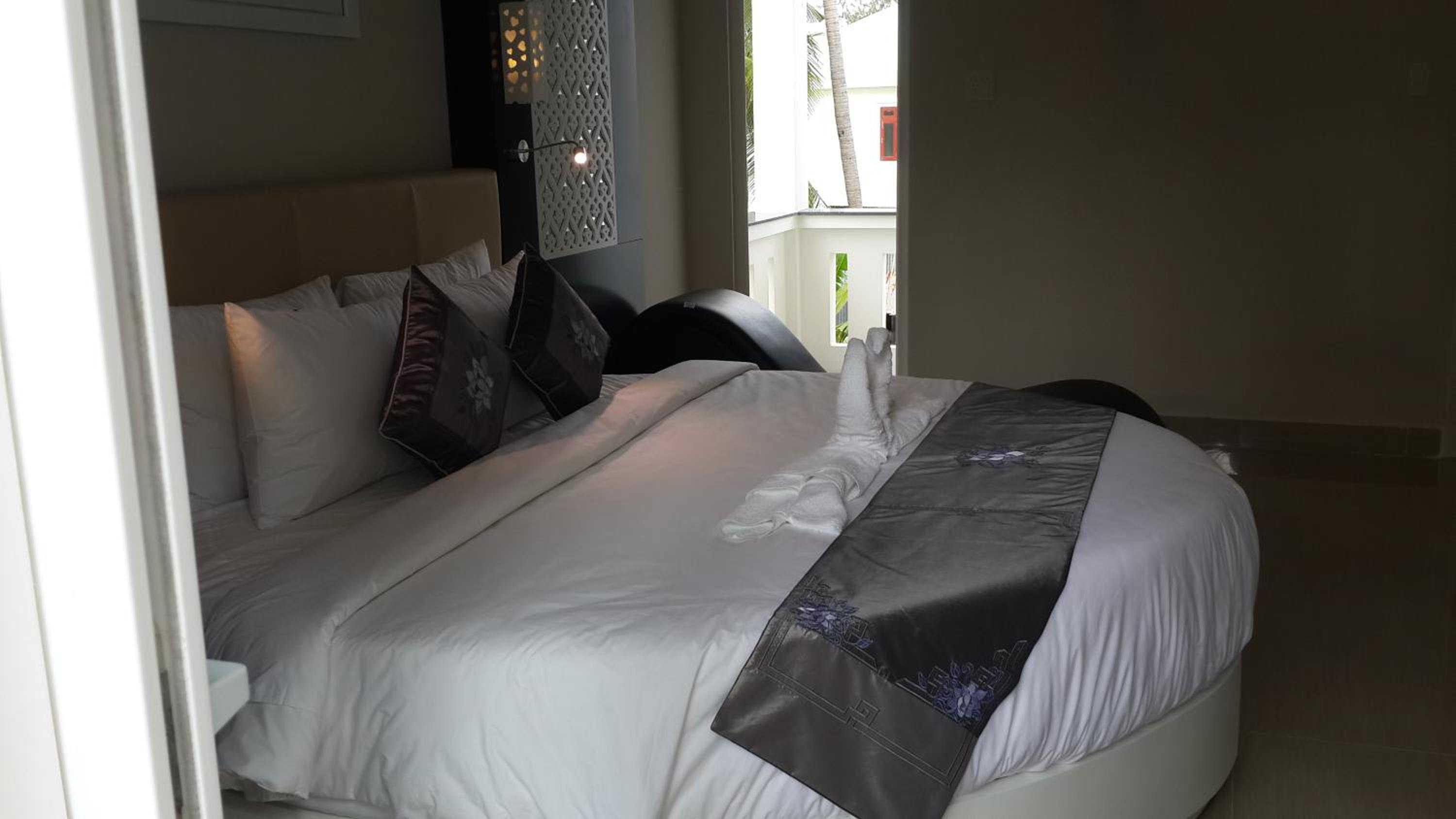 The staff is very helpful, they helped us to book a bus ticket to Cambodia. Place is peaceful, only few hundred meters to the beach. And you can actually swim there.