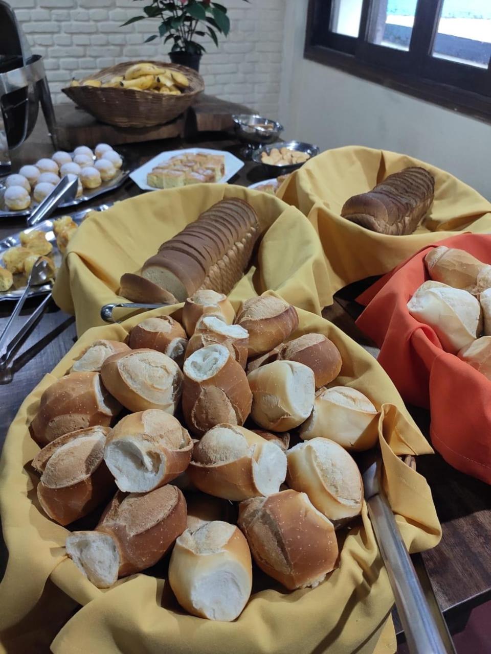 O café da manhã é incrível muitas opções e variedade.