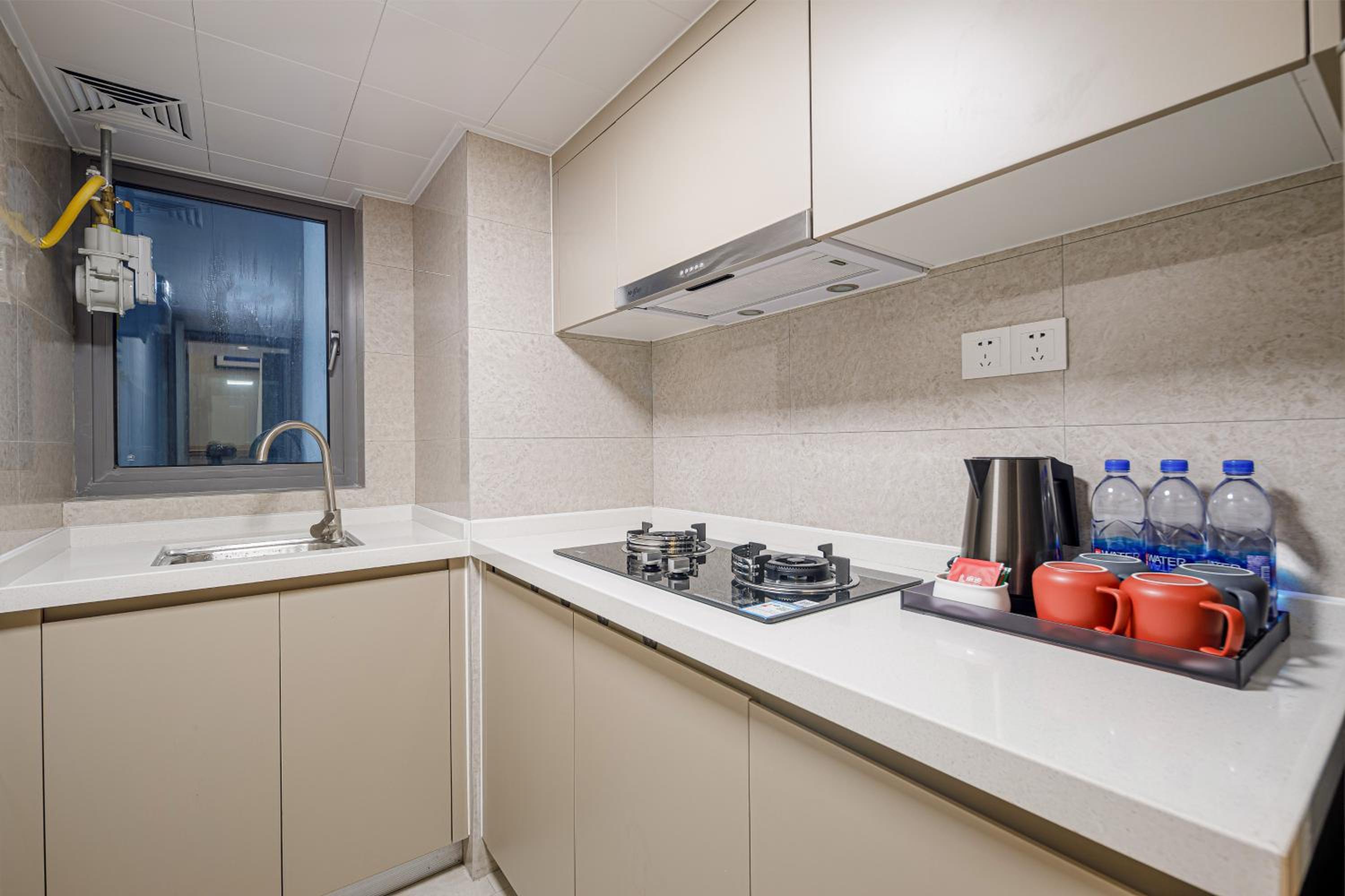 Its a serviced apartment with kitchen appliances but without any utensils except cup only.