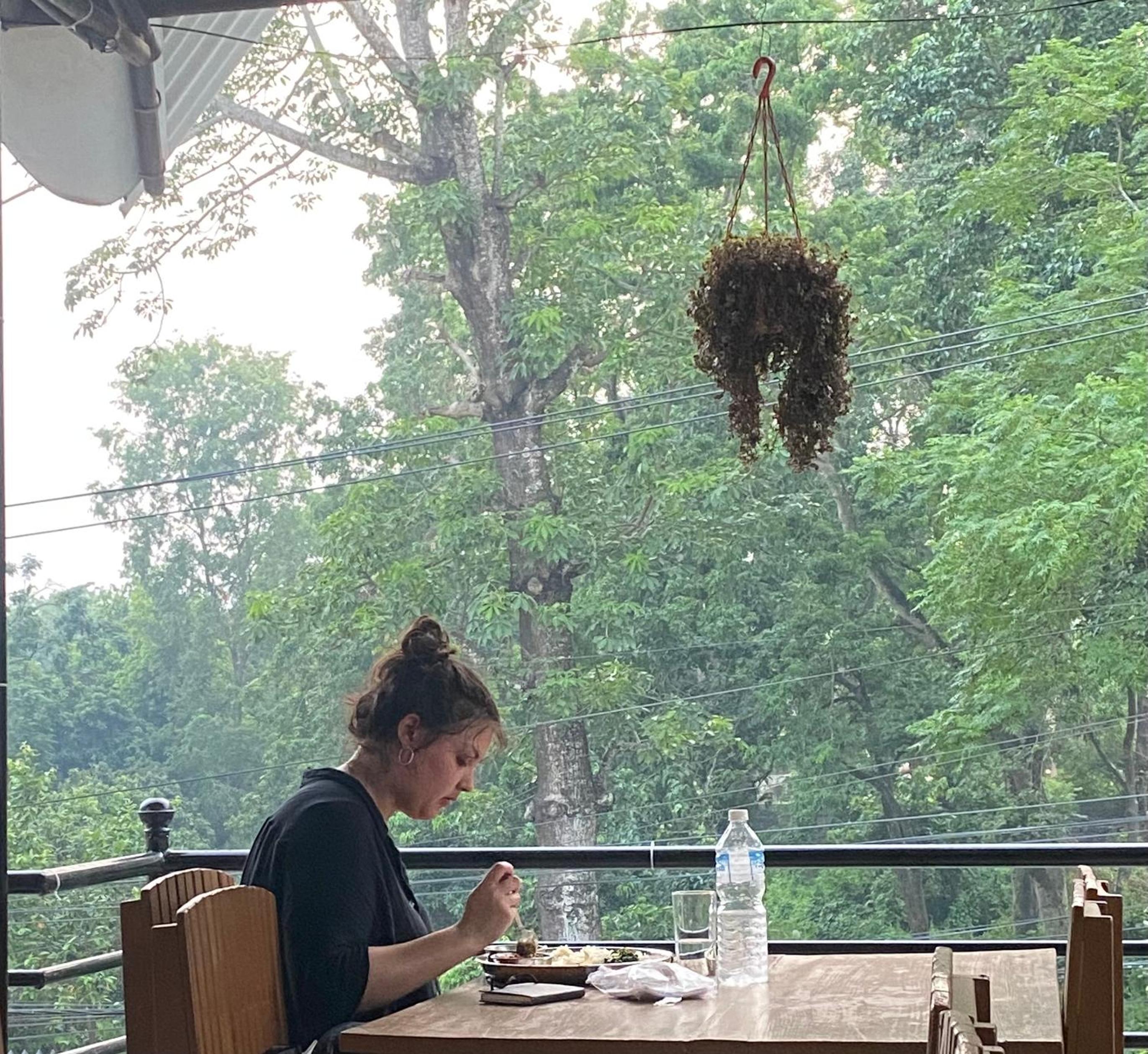 The roof top is perfect for birders since it has a view on an old orchard garden full of woodpeckers, warblers, magpies, tit birds, sparrow hawks, kites, Alexandrine parakeets, bulbuls.We even watched a white stork flying over and an ibis resting nearby.Koels are miawing in the morning.This is the perfect location for ornithology. I think they ve got binoculars downstairs to borrow.The room had decent AC and hot water shower.The hotel is located not far from the water where we watched wild crocodiles.A lot of elephants in the area as well.Take this hotel when you love nature.
