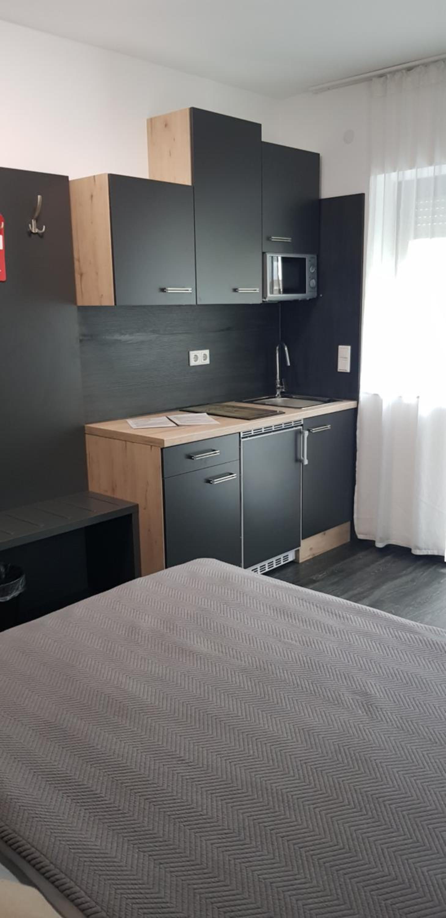 Catered for everything for a long term stay. Washing machine, parking, fresh sheets and towels every week, lovely studio apartment and the staff are exceptional. Love it here.