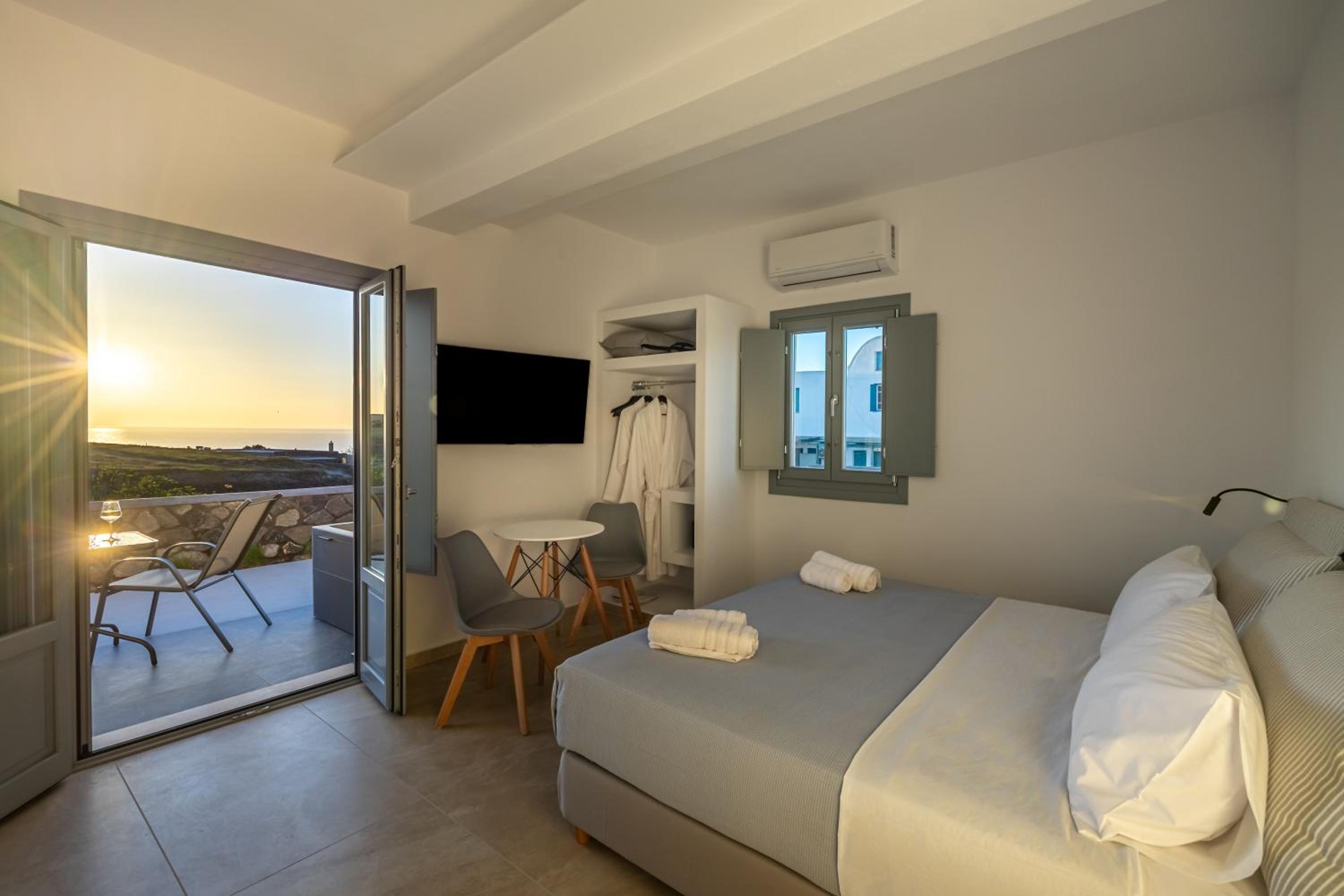 Abbiamo soggiornato in questa struttura dal 30/08 al 3/09 e ci siamo trovati benissimo. La struttura gode di tutti i comfort e offre un panorama spettacolare con vista tramonto, ogni stanza ha una vasca idromassaggio con acqua riscaldabile! vicinissima al centro di Oia.