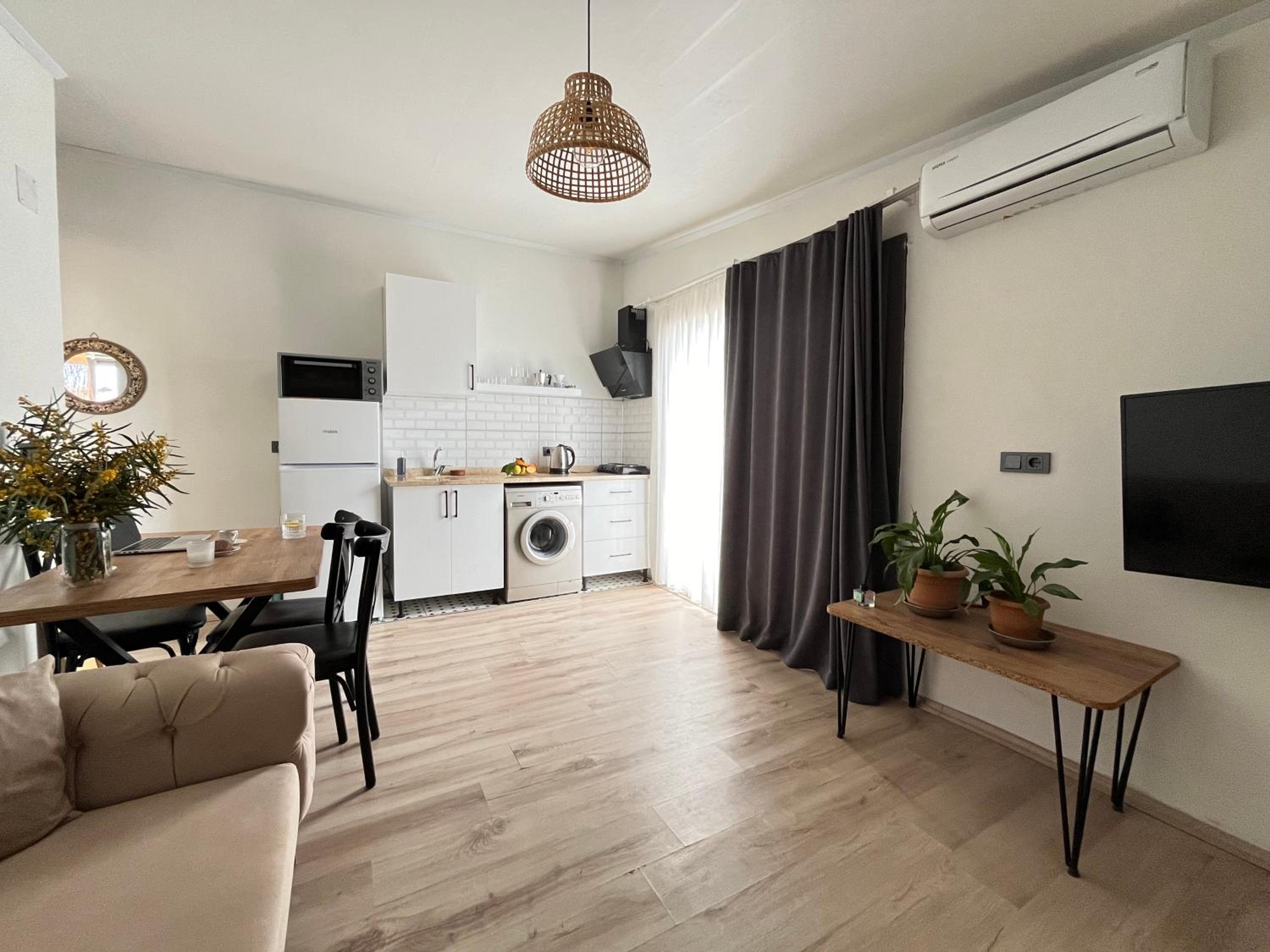 Relax in the comfort of a fully equipped kitchen, air conditioning, and a flat-screen TV in your luxurious 1-bedroom aparthotel.