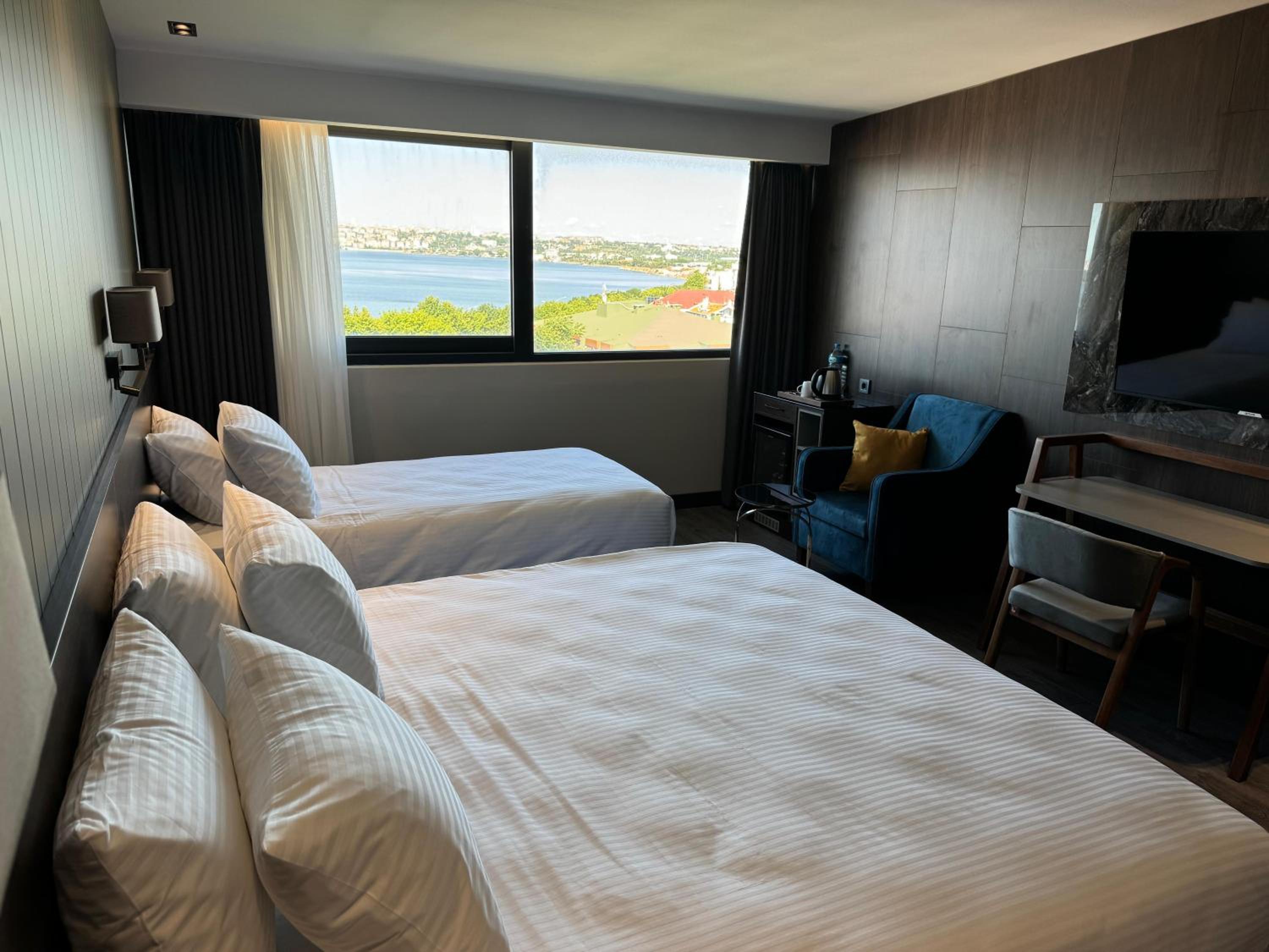 The location is close to the main road, yet is far enough to be able to hear the traffic. The view of the lake and the city reflecting in it is the cherry on top. The staff was super friendly and hospitable. The rooms are spacious and well maintained. There was plenty of space to park on the street and being in the outskirts of the neighbourhood the overall traffic was low considering Istanbuls road madness all around.