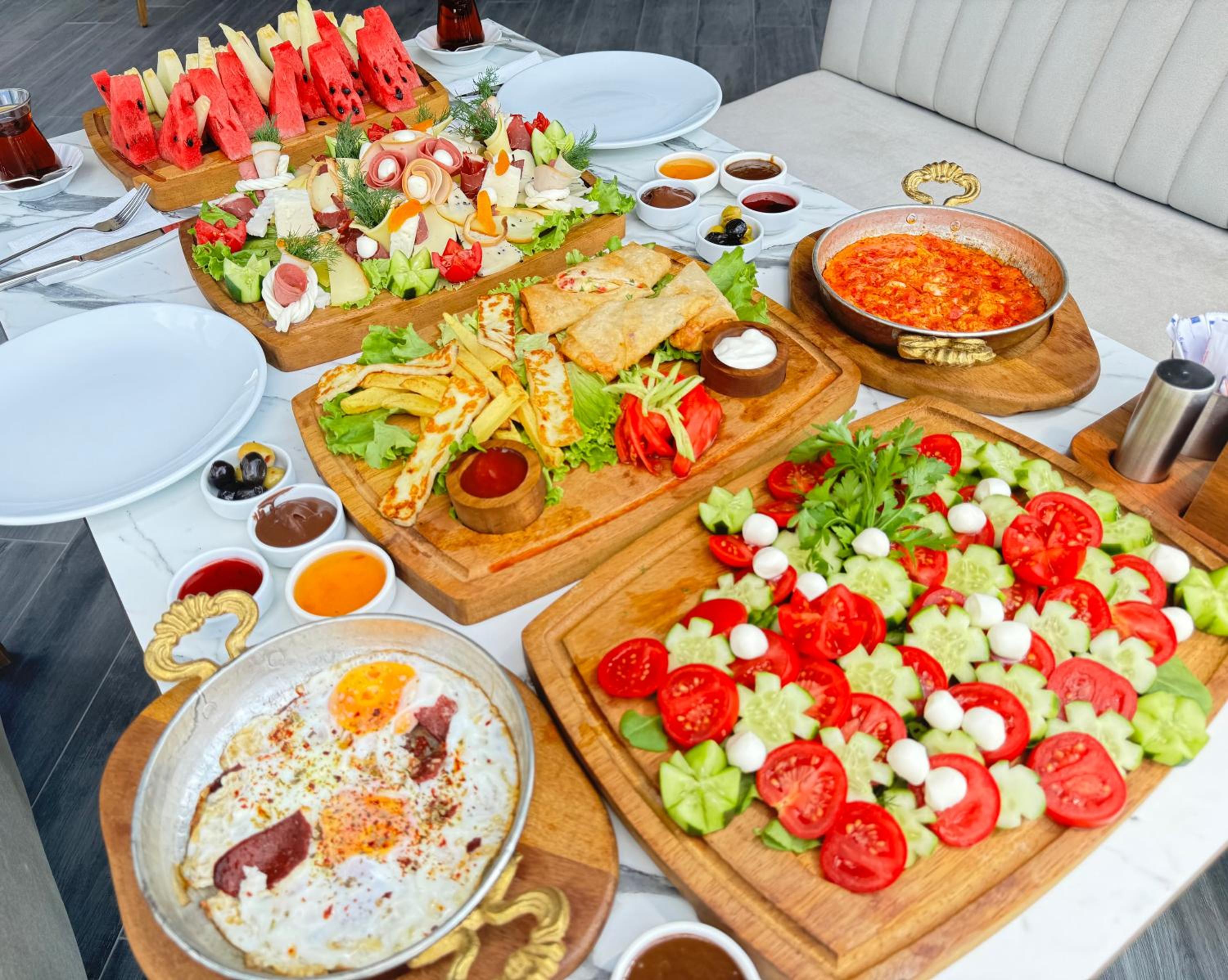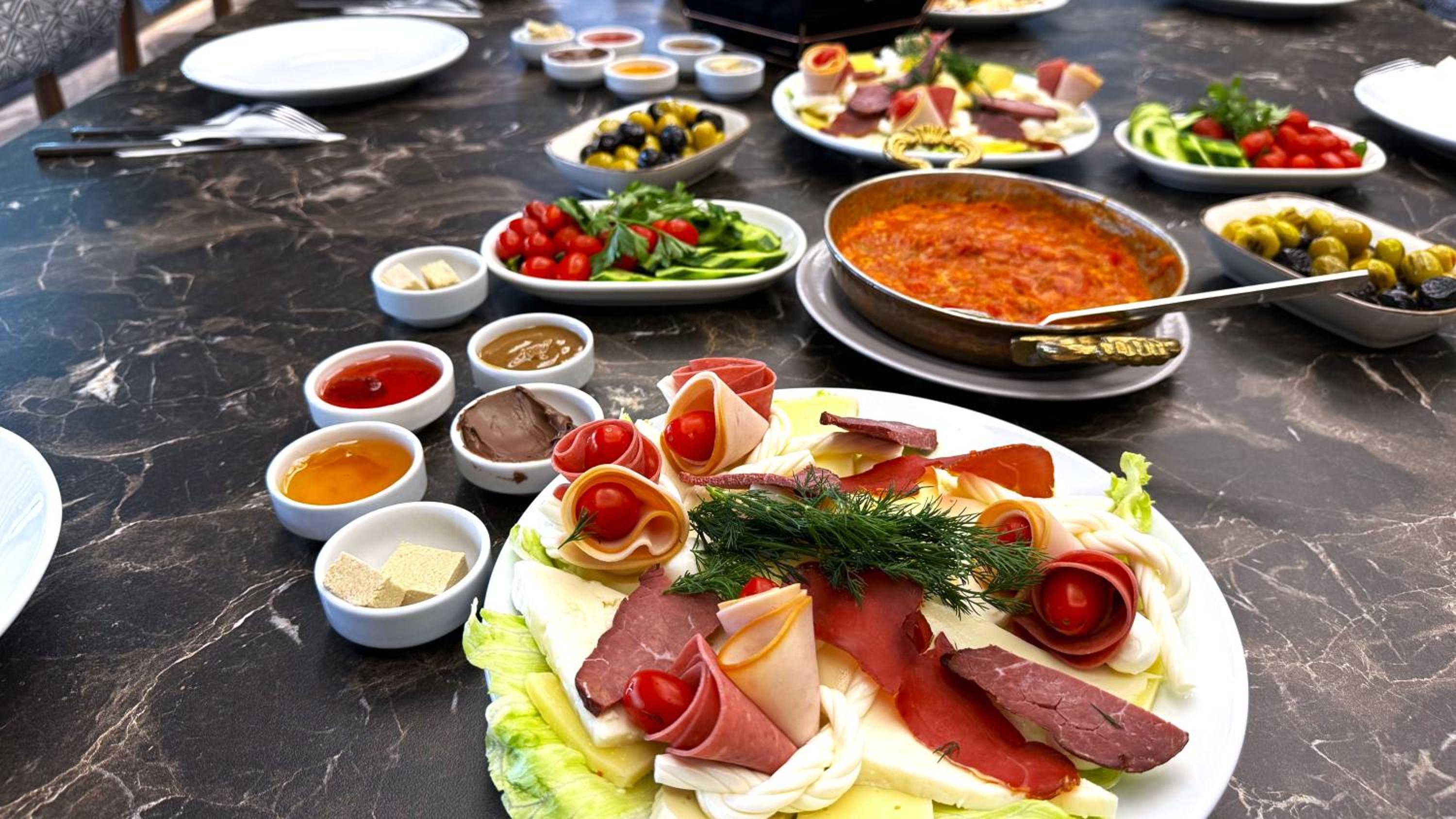 Açık büfe kahvaltısı güzel doyurucu aç çıkmazsınız. Yiyecek kalitesi gayet ideal ve güzel. Menü zengin. Sıcak su veya havalandırmada da bir sorun yok.