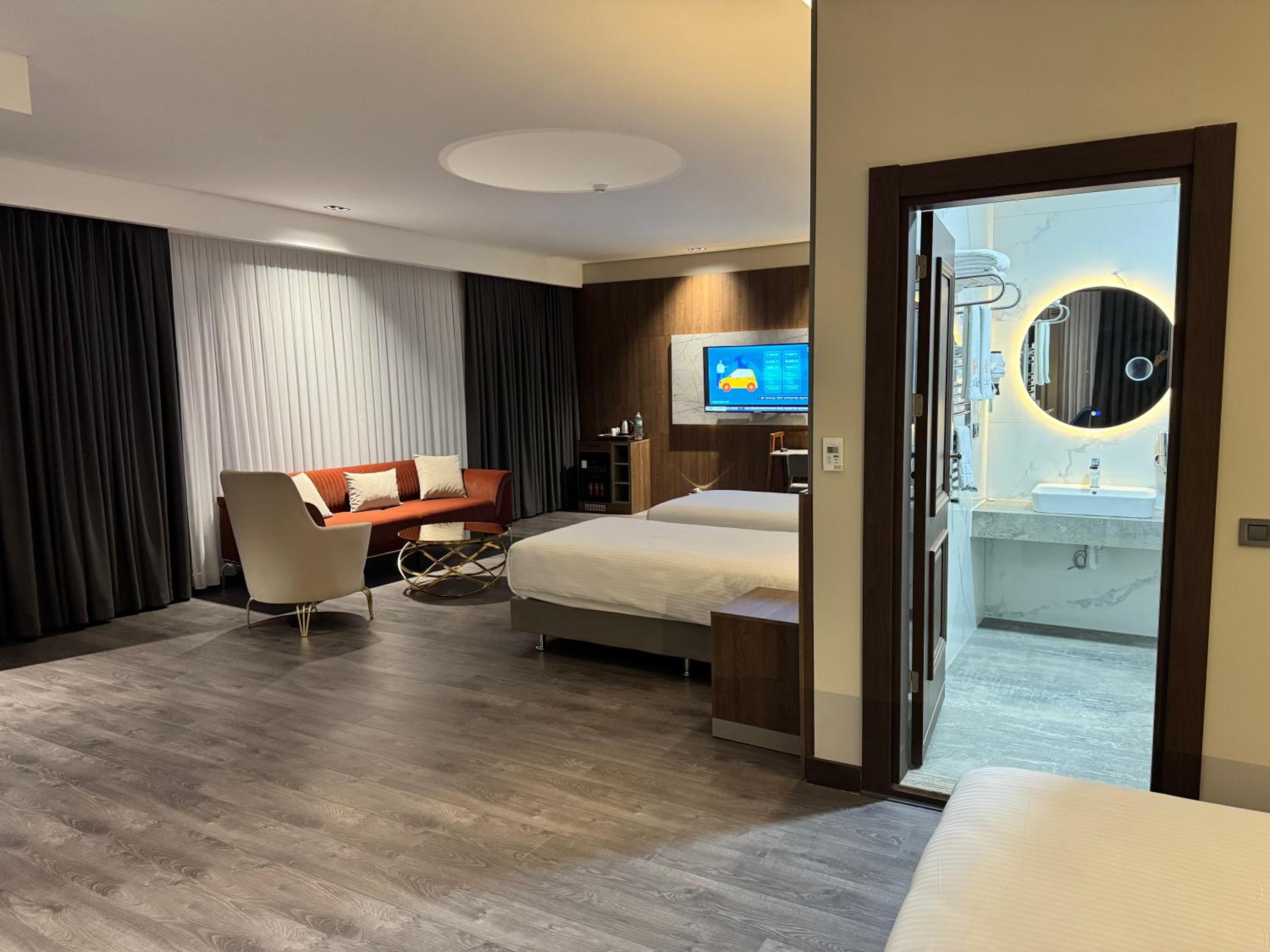 Otel çalışanları çok iyiydi. Özellikle gece bizi karşılayan ve ilgilenen Oğuz beye teşekkür ediyorum. Çok temiz, modern ve yeni bir otel. Odalar geniş ferah, banyo temiz ve geniş. Eşyalar yeni. İnternet sorunsuz. Valla ben çok beğendim. Buraya gelmeden önce Dubai - Sri Lanka - Maldivler de 3 hafta gezmiş ve 13 farklı otelde kalmıştım. Onların üzerine İstanbul havalimanından iner inmez buraya geldim/burada kaldım. Oralardan sonra çok çok temiz modern ve geniş geldi bana 😊