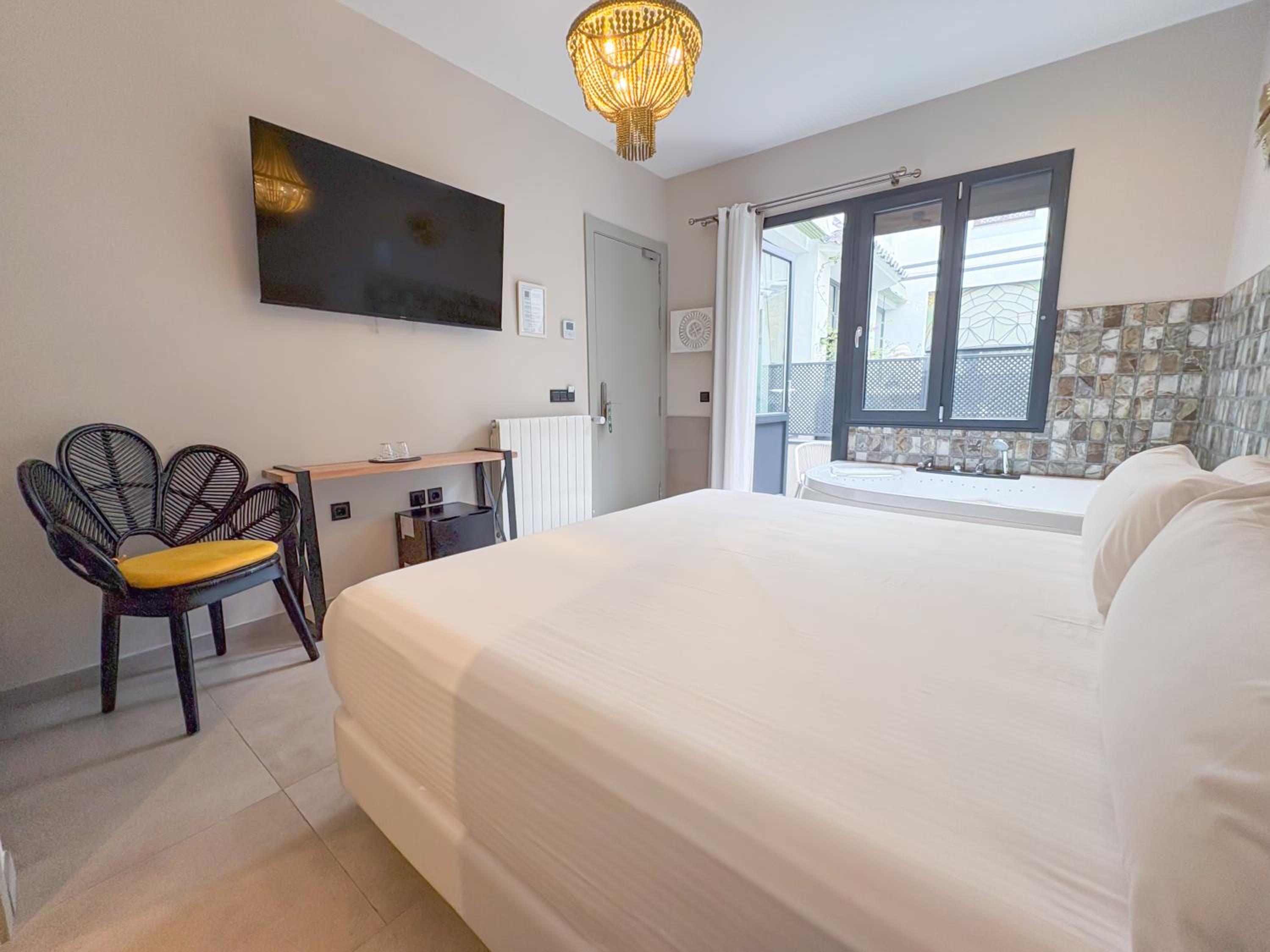 Nos encantó lo espaciosa que era la habitación y lo limpia que estaba y el Jacuzzi espectacular.. El alojamiento es muy céntrico y no se oye ningún ruido, se puede descansar perfectamente y la cama es muy grande y súper cómoda. Repetiremos seguro, sin dudarlo.