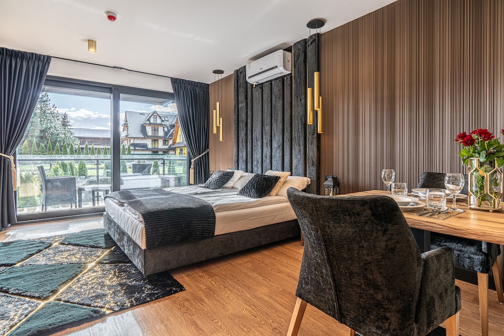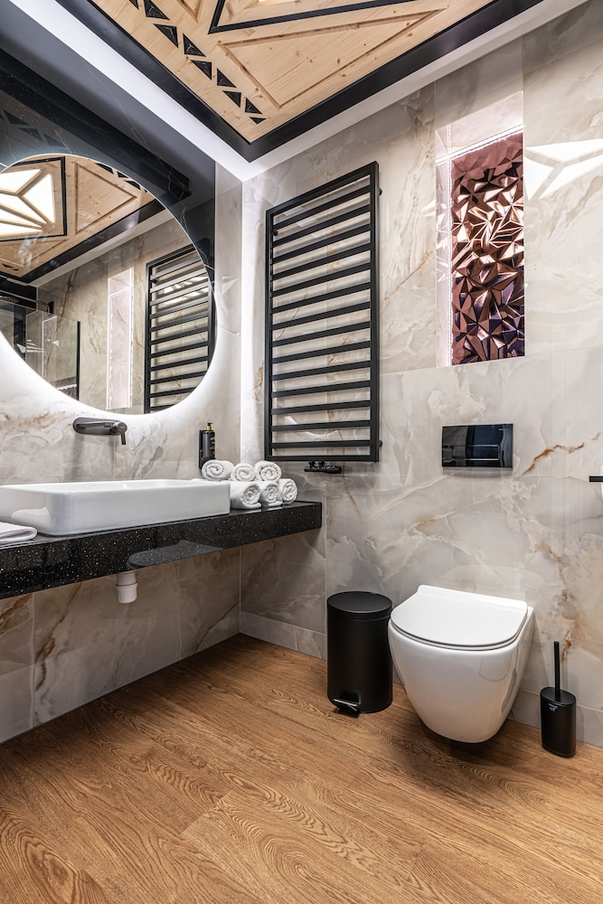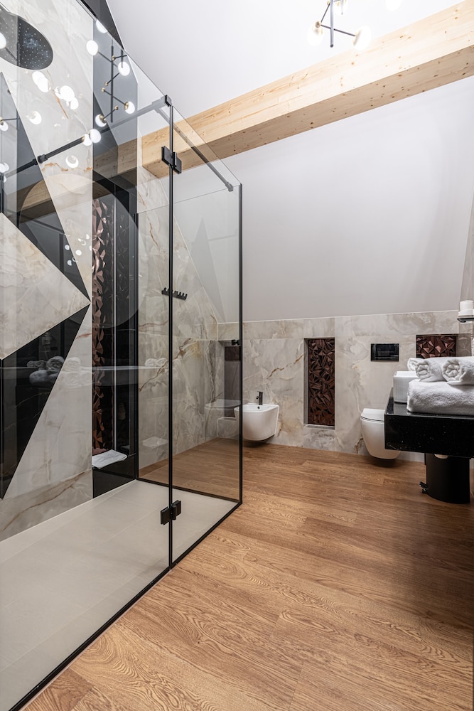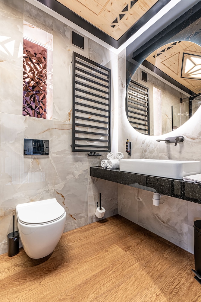 Relax in the 77 air-conditioned rooms with heated floors and LED televisions, complete with kitchenettes and free minibar items.