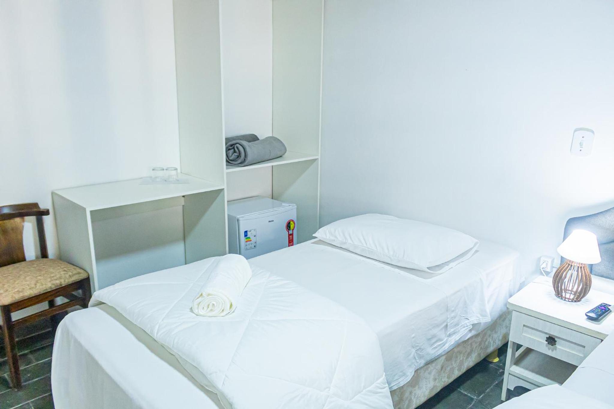 Café da manhã muito gostoso, com muitas opções. Quarto muito confortável, cama deliciosa. Os travesseiros eram um pouco duros, mas nada que atrapalhasse o sono. O banheiro bem pequenininho, mas bem limpo e suficiente para uma estadia rápida. Poderia ter secador, mas pelo preço não dava pra exigir muito.