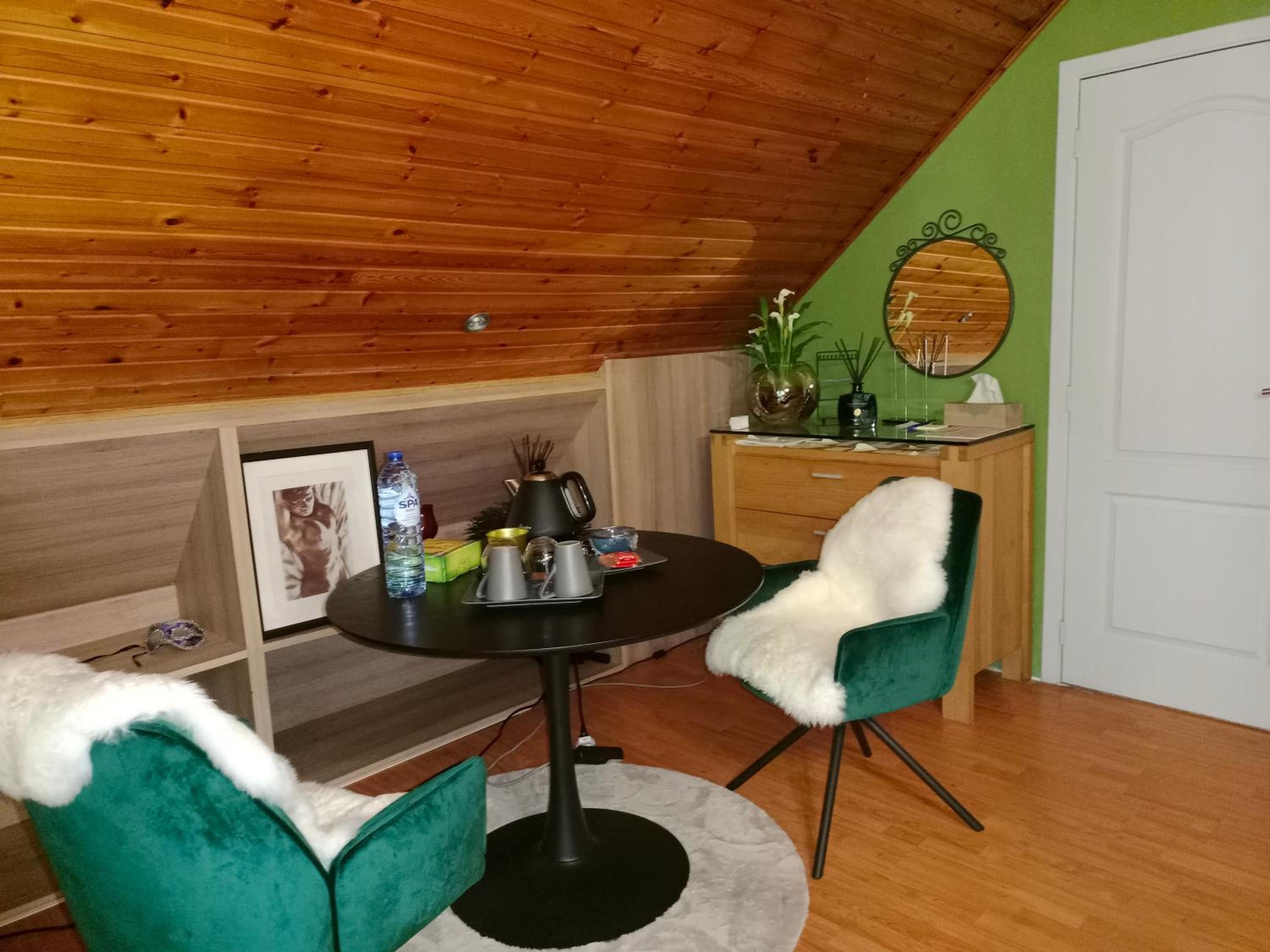The room was very nice, clean and comfortable. The landlord was very nice and friendly, and pets were very welcome. They lit a fire in the yard at night, and invited us to drink wine and chat. We spent a wonderful night in a strange place.