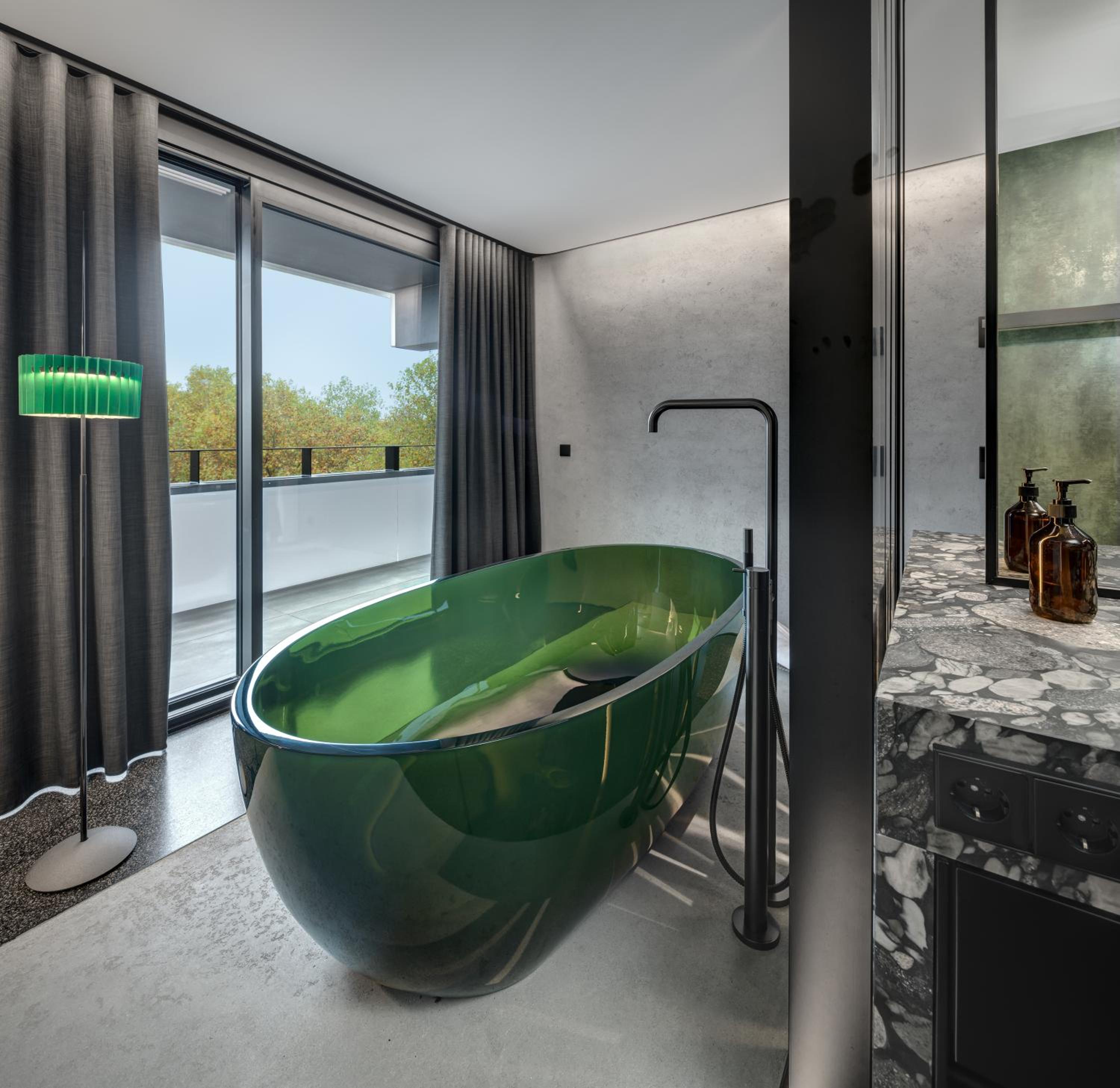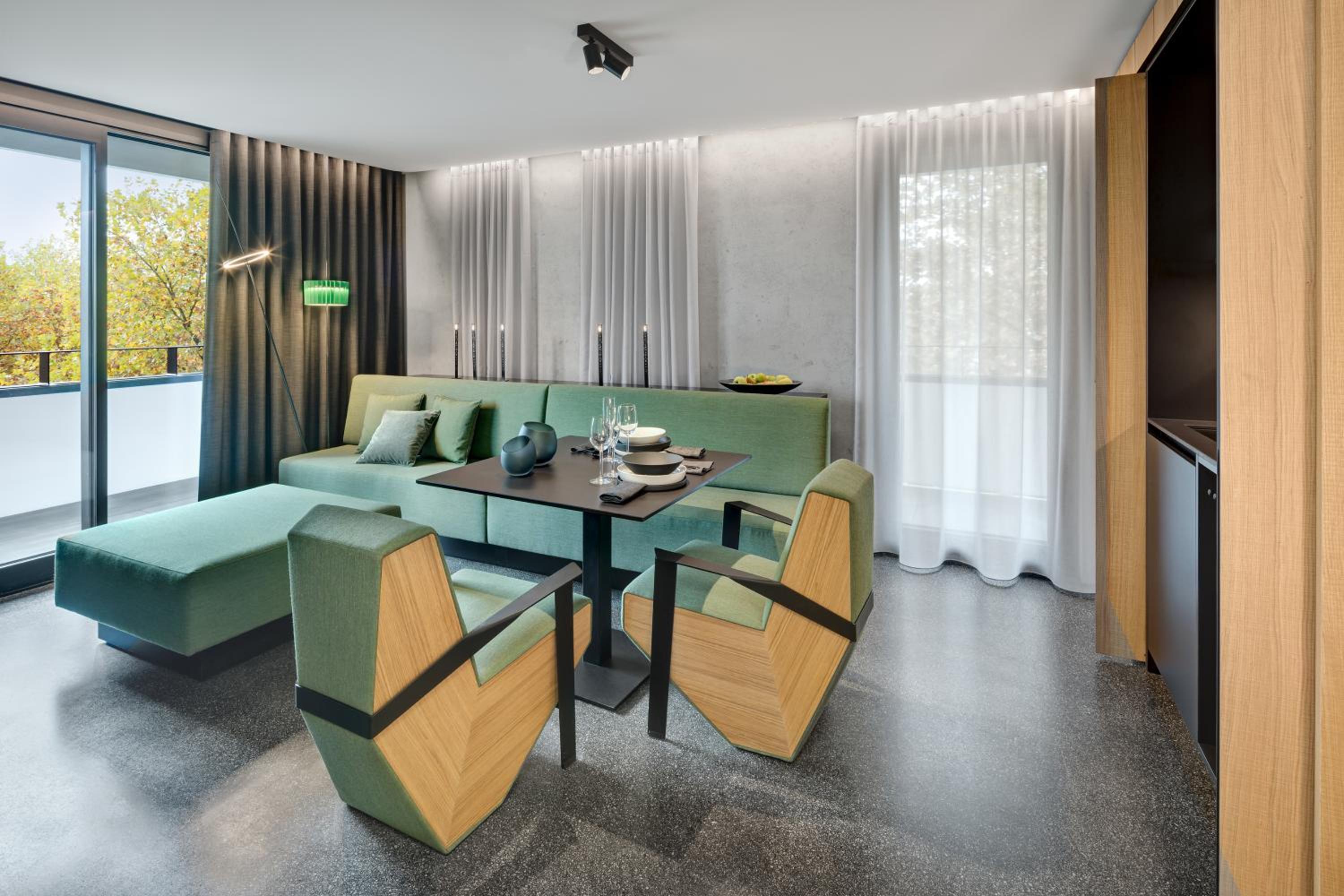 Modern and Well-Equipped: Each apartment at Das Royal features a balcony, kitchenette, and satellite TV. The modern bathrooms come with walk-in showers for added convenience.