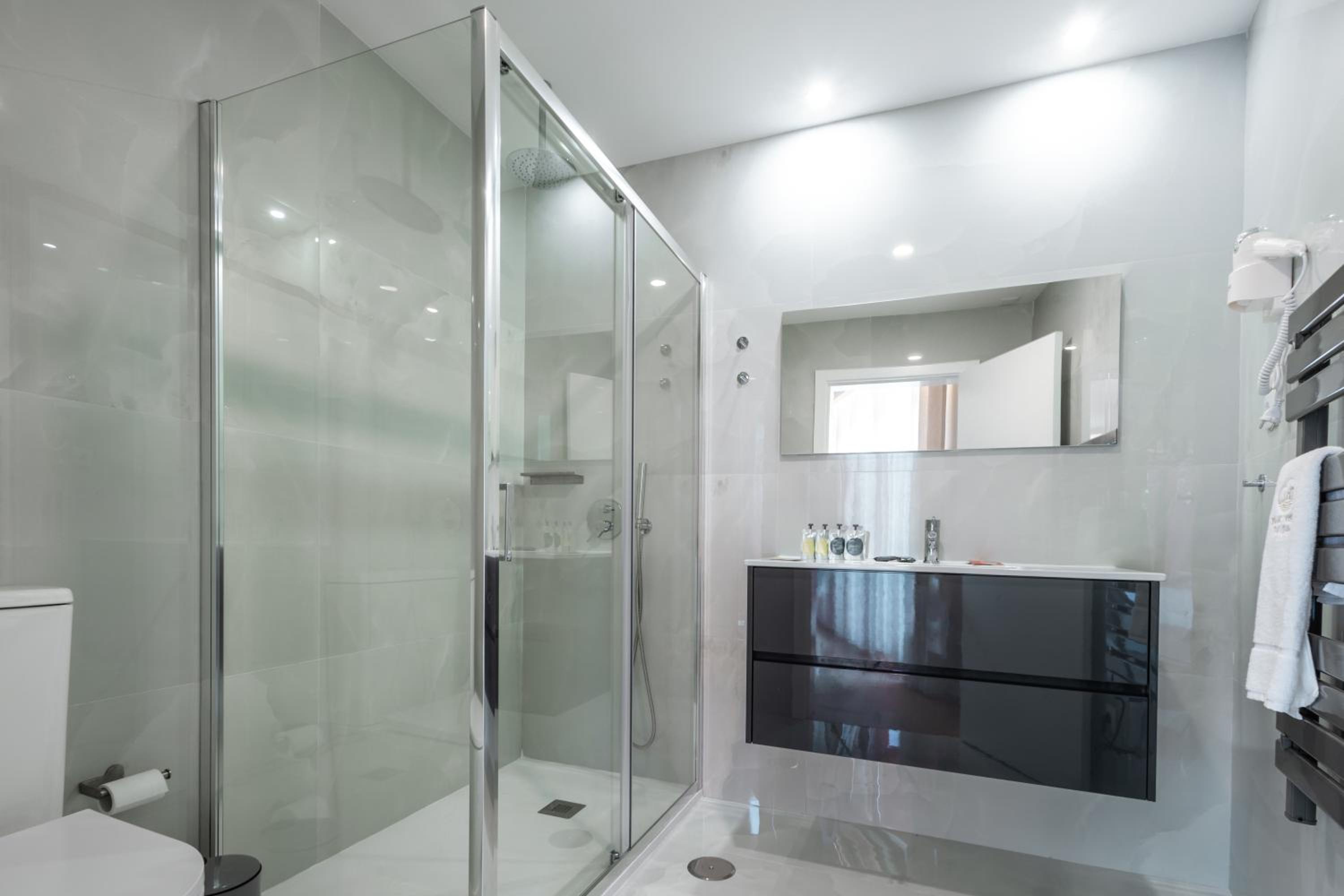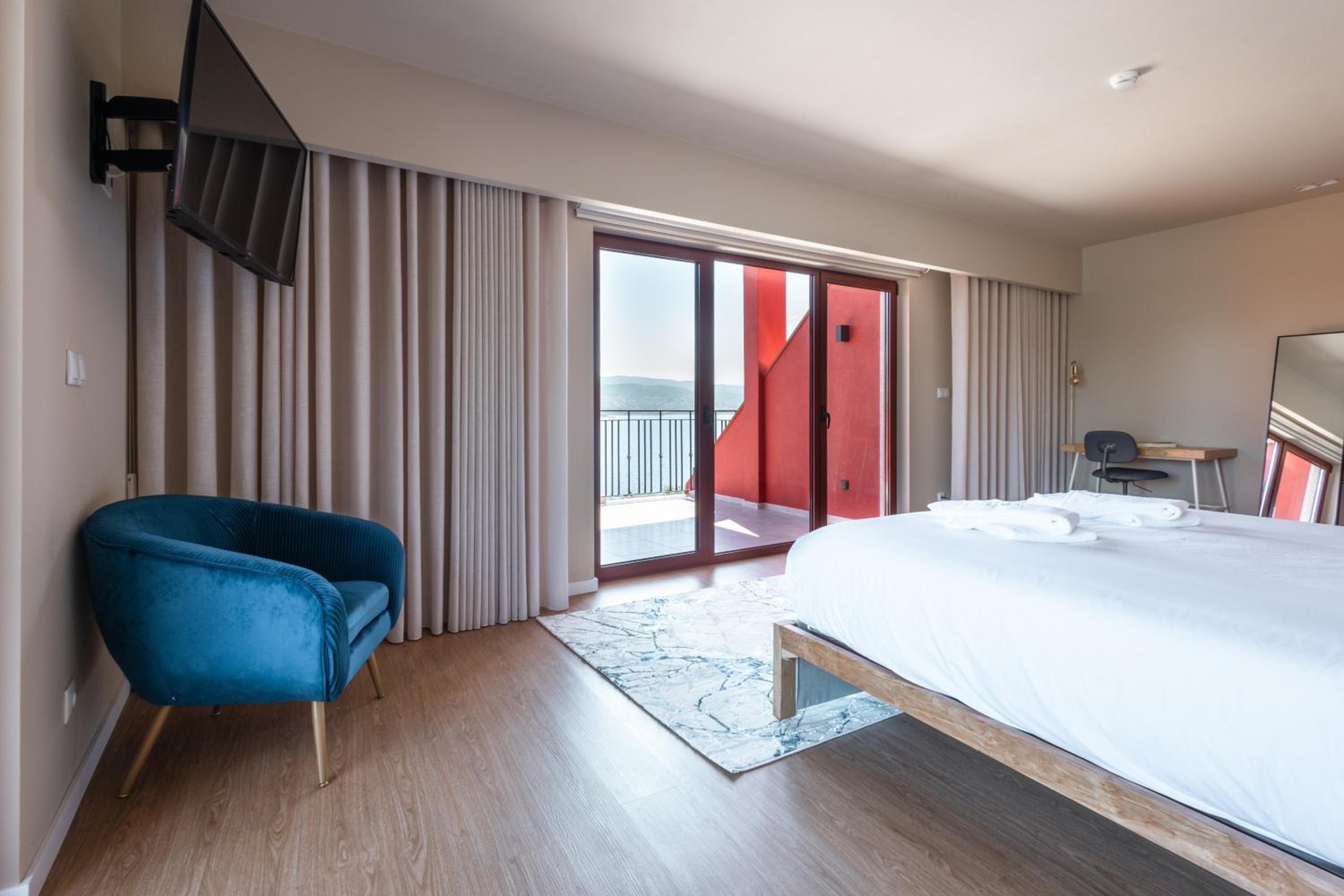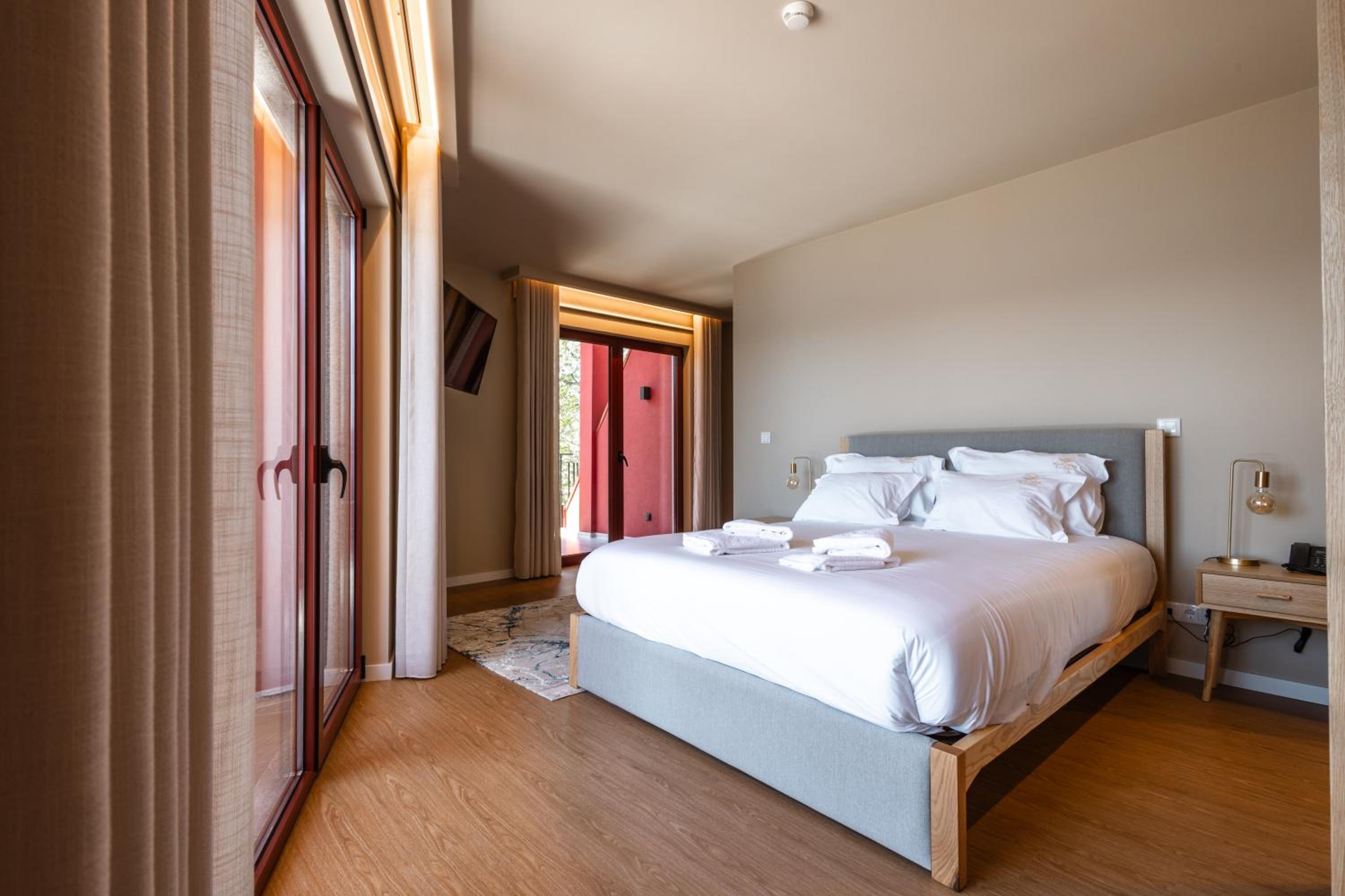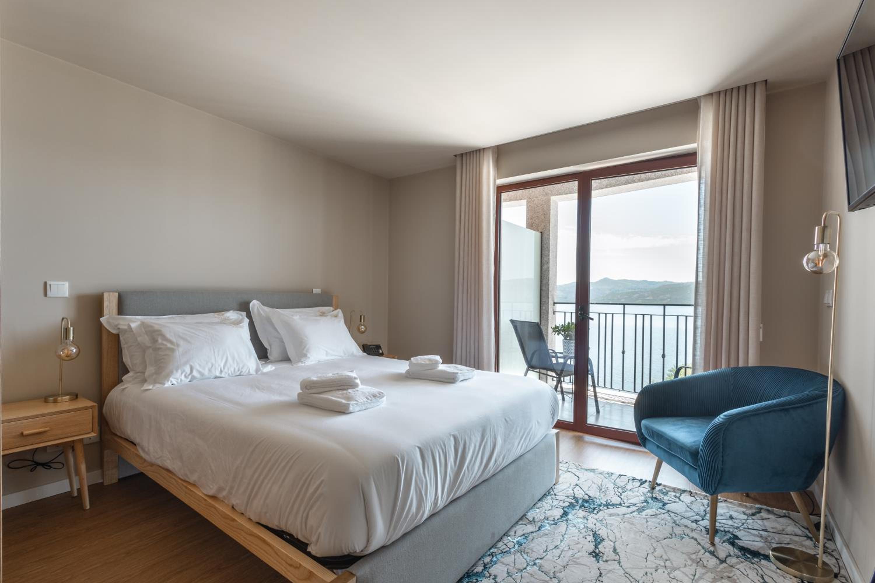 Quarto espaçoso, confortável, limpo, cama confortável, máquina de cafe no quarto temperatura ambiente, casa de banho grande e com chuveiro, varanda para um cenario de tirar o fôlego...
