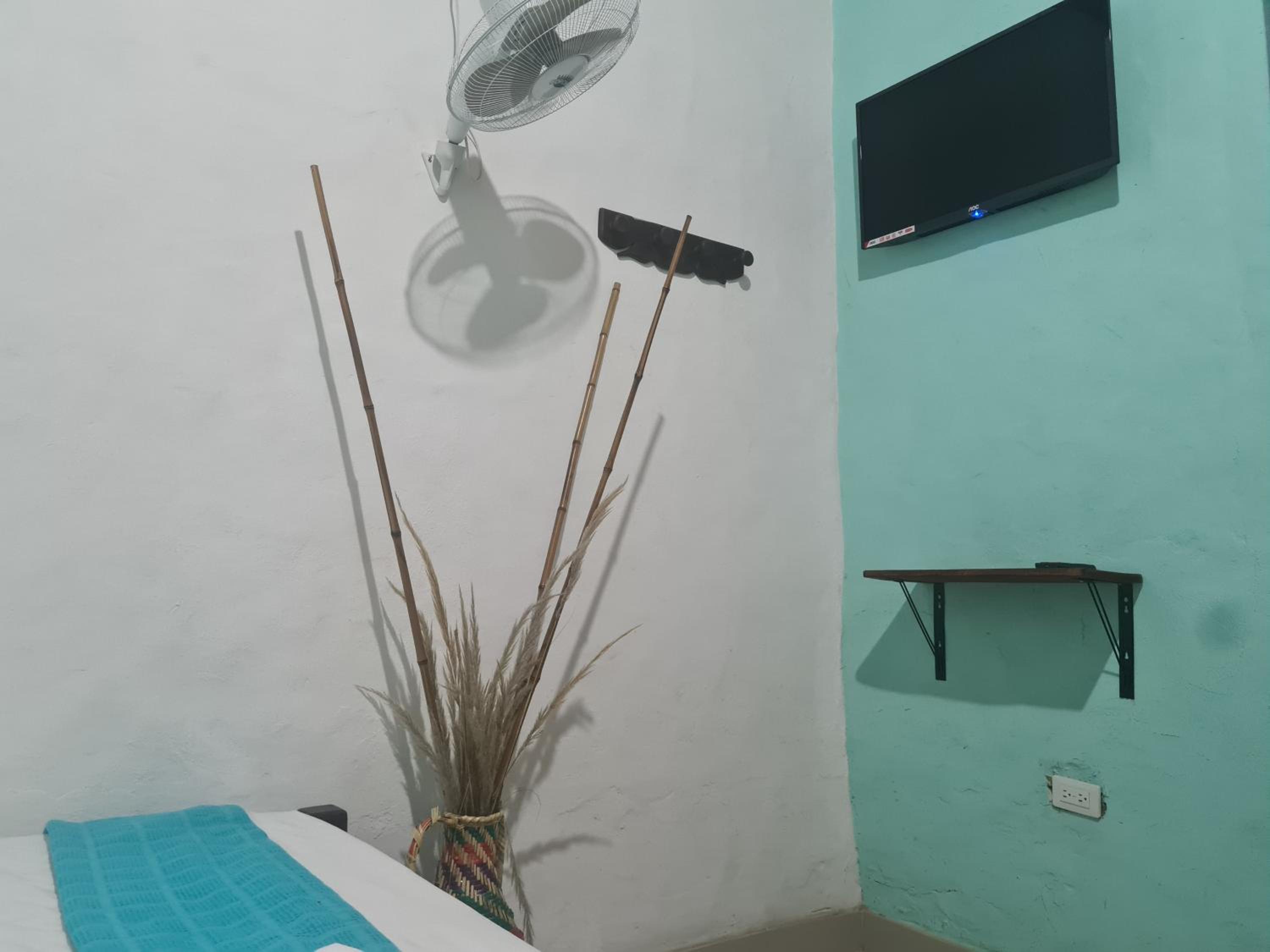 Rooms need more ventilation. The humidity get trapped into the rooms not allowing towels and other wet clothes to dry. Places to put stuff like a table or something similar would be helpful to keep the place tidy. Also a mirror outside the bathroom can help and reduce the need multiple people needing to use the bathroom at the same time.