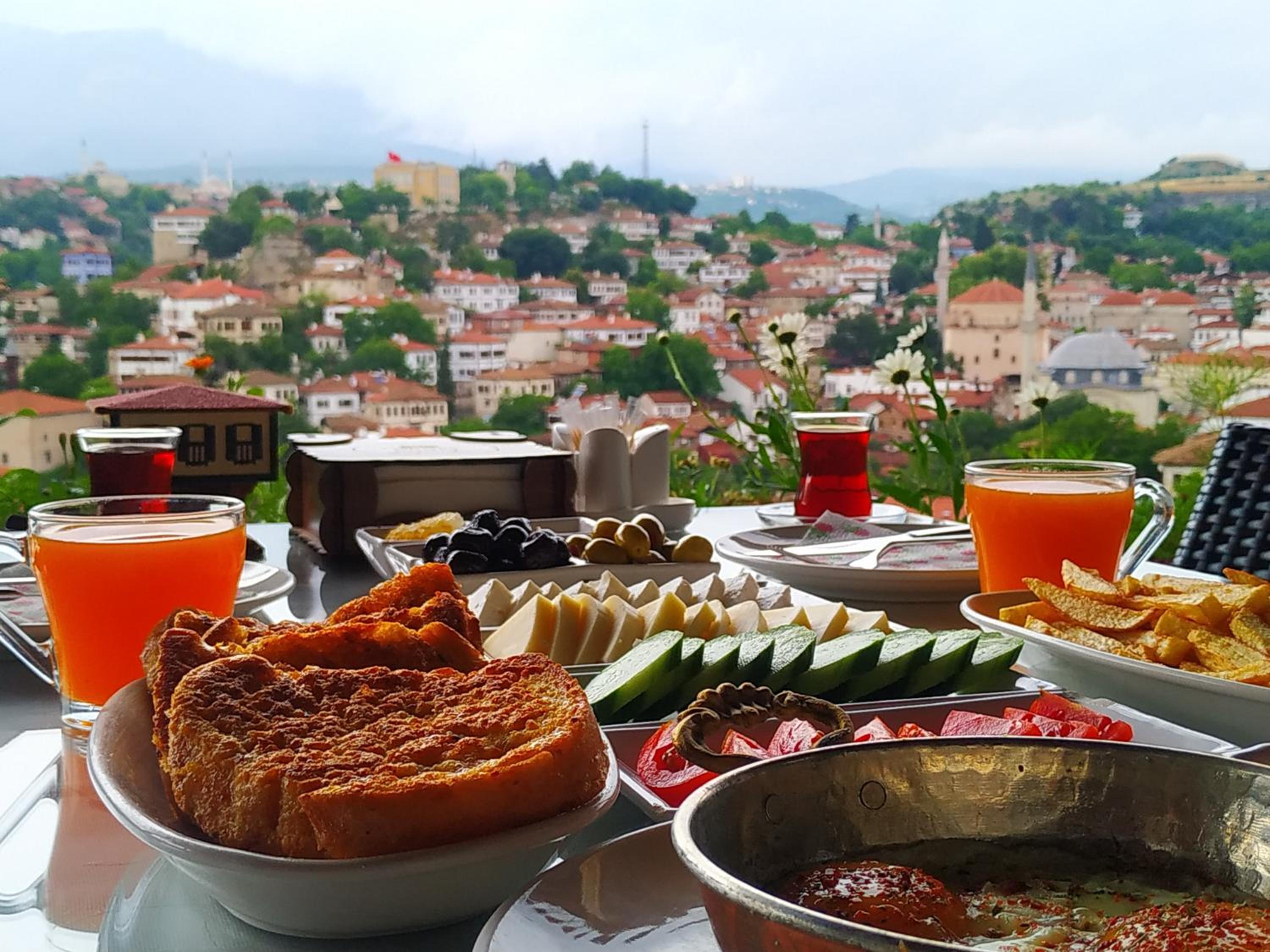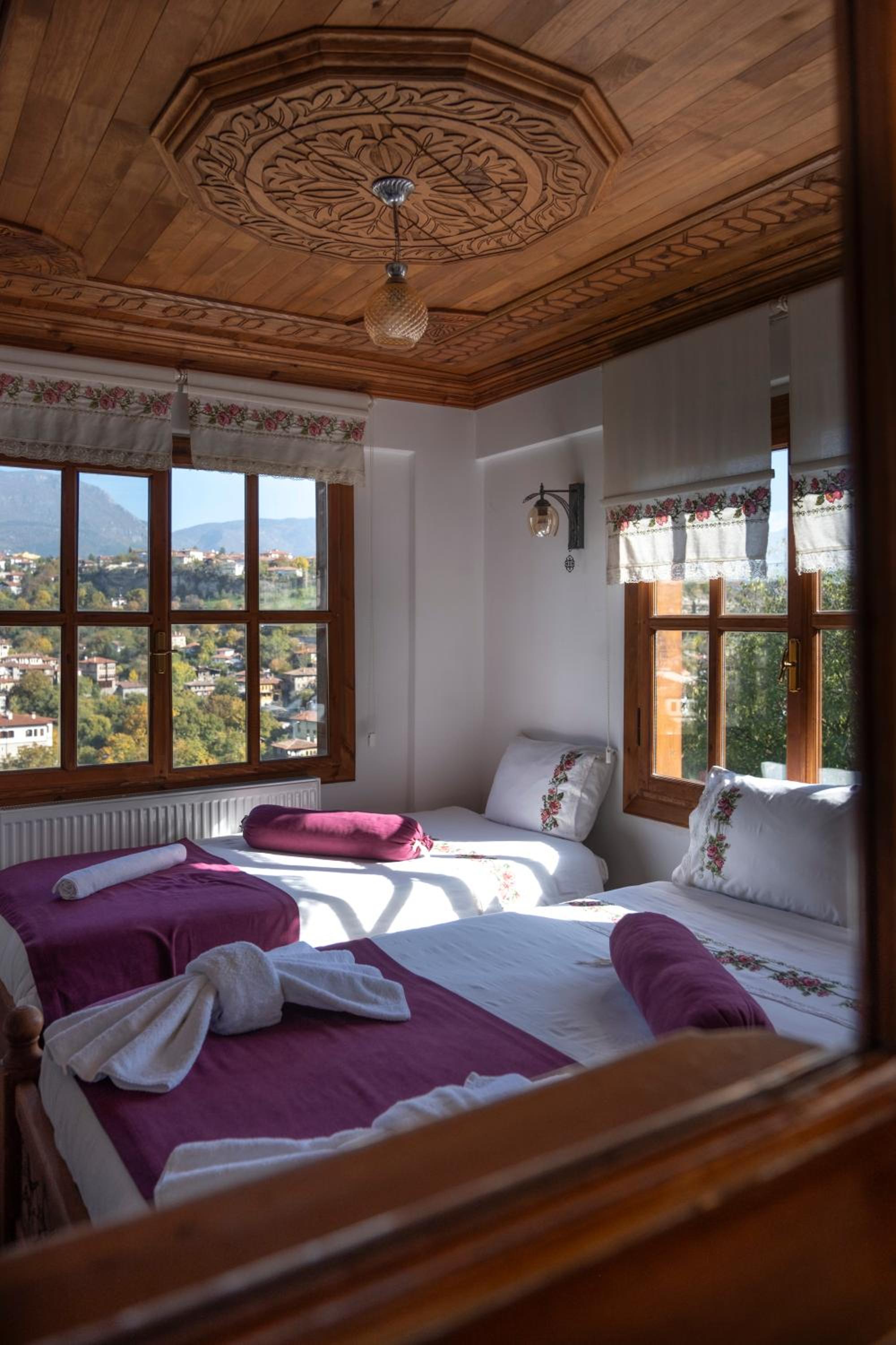 The hotel is in a beautiful wooden building with a fantastic view of Safranbolu. We felt very welcomed by the owner and staff. Our room had a deck overlooking the old centre of town and was quiet and comfortable. Excellent breakfast with friendly staff.