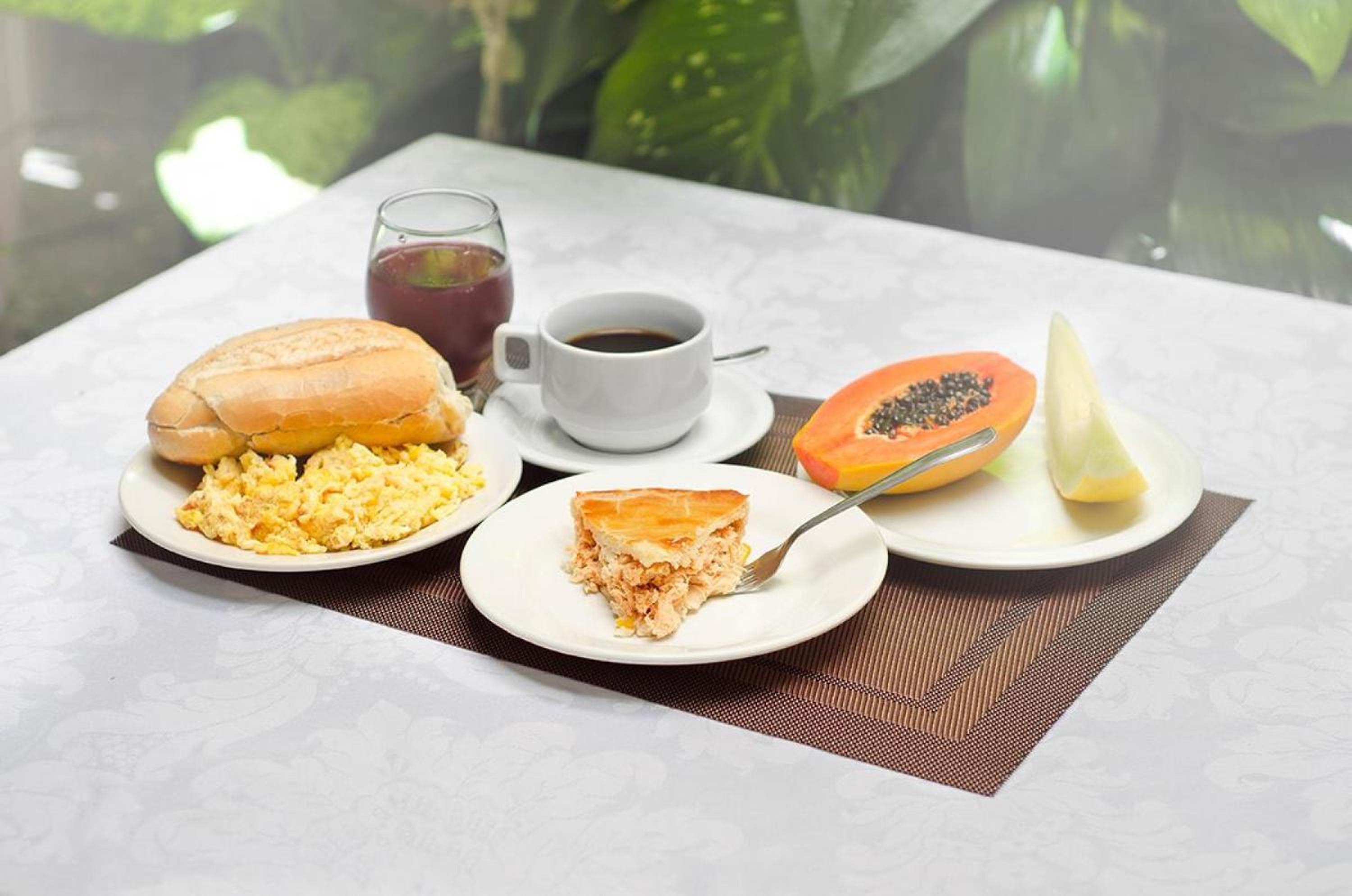 Não sei se conta minha experiência com o café da manhã, mais foi péssima. O final justifica o porque do textão. Por ter chegado tarde e cansado, fiz o check-in subi tomei banho e dormi, estava cansado dois dias viajando, acordei as as 8:30h, isso porque só iria viajar novamente as 13:30h . Descemos eu e a filha para tomar o café da manha as 09h. No refeitório, só tinha uma casal, numa mesa tomando seu café da manhã. Nossa sorte foi: Não tinha mais iogurte; tinha uma vasilha de pudim vazia. Frutas, somente banana melão e mamão. Bolos doces, pães e biscoitos maisena e creem crack. Suco de laranja. Gosto de uma ou duas fatias de abacaxi, não tinha, tudo bem, tomei leite com chocolate e café preto com pão de queijo. Não comi bolo, tinha quatro moscas voando e pousando encima dos bolos, e dos pães, não tinha miguem no salão para ver isso. Sendo assim, nao arrisquei o estomago a uma contaminação. visto que já caminhava para as 10h, tomei minha xicara de café, chamei minha filha e fomos procurar uma padaria para tomar café. Noa reclamei. Tinha pago sonete 70.00 pelo cafe da manhã meu e da minha filha. Foi isso.