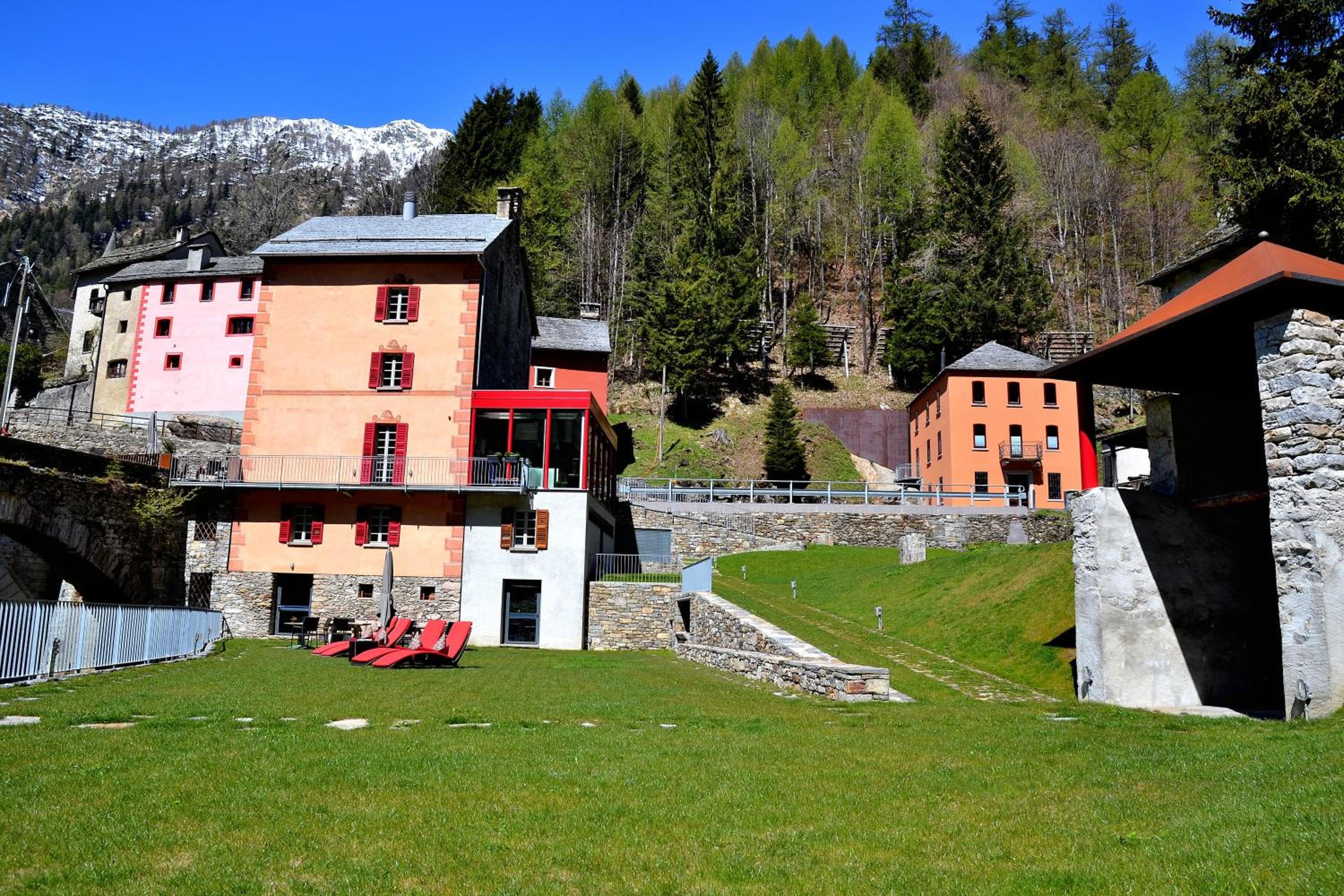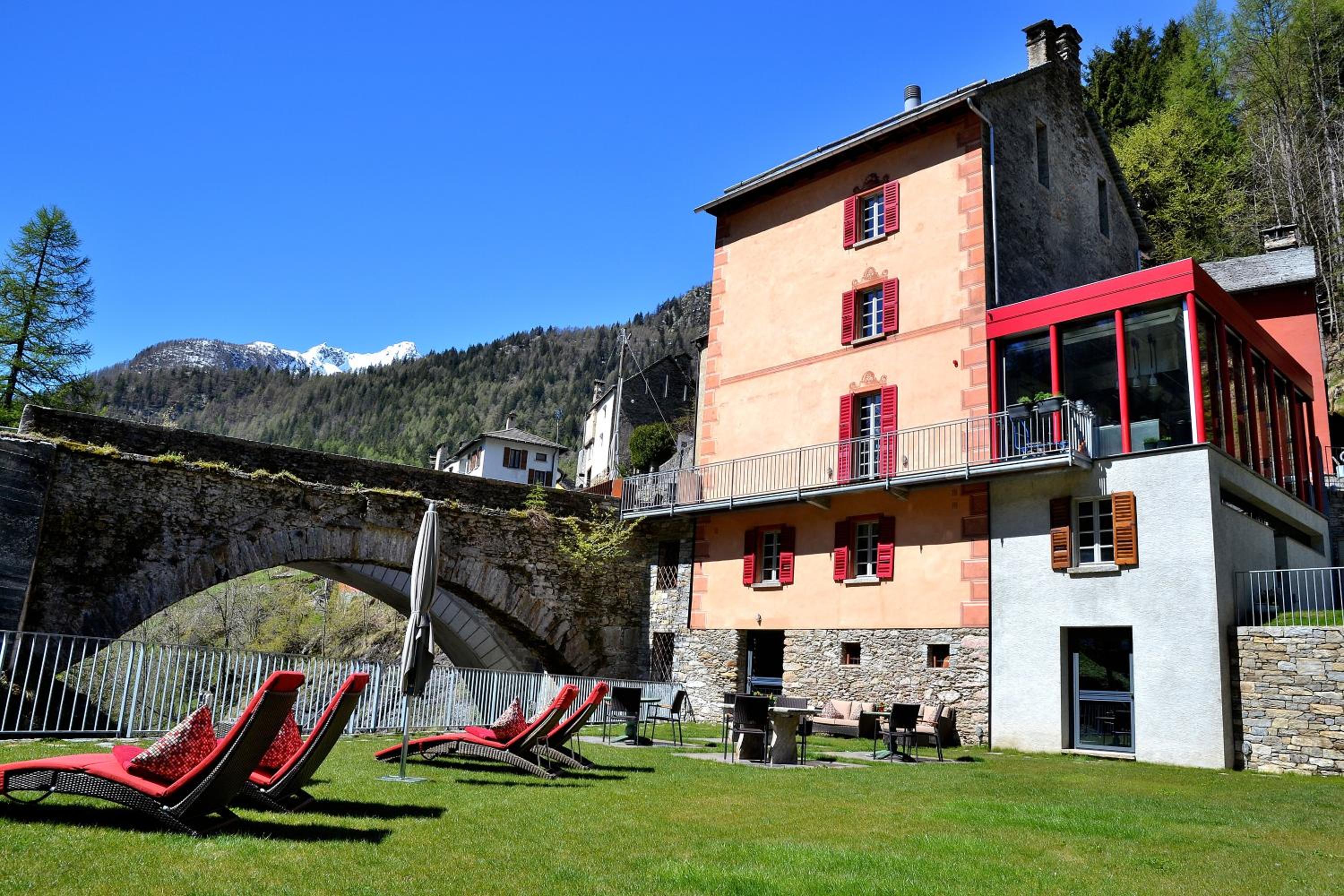 Das hotel liegt mitten in fusio mit zugang zum fluss-badebecken und liegewiese. Die zimmer sind liebevoll und geschmackvoll eingerichtet, die italienische musik ist himmlich, das essen auch. Einfach ein traum!