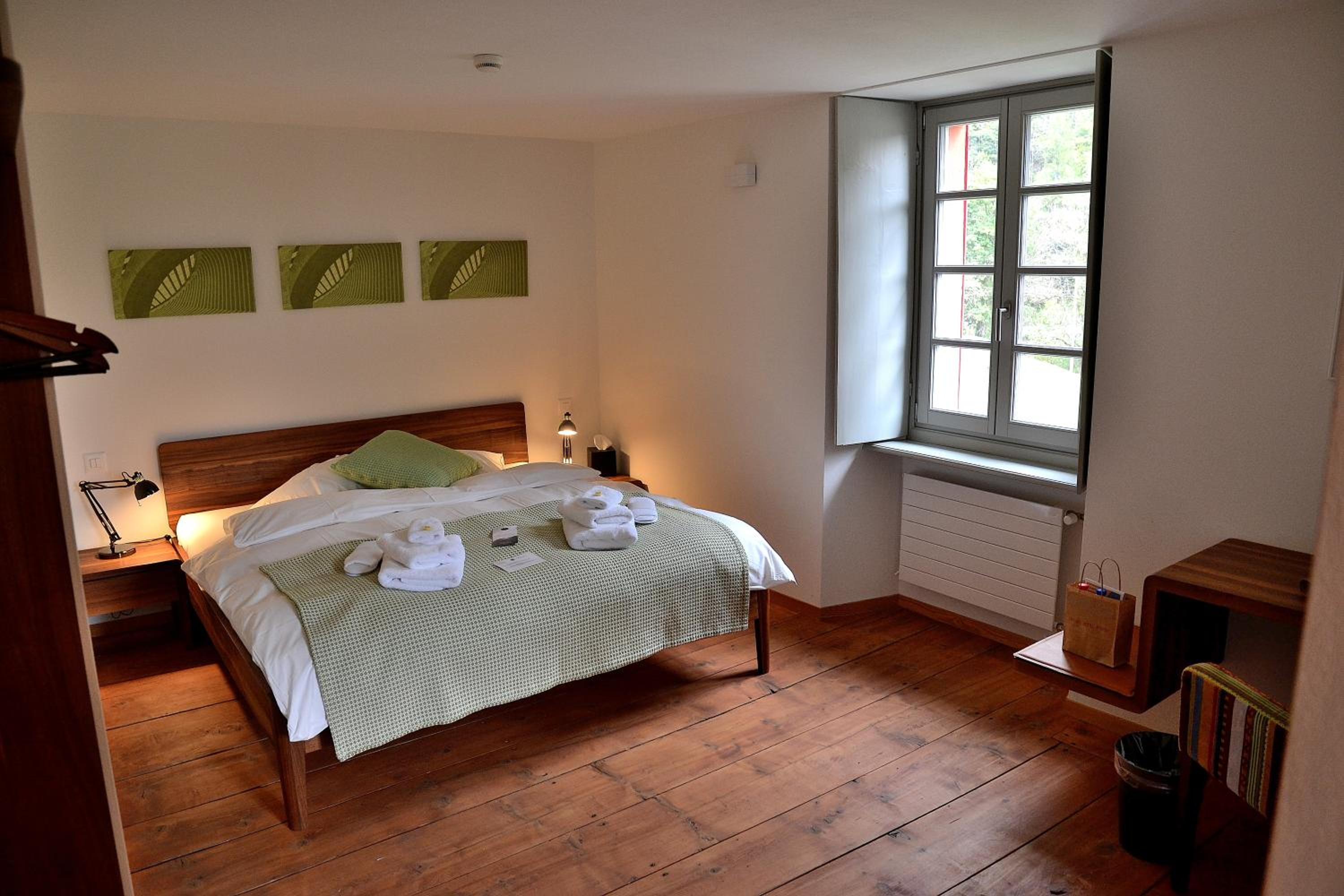 L'hôtel est juste à côté de l'arrêt de car postal, au cœur d'un charmant village. Le personnel était très disponible. Nous avons profité des vélos électriques gratuits, et des sandwichs préparés sur demande au petit-déjeuner (payants), pratique vu qu'il n'y a pas de commerce dans le village.