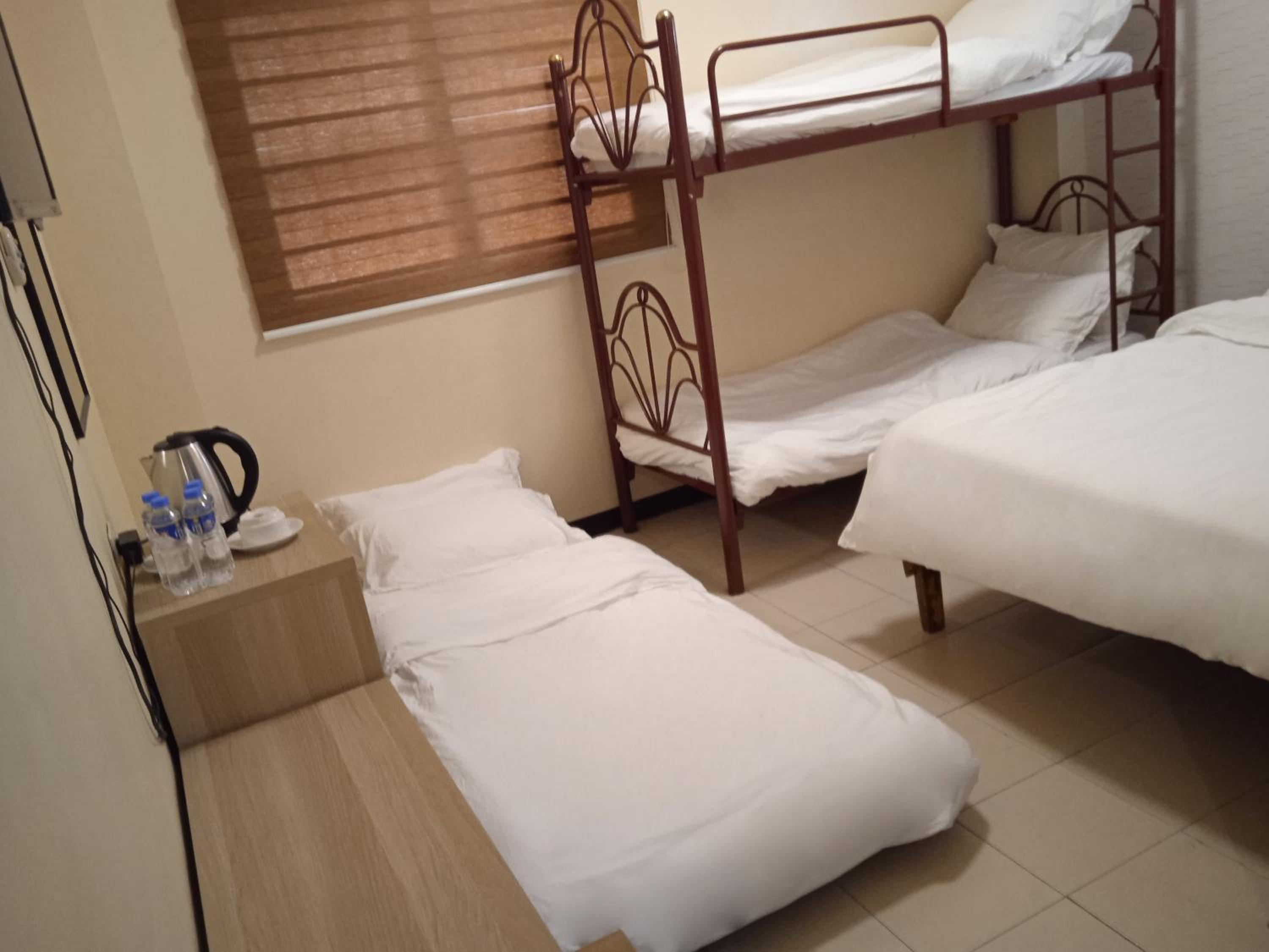 there were mosquitoes, but the hotel had put a mesh to prevent access even if you opt to open windows. I'd suggest bringing mosquito mats from manila as maybe hard to get within walking distance of the hotel. There's no elevator, so the two short flights of stairs can be harder for older folk. If you want a hotel with a great view, this isn't it, but it's super well located making hailing cabs and jeepneys easy. TV had netflix, but wasn't signed in - we used our own account. Electric kettle in one room has been abused by guests so has a very faint pancit smell. We booked two so used the good kettle.