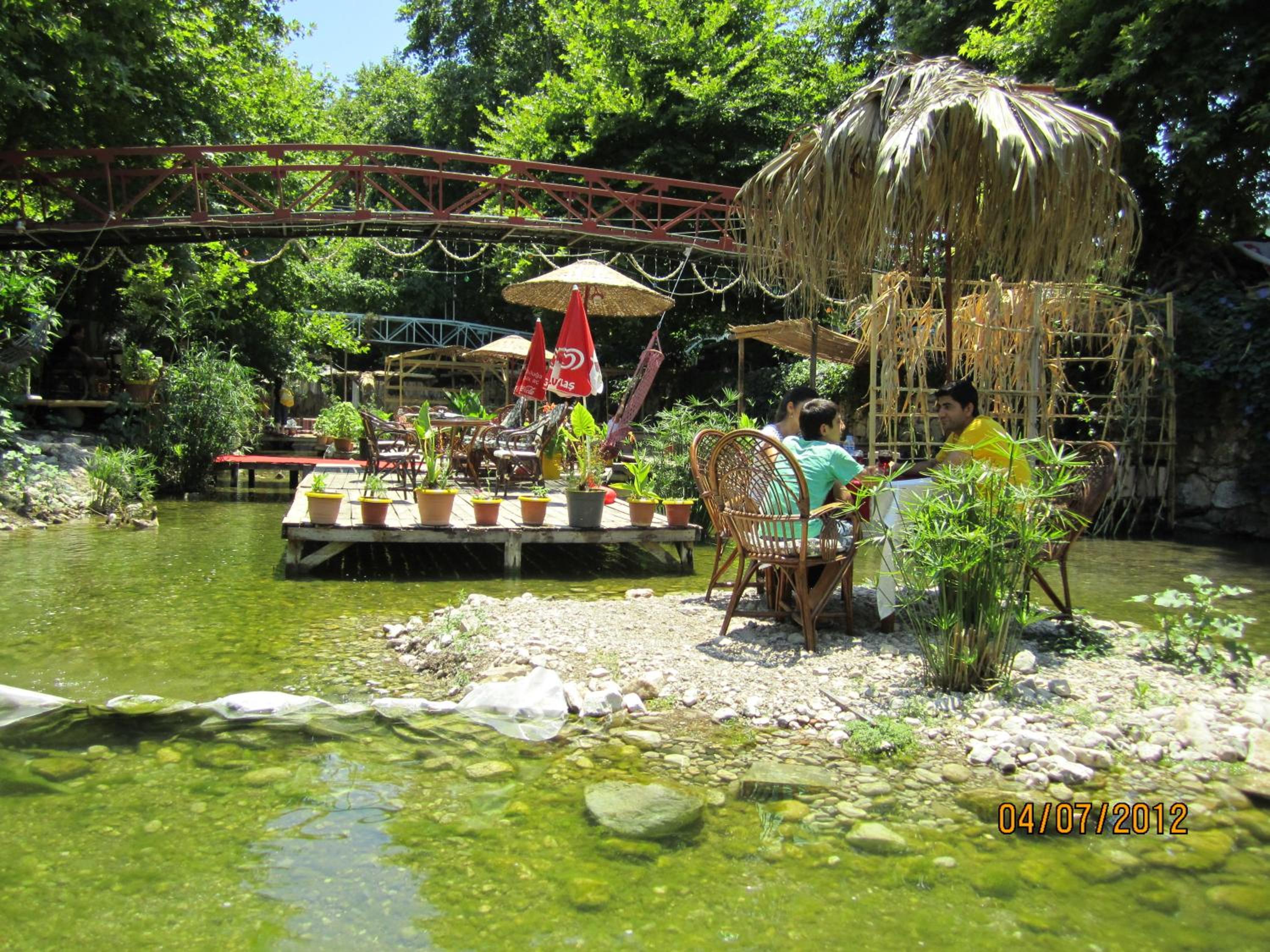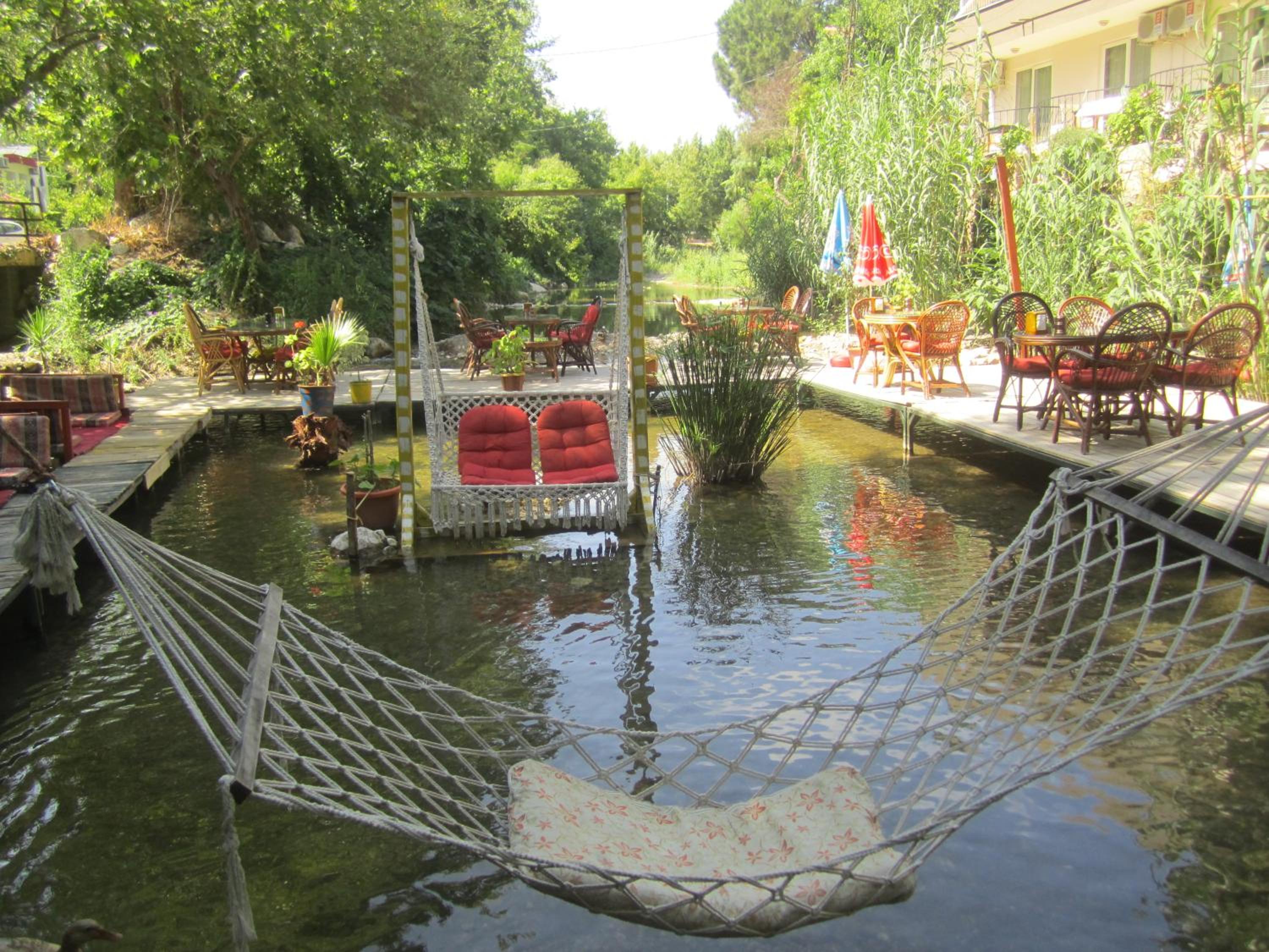 Beautiful setting by a river, amazing friendly staff, fantastic food. We were made to feel like family. Mostly Turkish people on holiday. Absolutely loved it