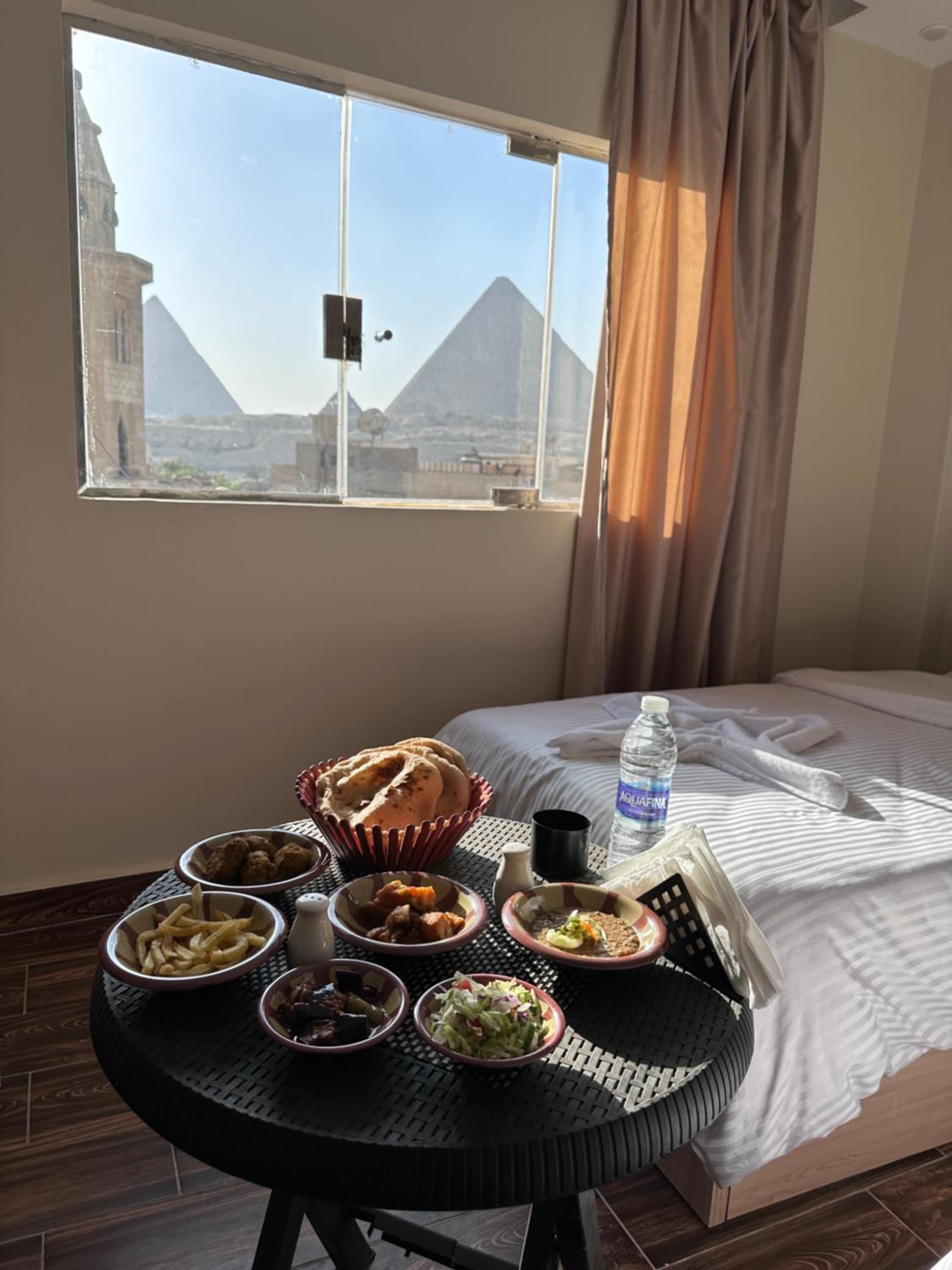 The view is incredible the food is good also the staff is very friendly and polite and help me to visit the pyramids and have a tour in egypt