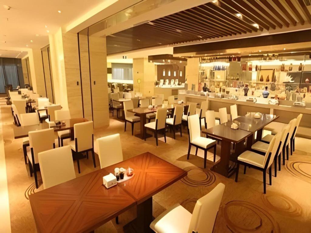 On-Site Amenities: Enjoy the restaurant, bar, and free shuttle service at Wuhan Soluxe Hotel.