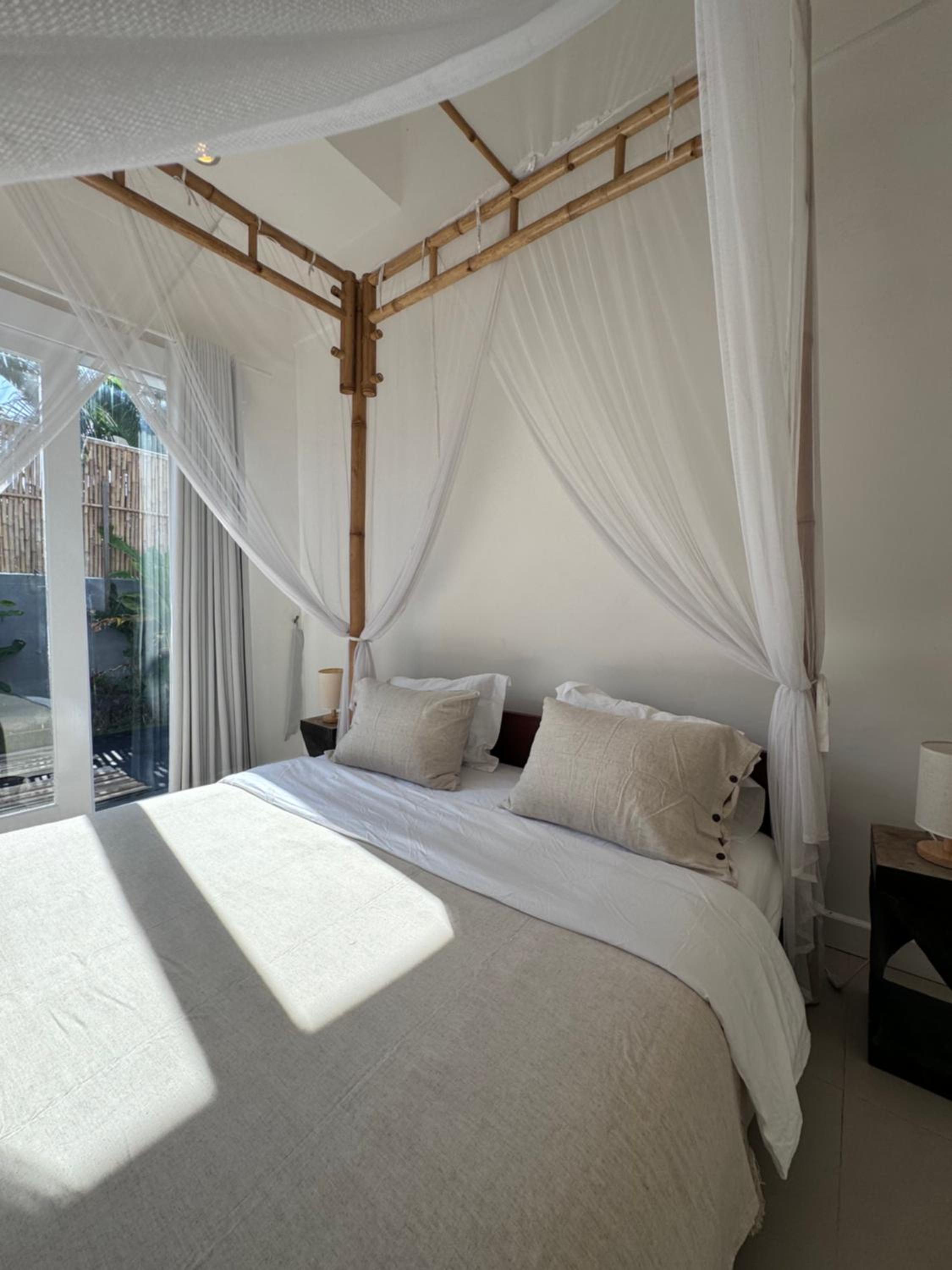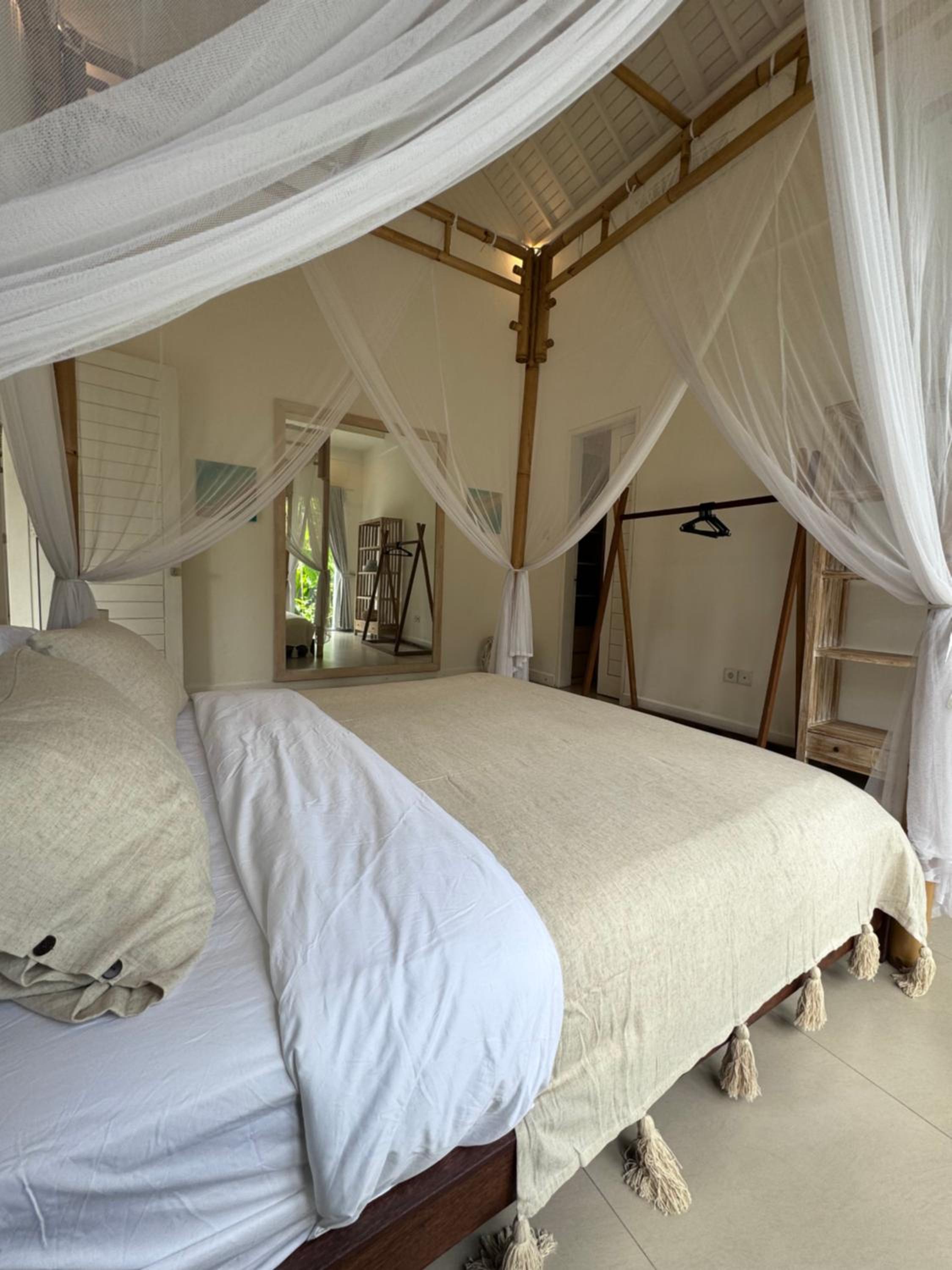 The place is very well located, on a quiet street just off one of the main roads in Canggu, where you can find plenty of restaurants, cafés, supermarkets, massage places and everything you might need within a short walk. It’s a very convenient base to explore the area while still being able to enjoy some calm.
