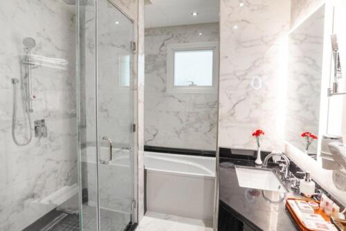 Indulge in international cuisine at Monde Restaurant or unwind at Jasmine Tea Lounge with a wide selection of teas. Enjoy 24/7 room service for ultimate convenience.