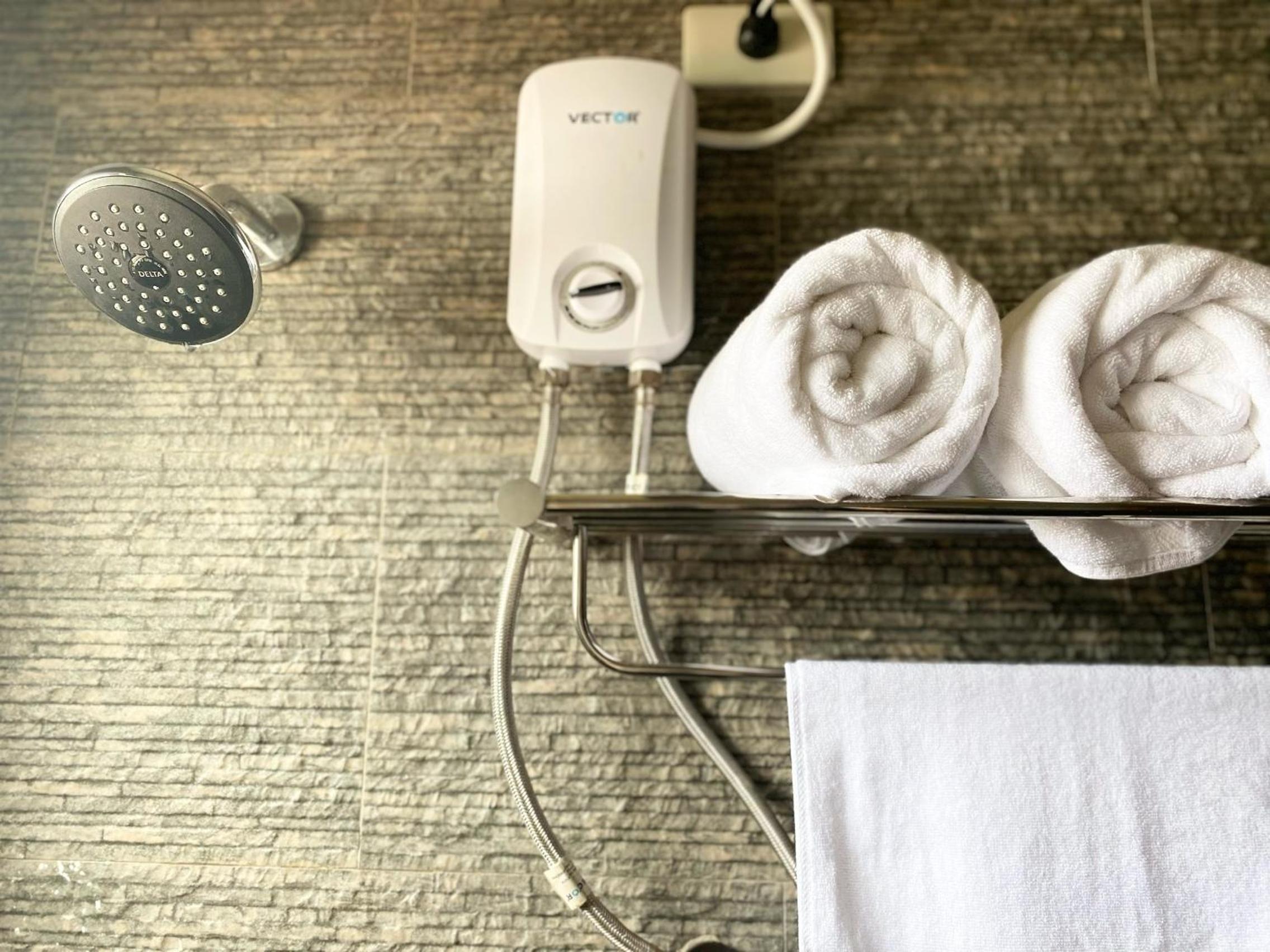 Rooms are extremely small with no windows, small shower is located awkwardly located above the toilet making everything wet. No place to put our belongings in the room.