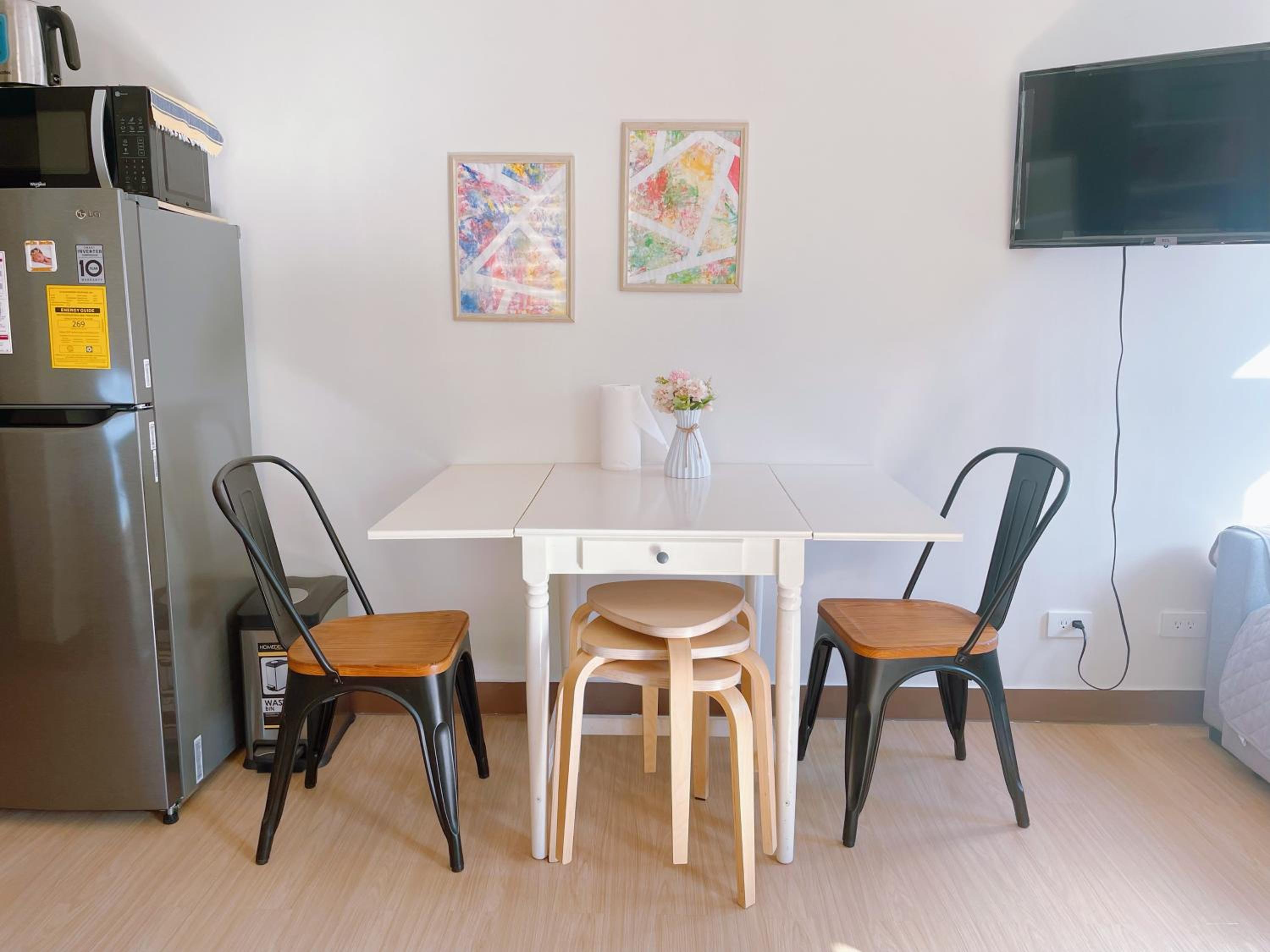The location is very ideal, it's nearby SM and public market. The host is very accommodating. The unit has stable internet connection and complete with kitchen appliances.