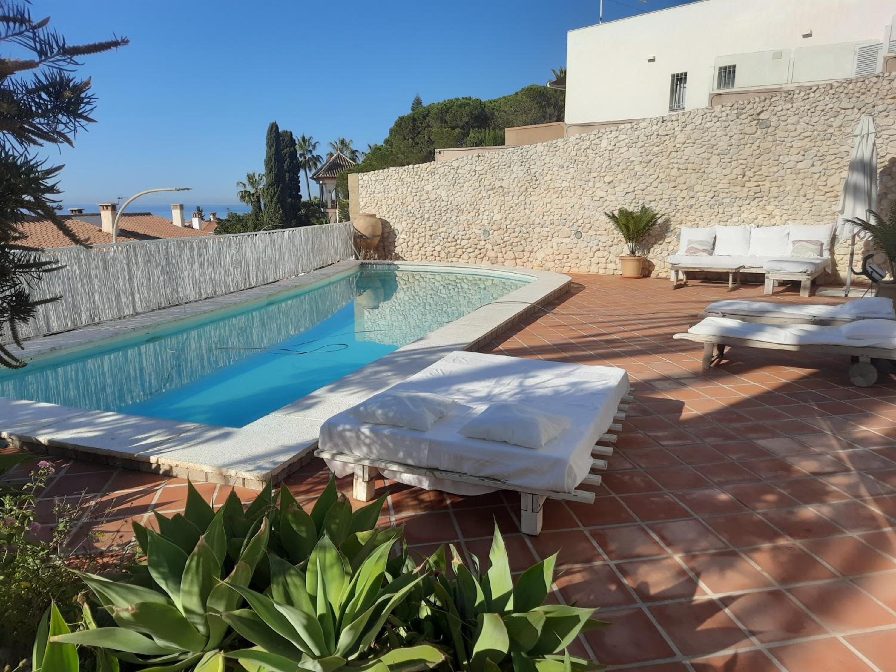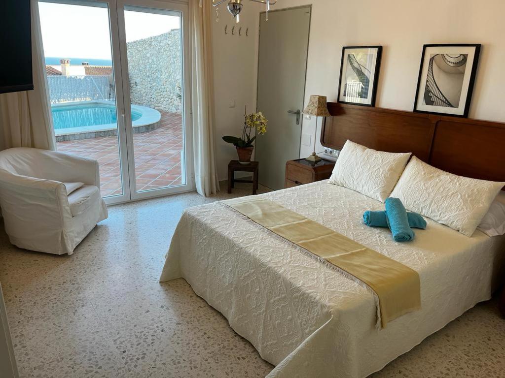 Stunning Seafront Views: Enjoy breathtaking sea and pool views from the comfort of your room at Habitaciones en CASA MIGUEL.