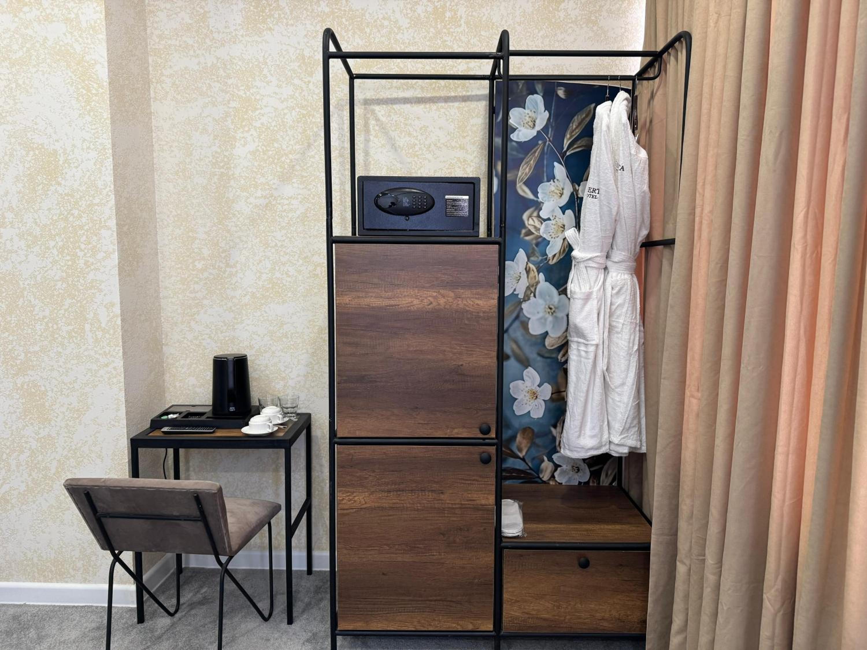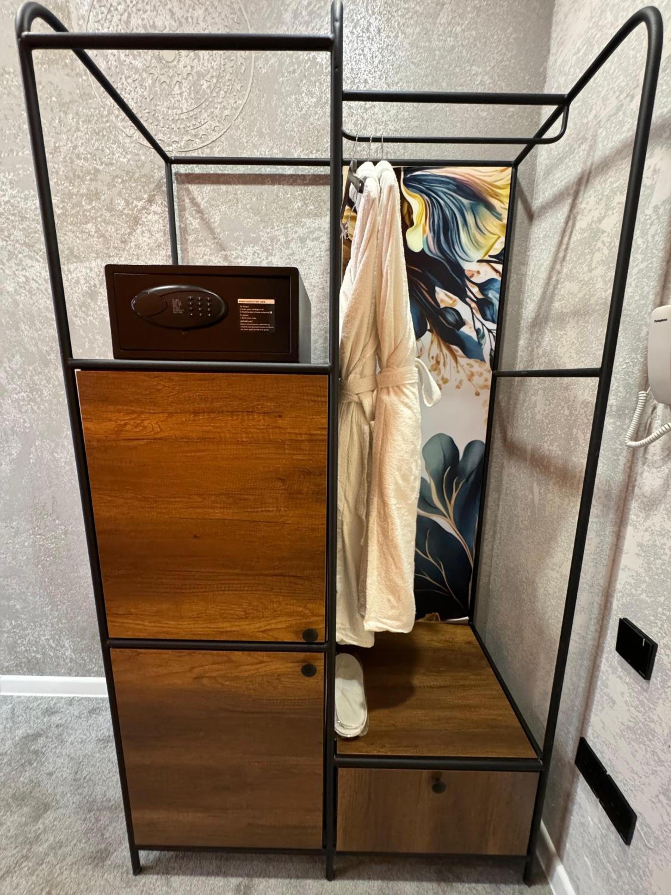 The room was ok in general but lacked a proper wardrobe.