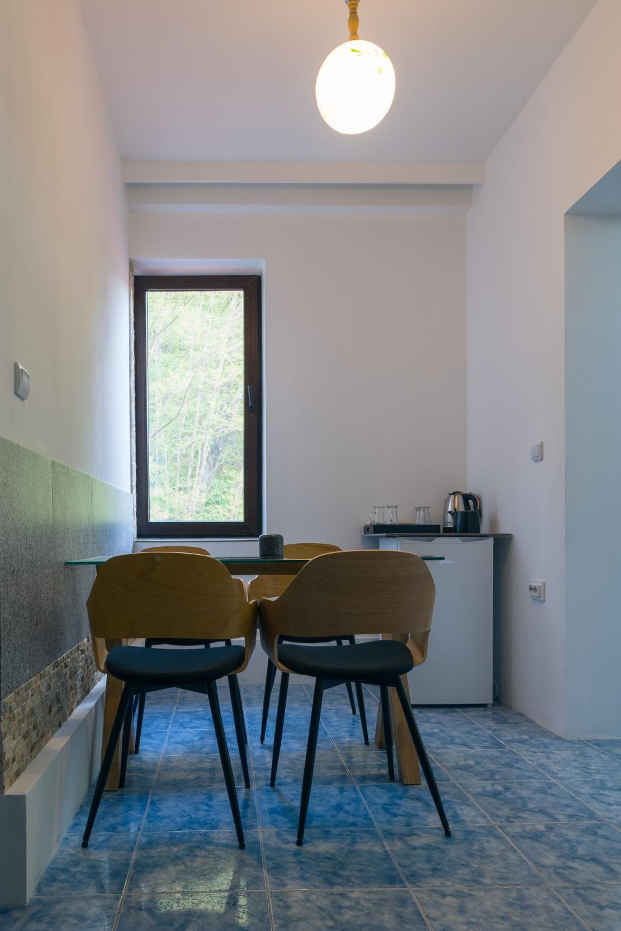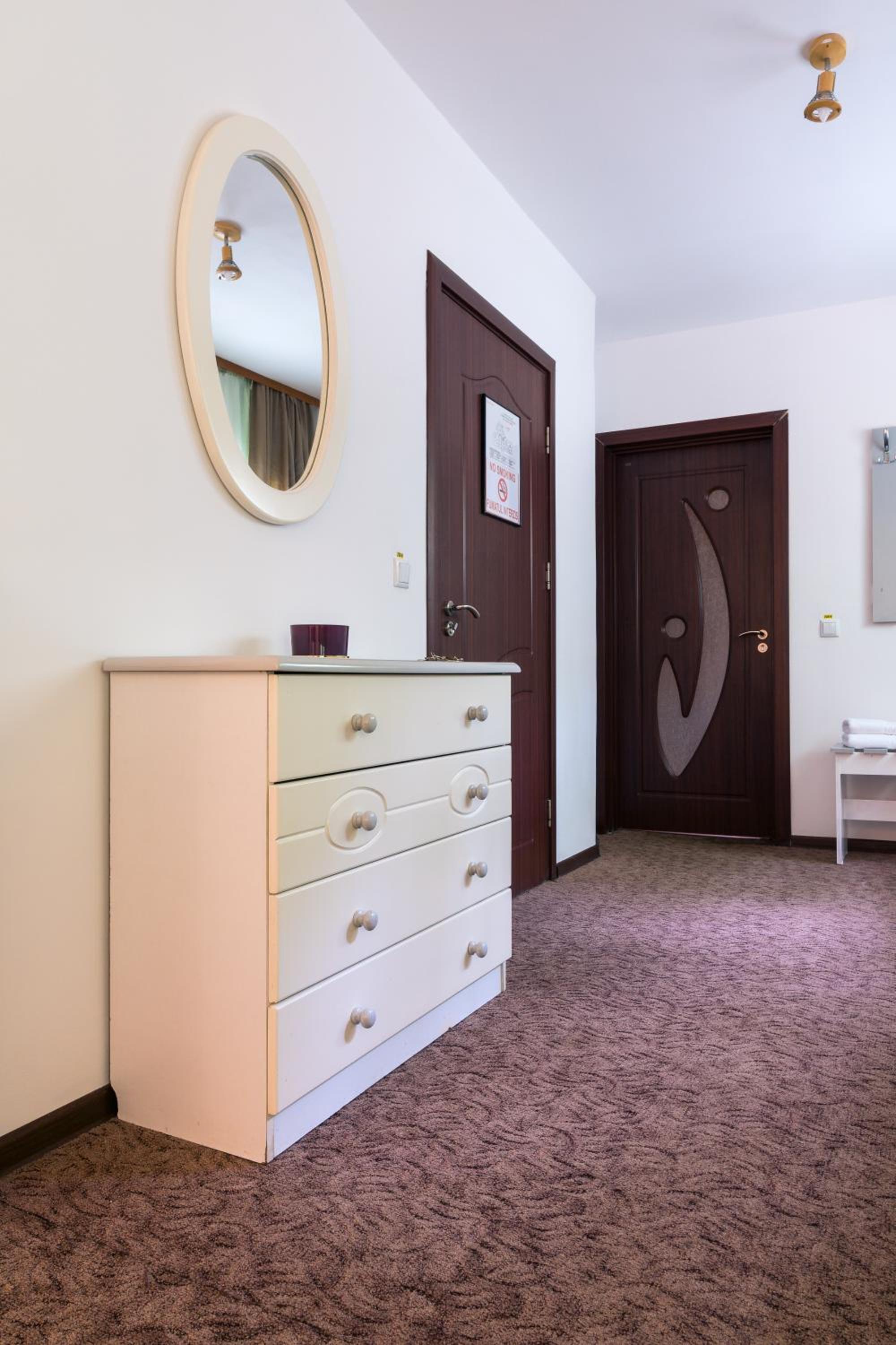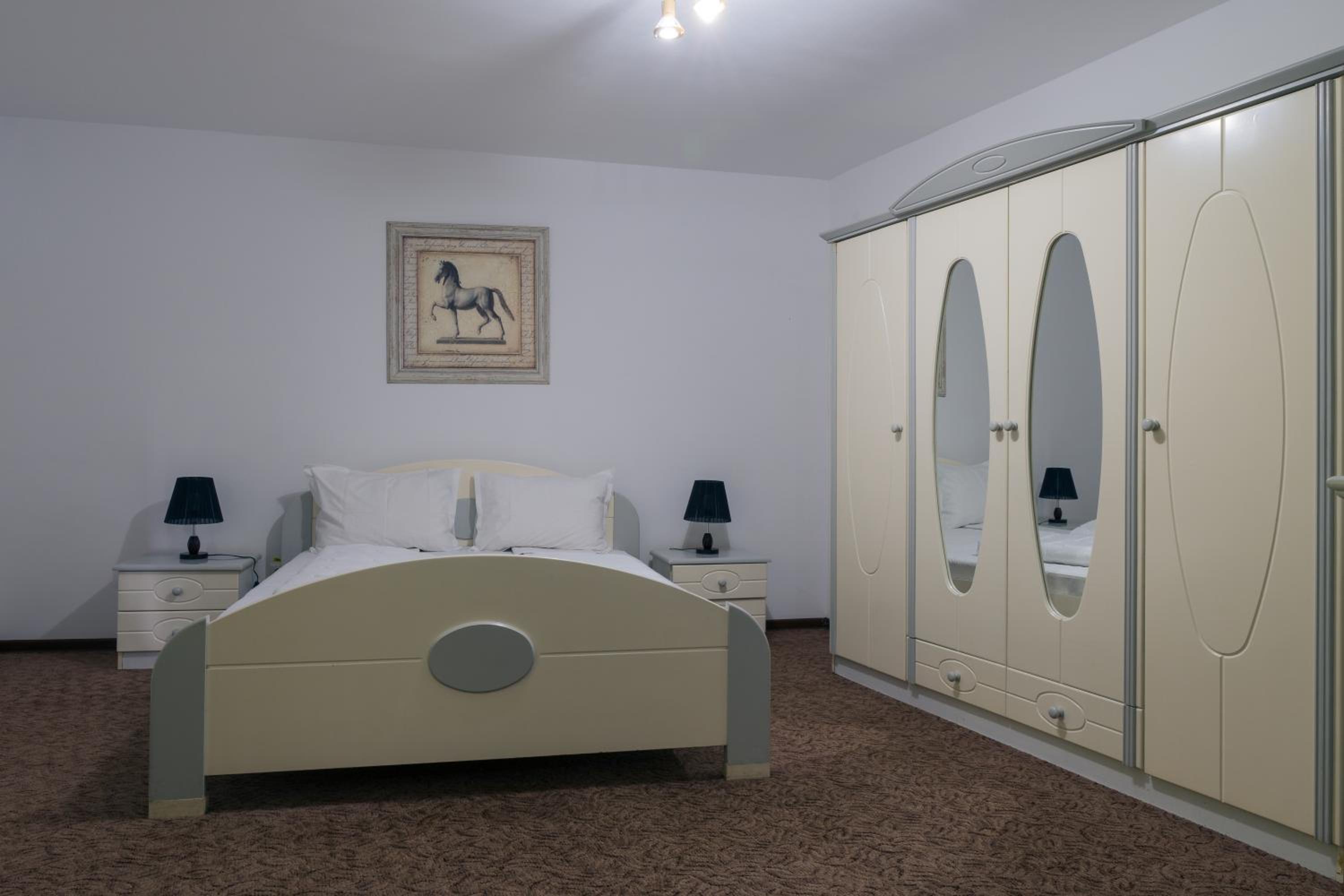 Camere mari, spatioase, mobilier din lemn masiv superb, saltele moi foarte comode, zona de luat masa eleganta cu frigider, ceainic si fierbator de apa.