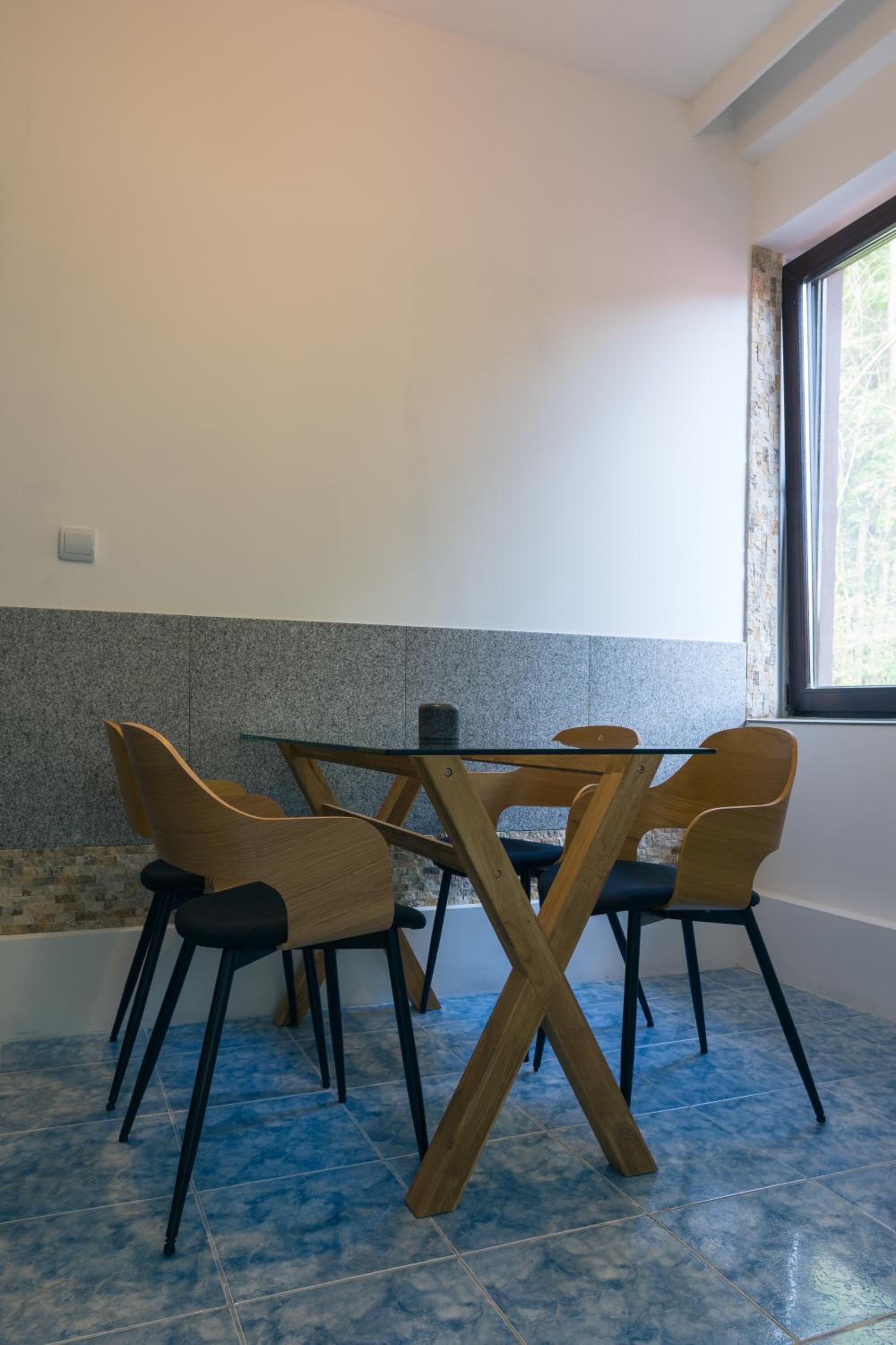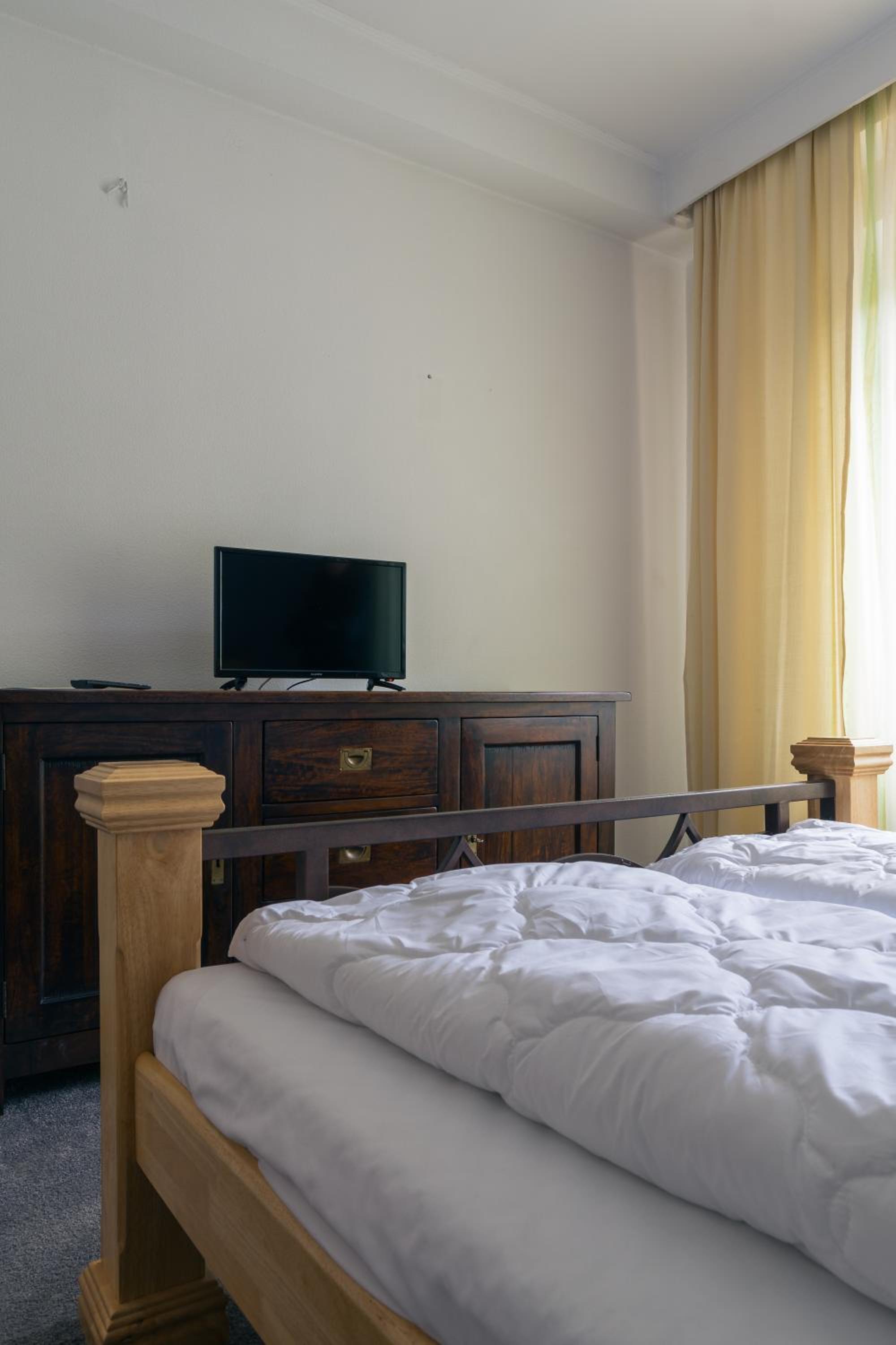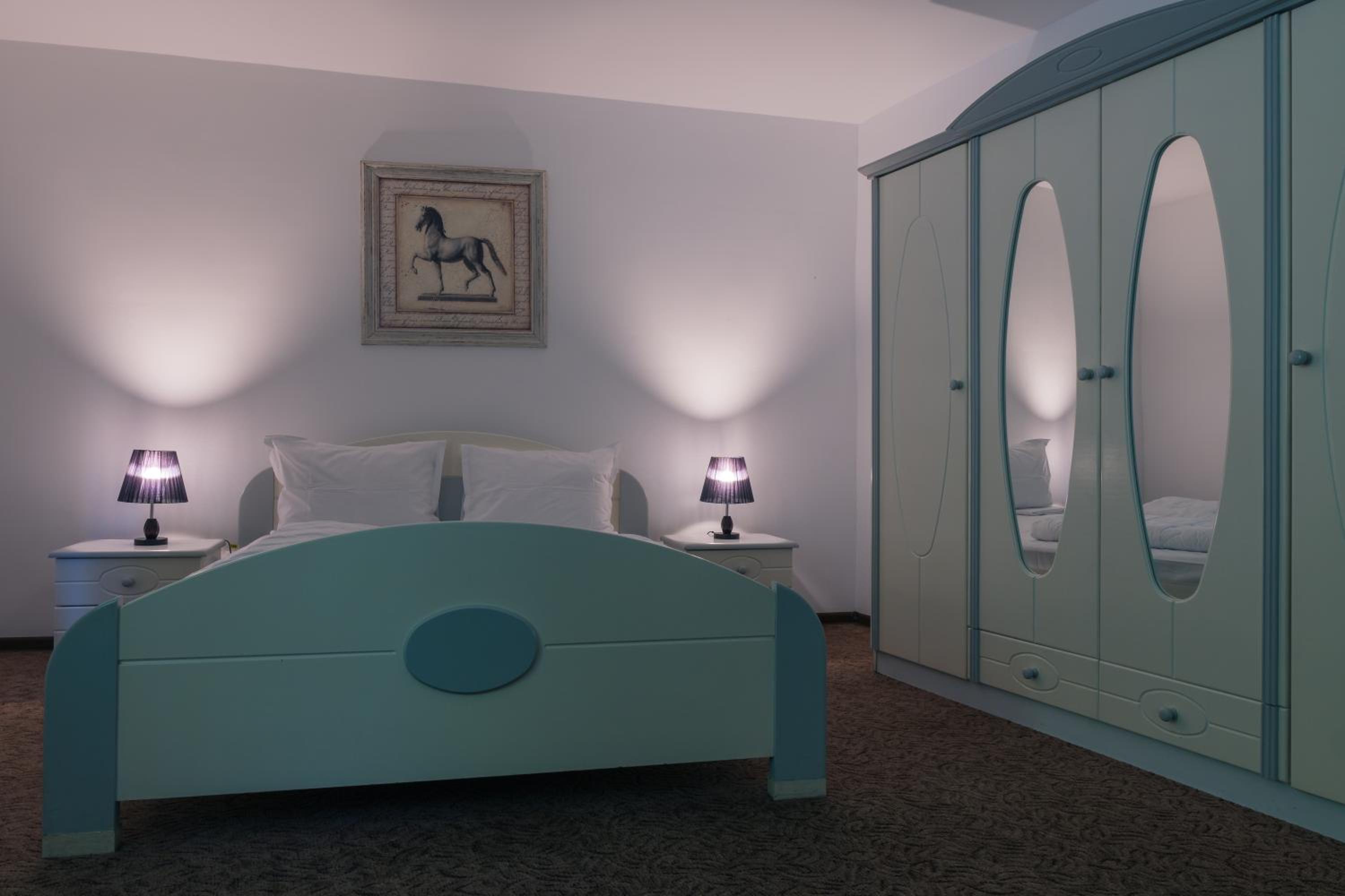 Camere mari, spatioase, mobilier din lemn masiv superb, saltele moi foarte comode, zona de luat masa eleganta cu frigider, ceainic si fierbator de apa.