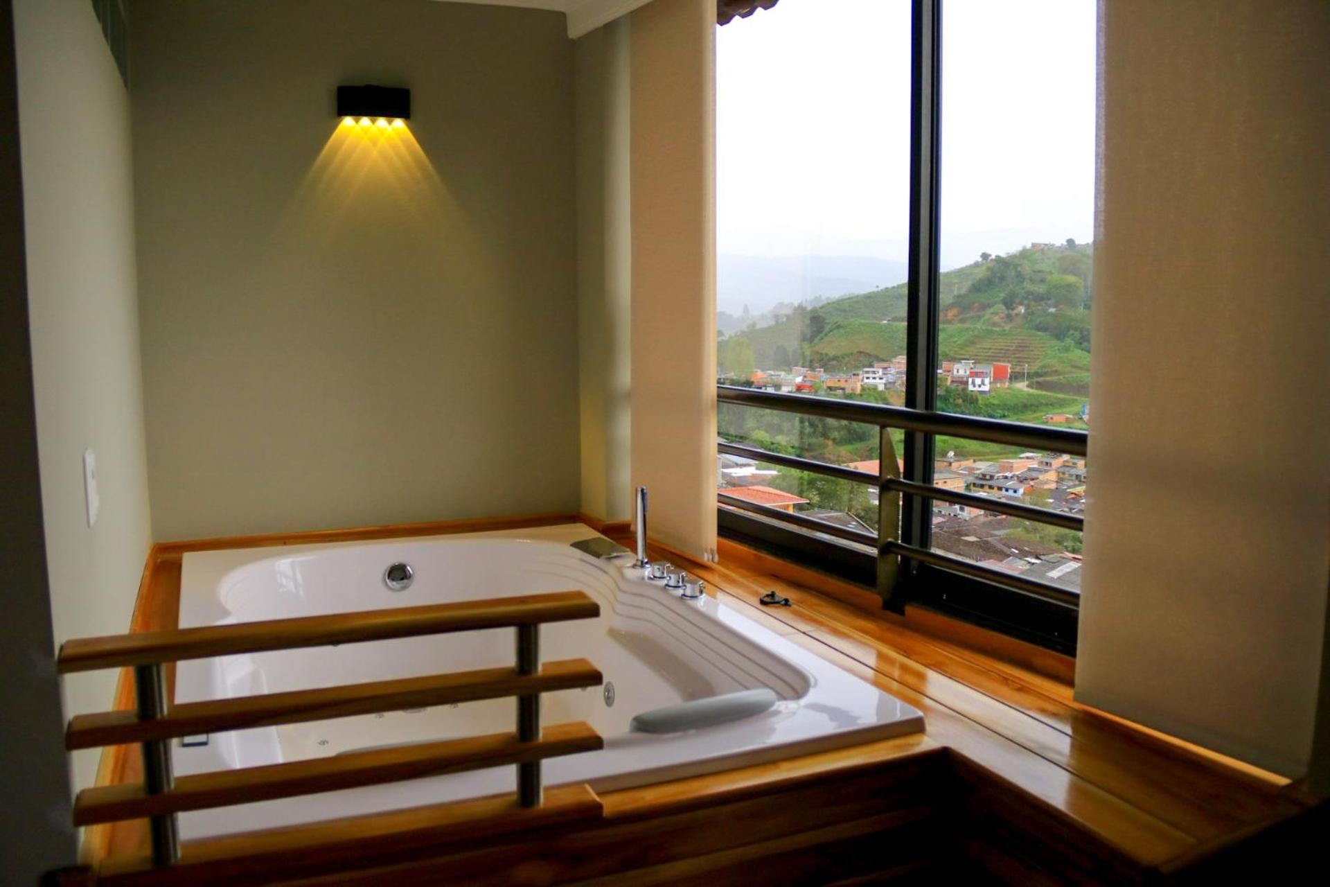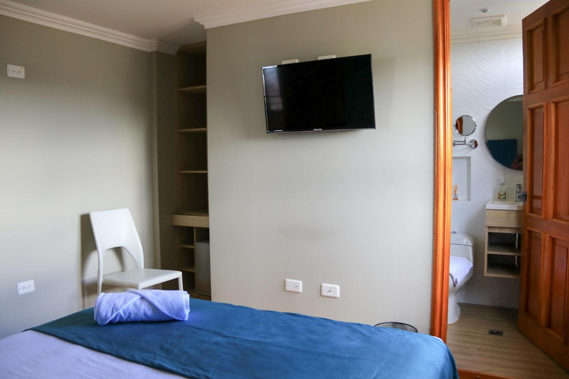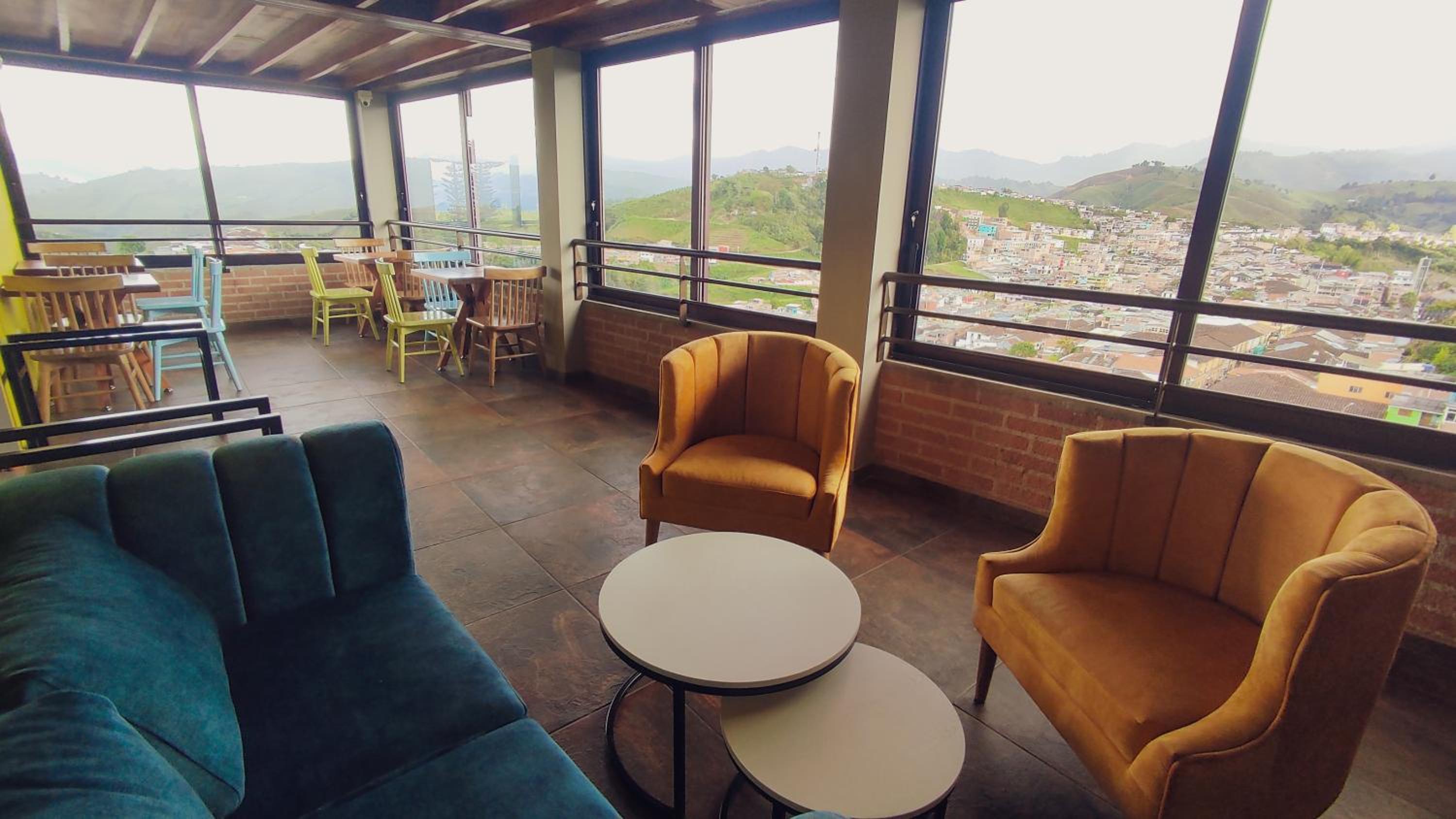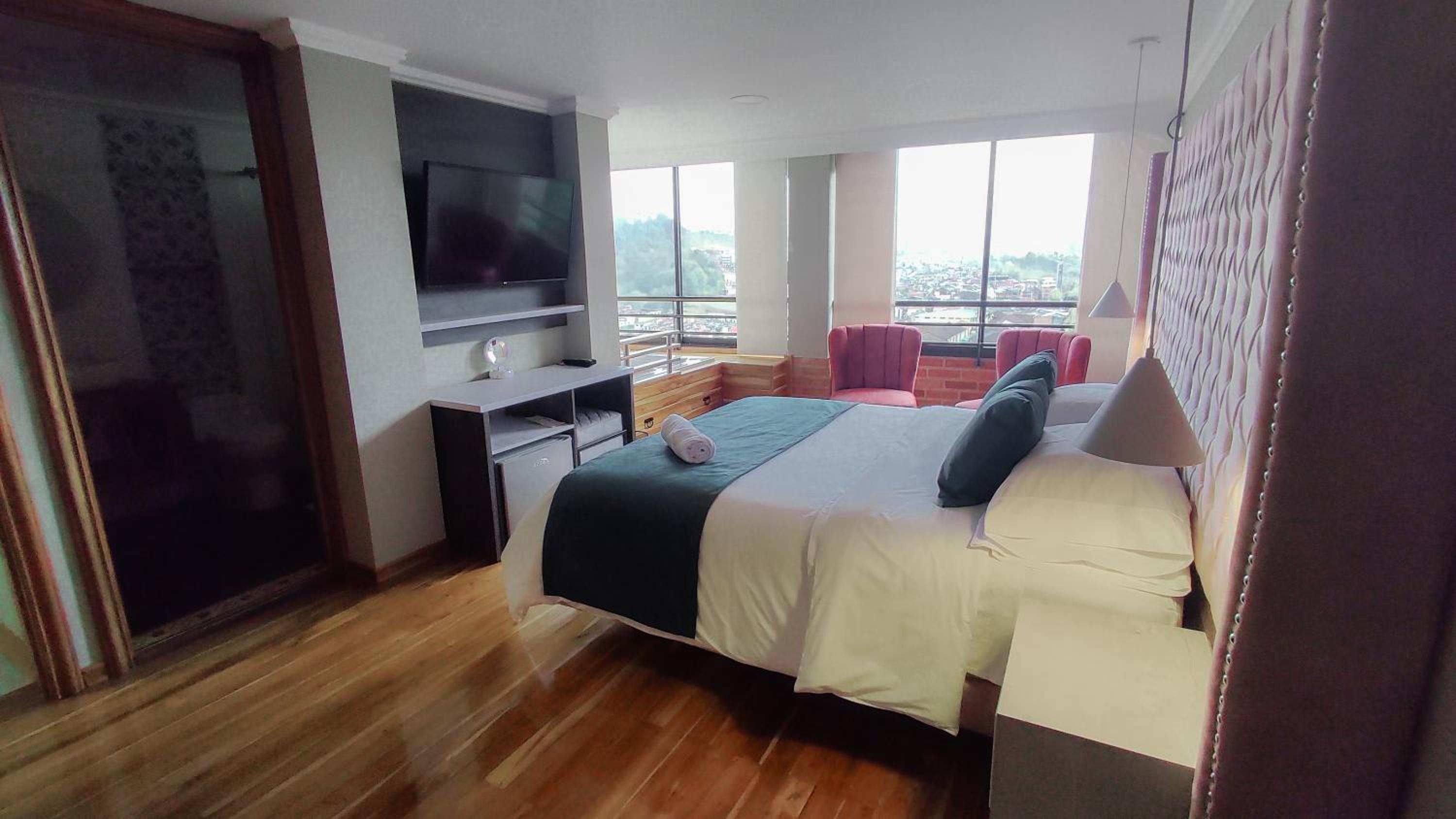 Luxurious Accommodation: Hotel Entre Brumas in Aguadas offers elegant rooms with modern amenities including flat-screen TVs, private bathrooms, and stunning city views.