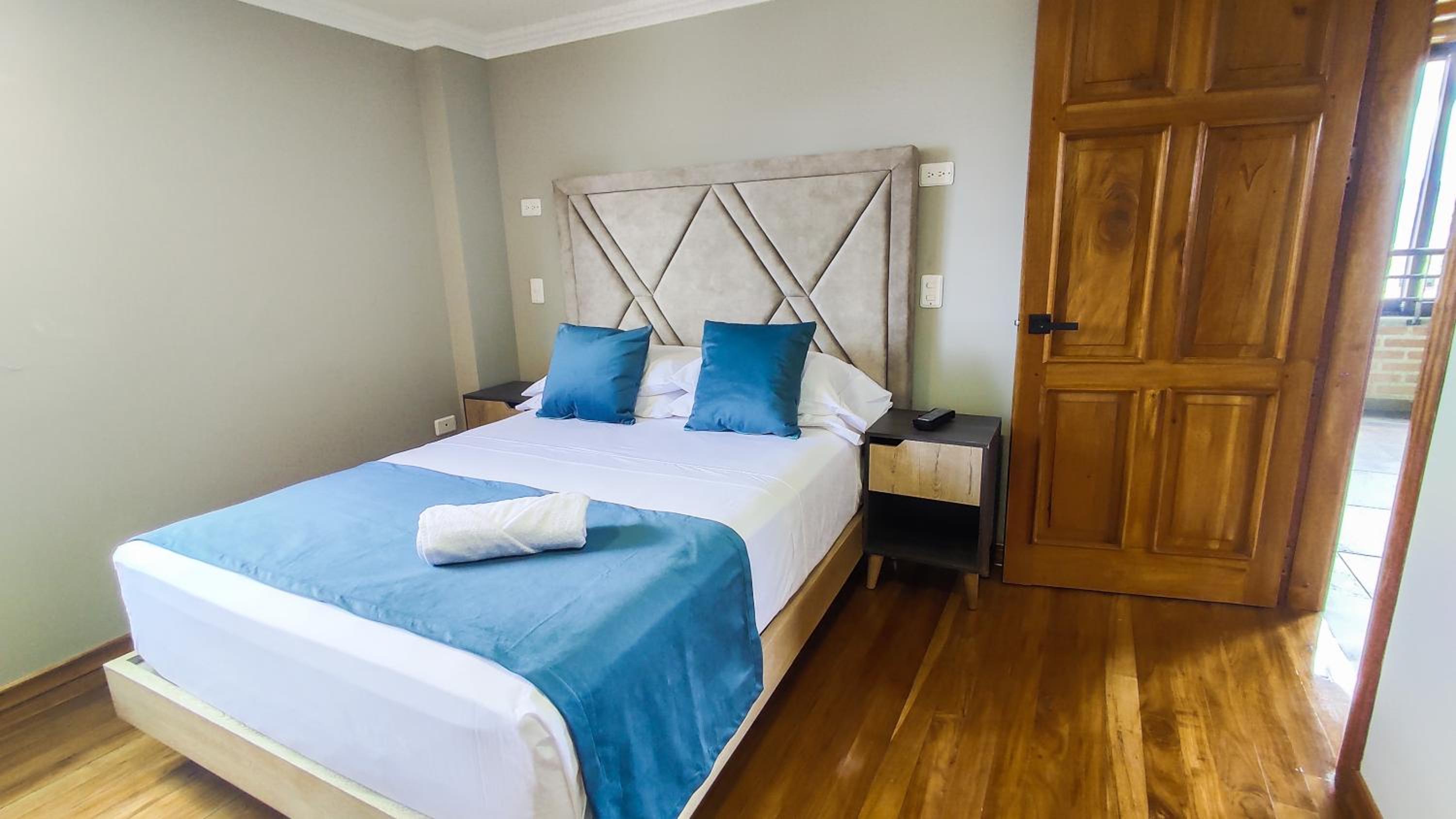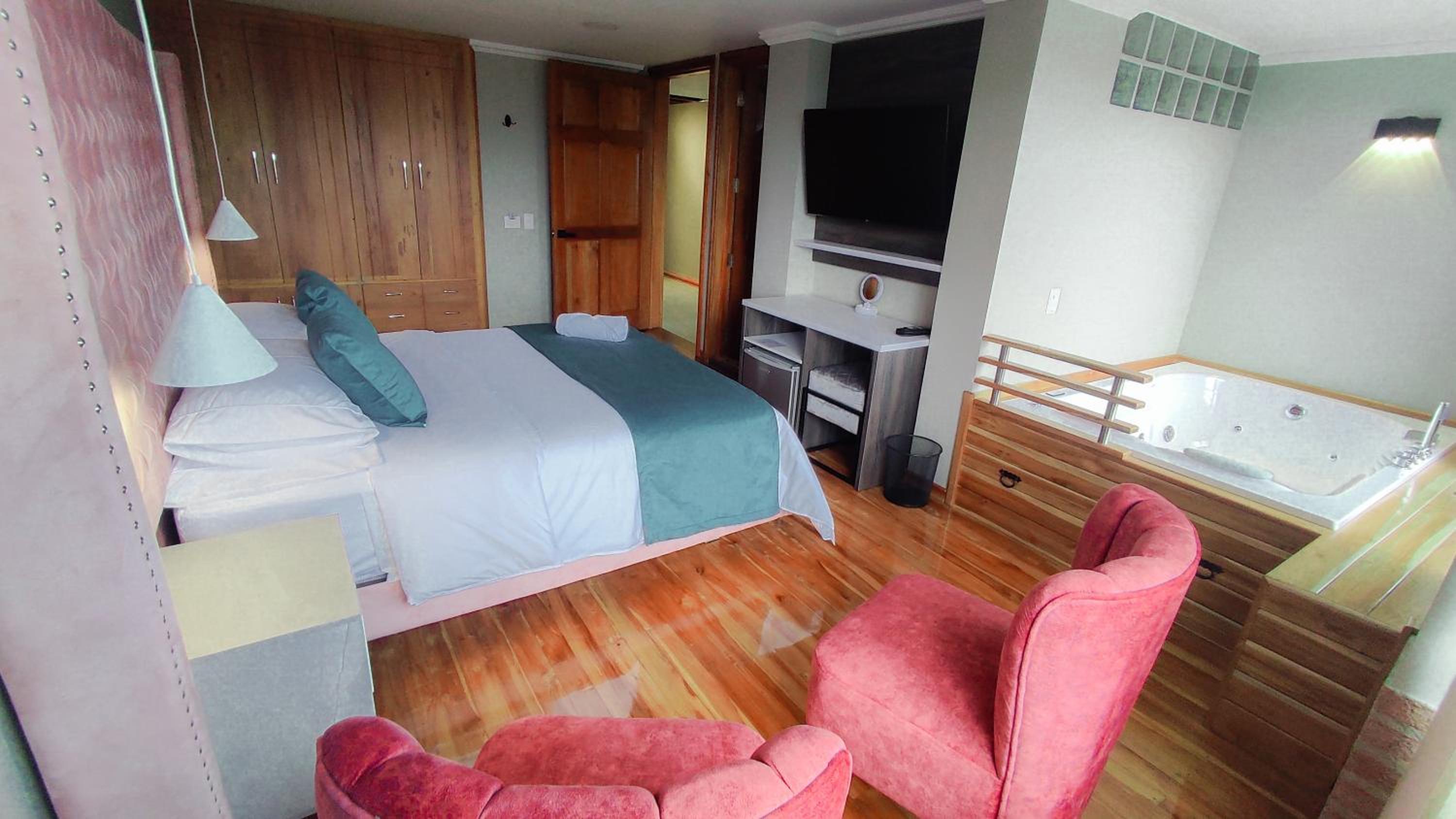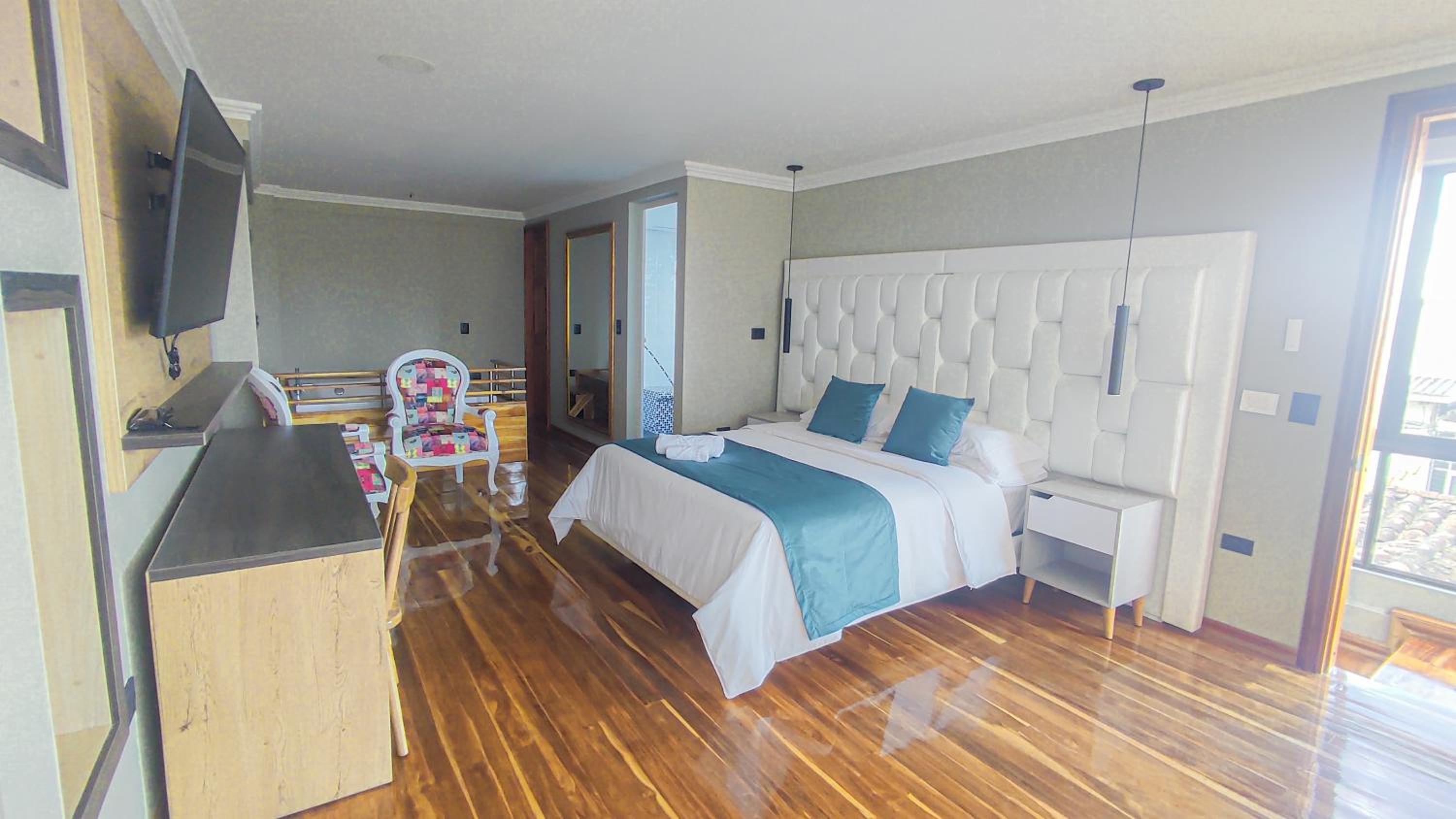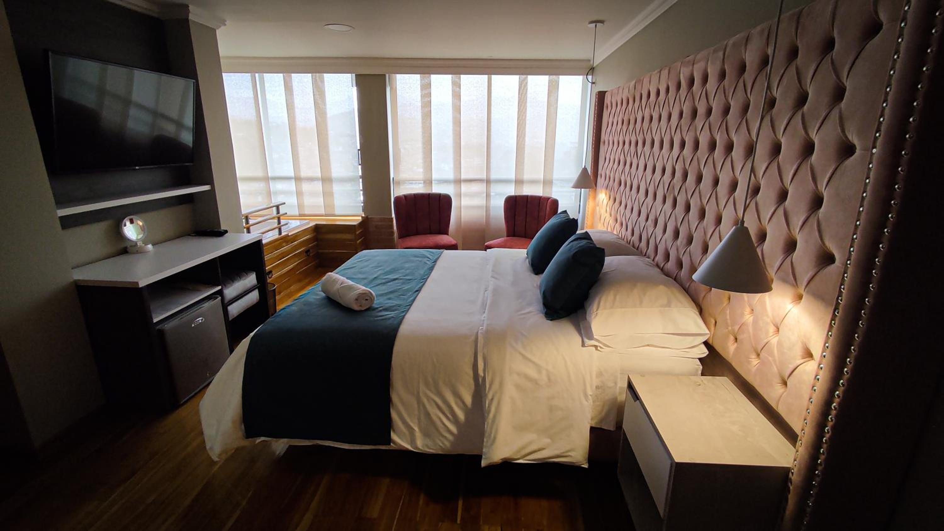 Luxurious Accommodation: Hotel Entre Brumas in Aguadas offers elegant rooms with modern amenities including flat-screen TVs, private bathrooms, and stunning city views.