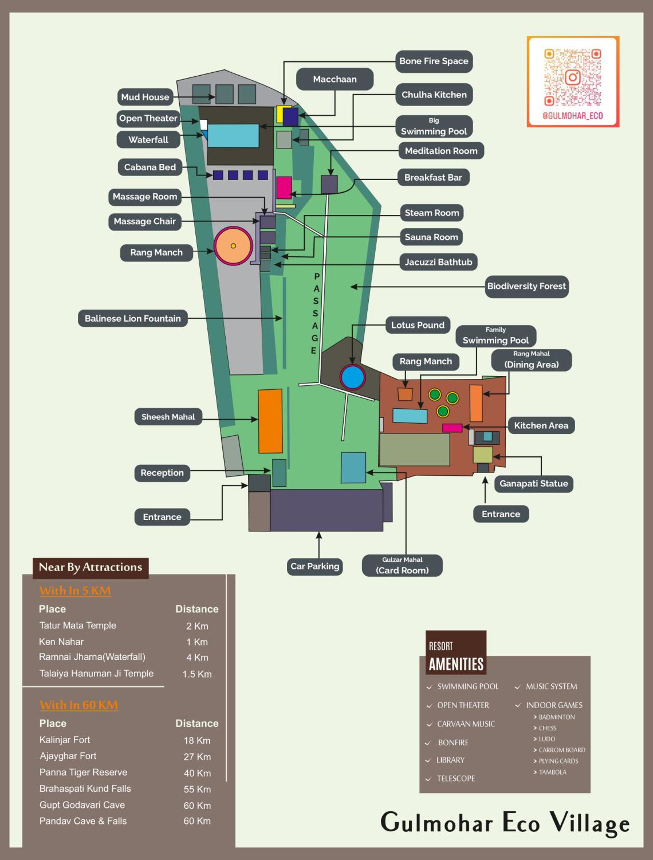 To book your stay at Gulmohar Eco Village Resort, please visit our website or contact the 24-hour front desk.