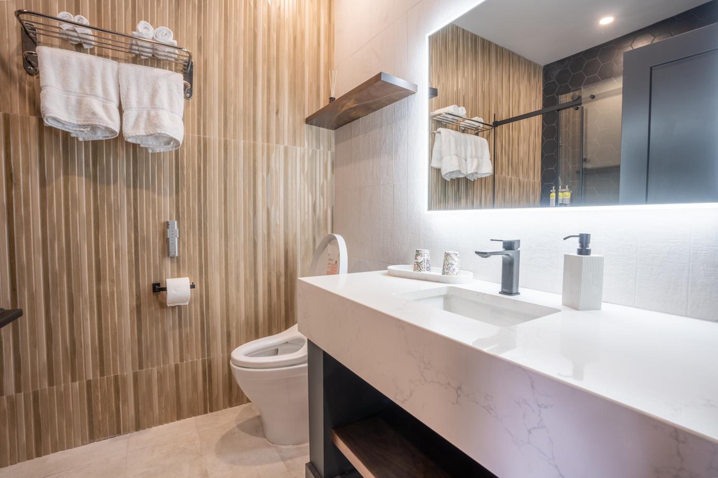This place was outstanding. Beautiful, elegant, and modern. The bed was super comfy, and the bathroom was exceptional with ultra modern fixtures, including a heated toilet seat with bidet and a remote control. The lighting was excellent, and most of the main area lights were dimmable. I can't say enough great things about our stay.