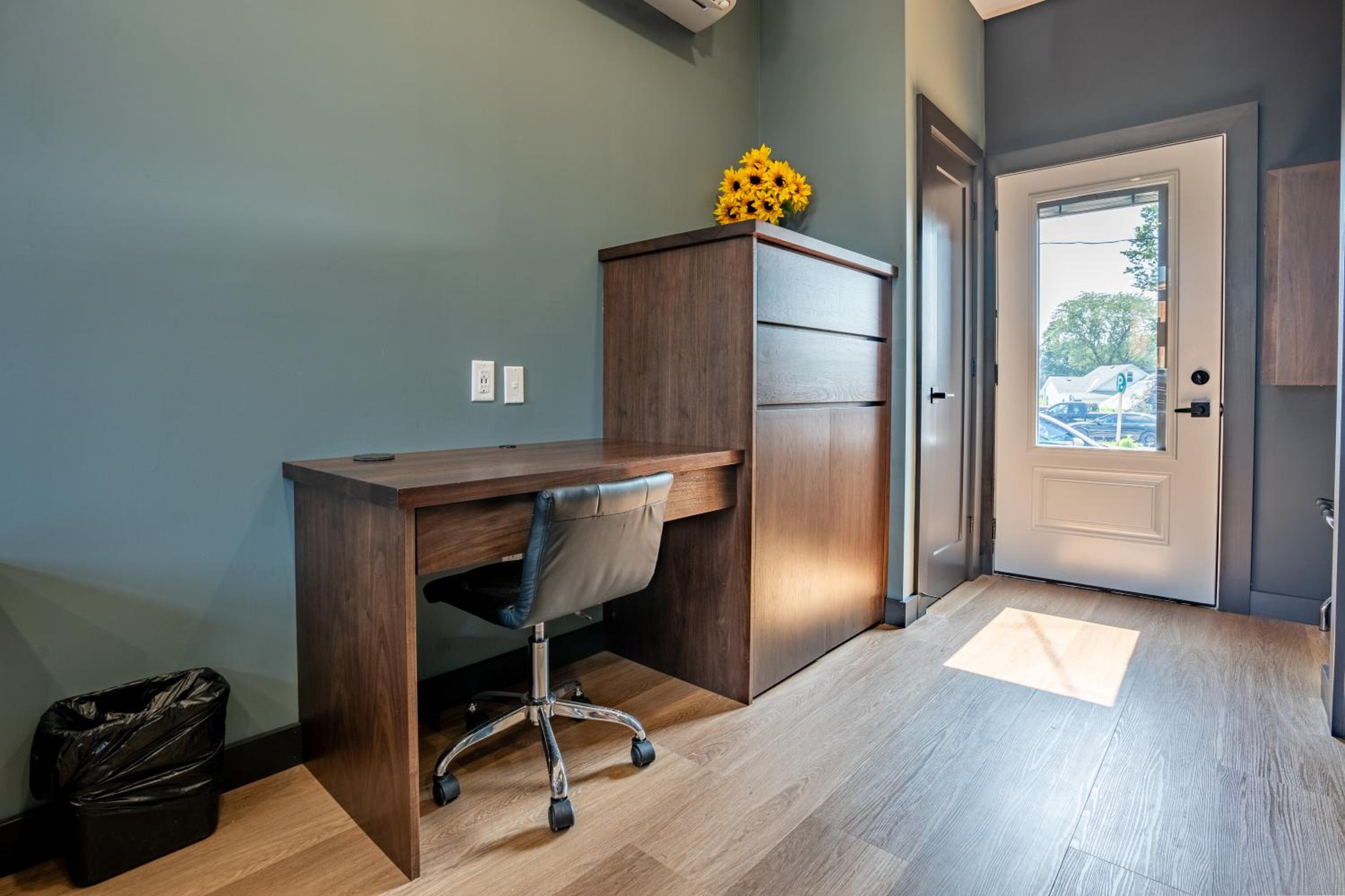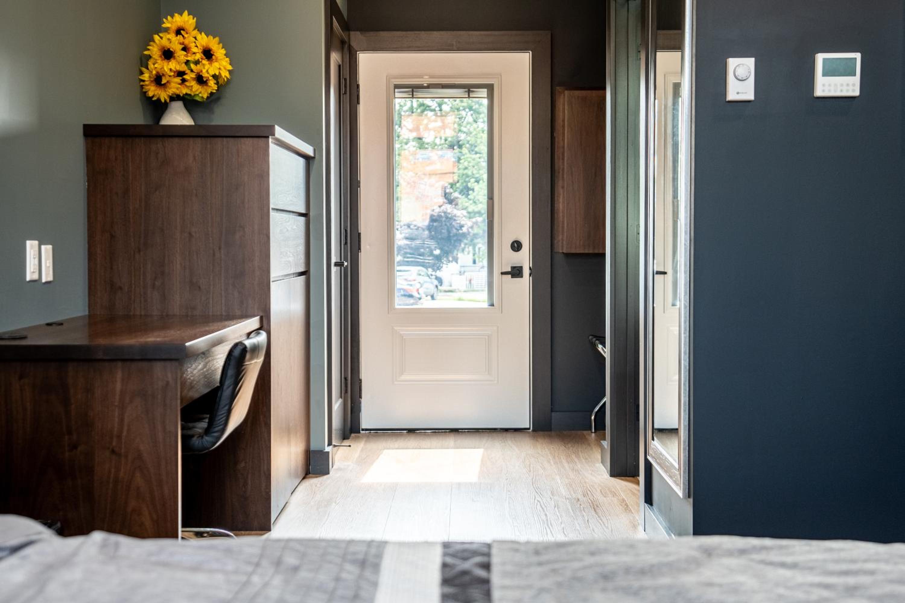 The room is very well thought out in style and layout. Check in was easy and plenty of parking available. Walking distance to restaurants, Shoppers, banks, nail salons and barbers!
