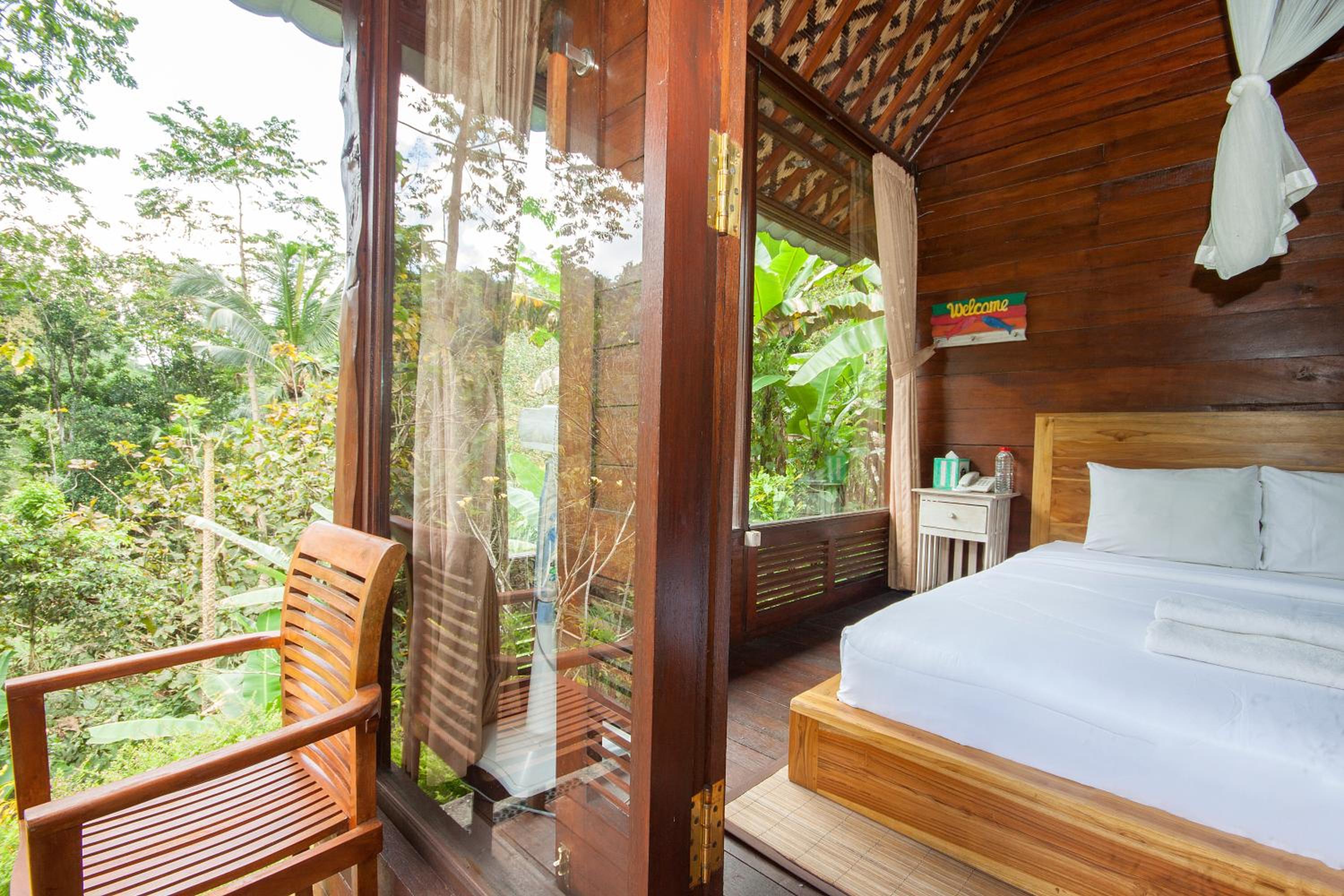 Alles! Diese Unterkunft ist der Hammer. Mitten im Dschungel, an einem Fluss gelegen. Man schläft mit dem Rauschen des Wasserfalls ein. Gemeinschaftspool vorhanden. Ari hat uns zu diversen Ausflügen begleitet und hat uns jeden Wunsch erfüllt z.B. Stopp an einem Abendmarkt, Sarong Geschäft. Wayhan war unser Fahrer und hat uns sicher gefahren. Wir kommen auf jeden Fall wieder. Hier kann man durchaus auch eine Woche entspannen. Es war herrlich.