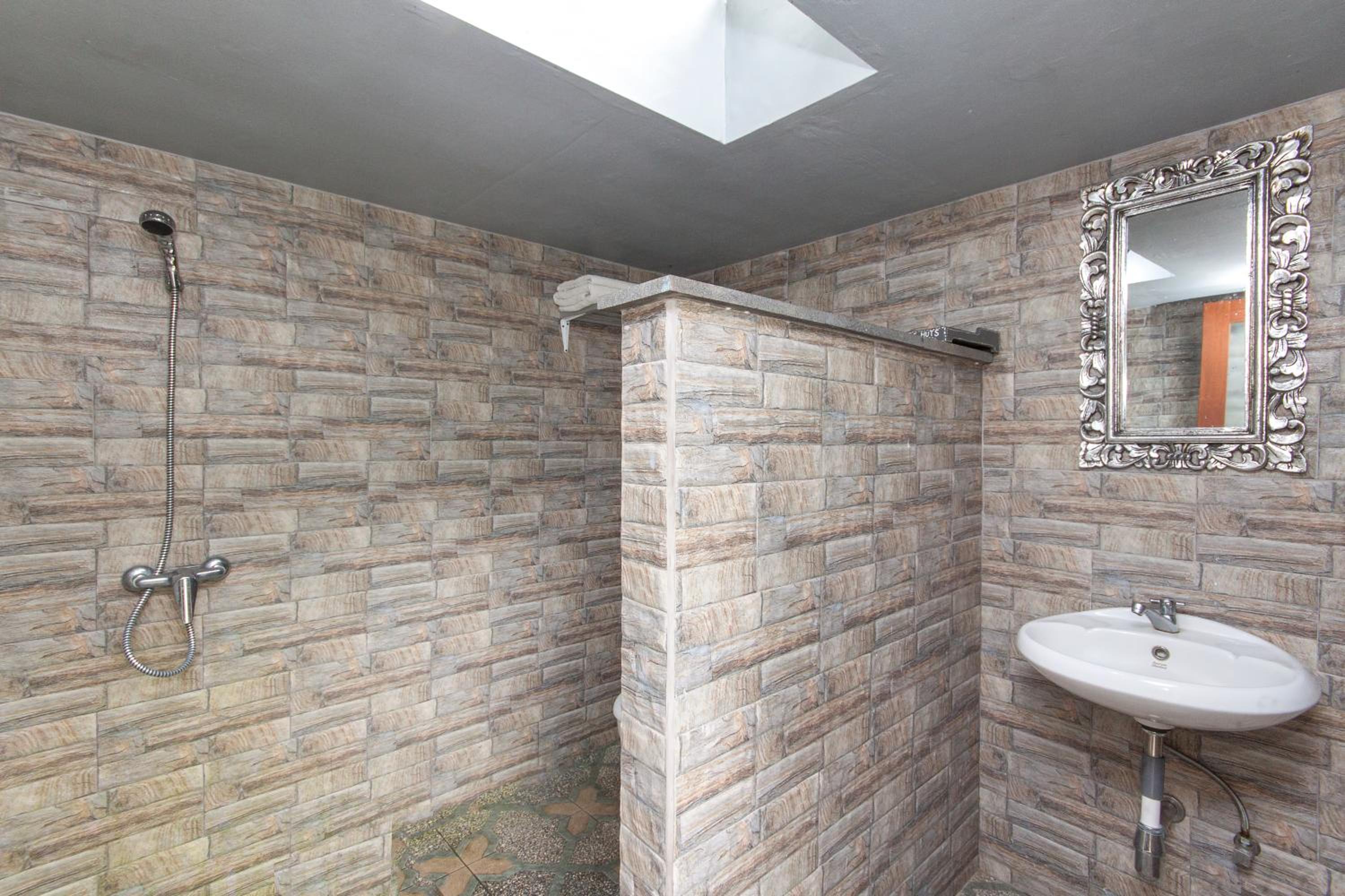 The bathroom facilities were acceptable but getting to it was frought with danger as you could either use a very steep and narrow set of wooden stairs or slippery stone path which in the rain was somewhat dangerous.