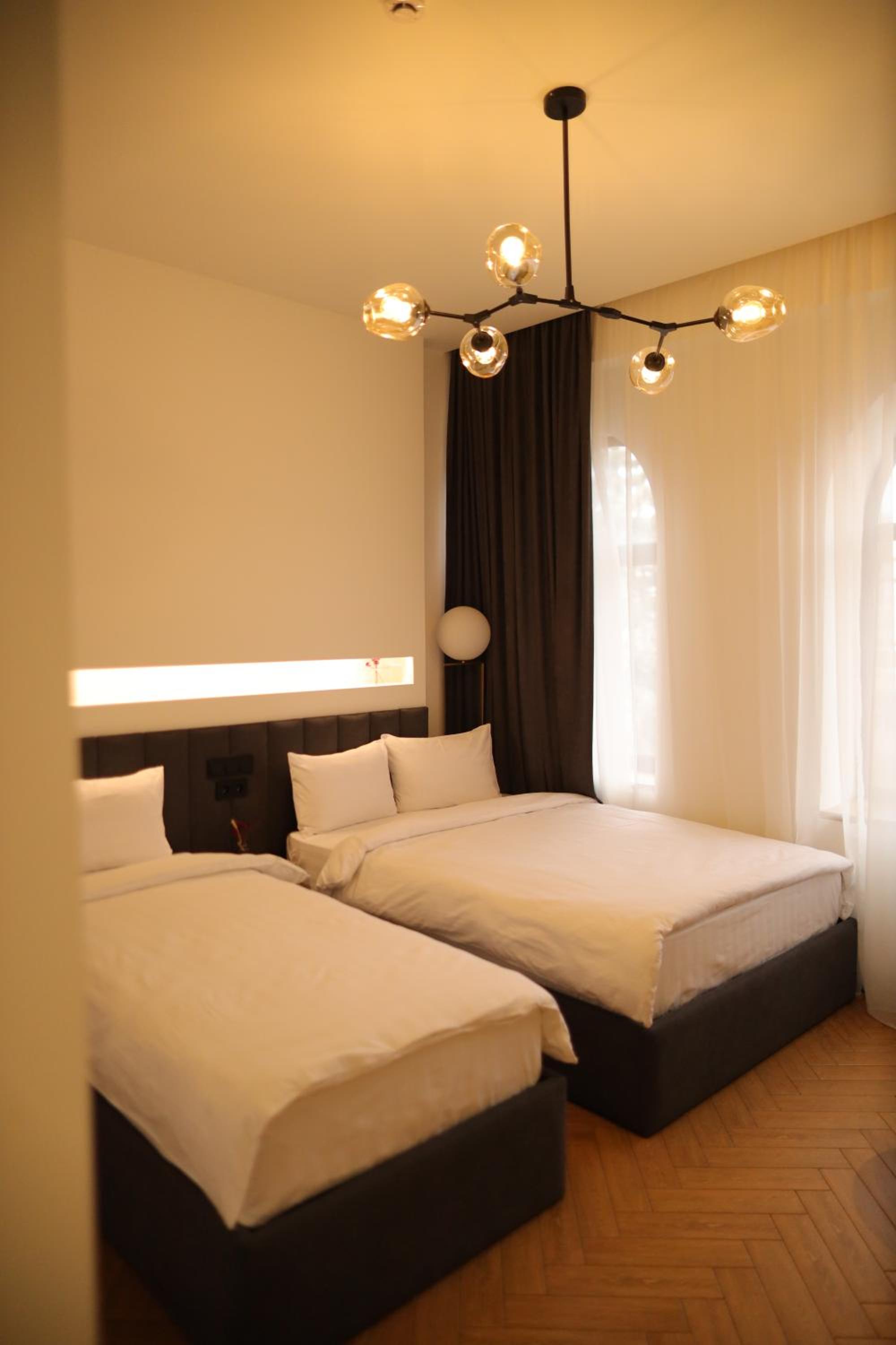 Тихий центр города, магазины, рынок, музеи рядом, вход с фасада здания, улица ночью освещена..Жили в семейном номере на втором этаже. Две комнаты, в спальне две односпальные кровати, в гостиной двуспальная кровать и диван. На диване при желании может спать ребёнок или человек роста до 160 см. Ремонт в номере и отеле почти свежий, убирают чисто, приходят на помощь если что-то нужно. Нам принесли дополнительные полотенца, постельное белье, воду и даже простые лекарства по нашей просьбе. В номере есть электрический чайник, микроволновка, холодильник. Завтраки были включены, но ходить нужно 5 минут пешком по улице в другой дом, в кафе. Завтраки только двух видов. Один- омлет, салатик, хлеб, варенье, другой- варёные яйца, сыр, масло, хлеб, варенье. Если у вас диета, то можно договориться готовить самим на их электрической плите в подвале, что мы и делали. Яндекс доставка из местных супермаркетов работает через приложение яндекс go, можно привязать российскую рублевую карту и оплачивать с неё.